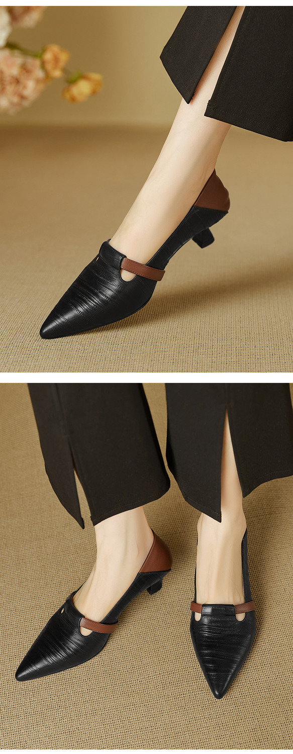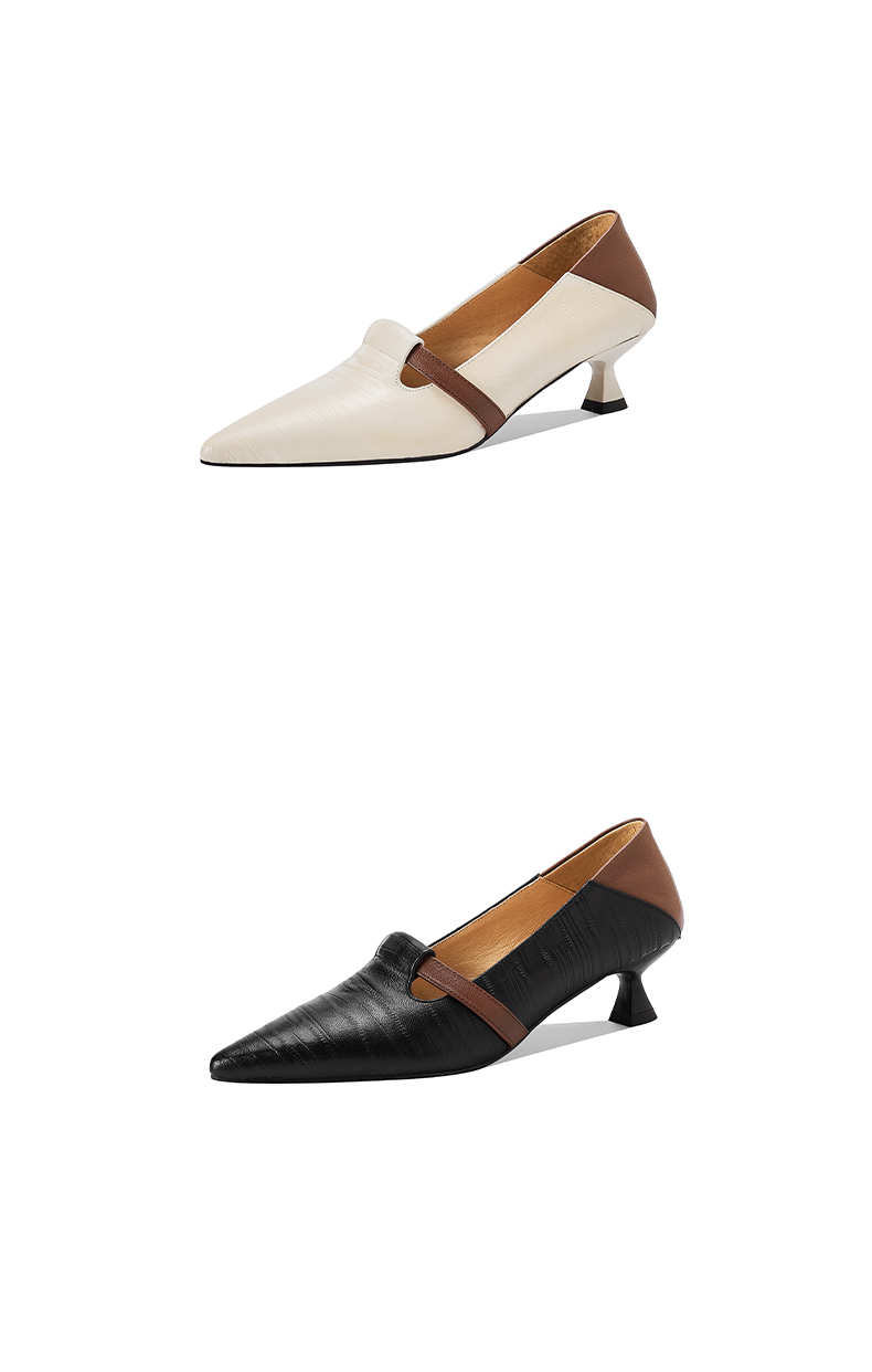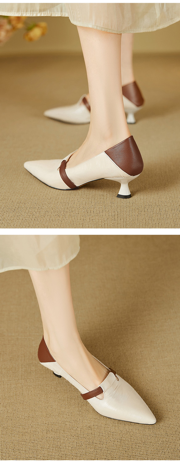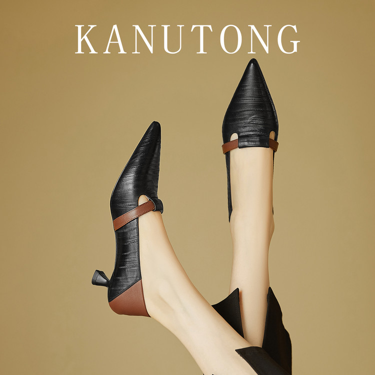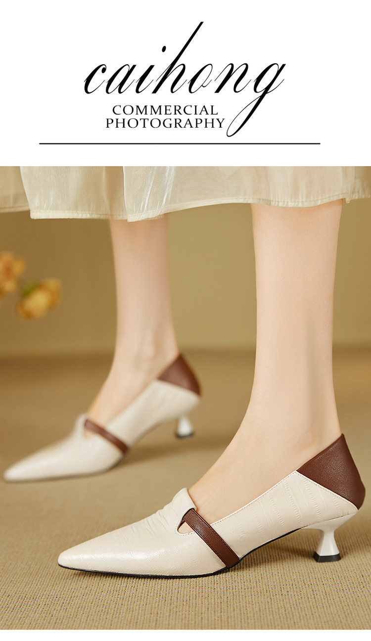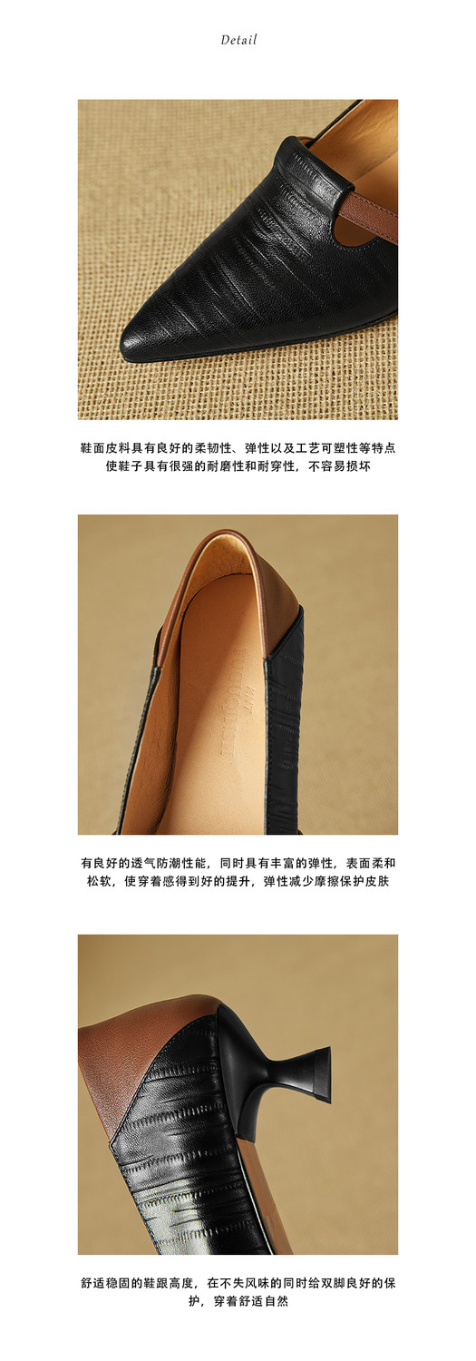 【预售5天】巴黎邂逅~气质尖头拼色一脚蹬单鞋女浅口复古猫跟高跟鞋KNTNX&KT1817