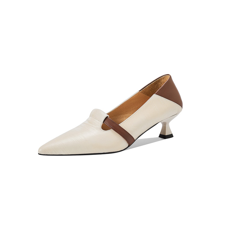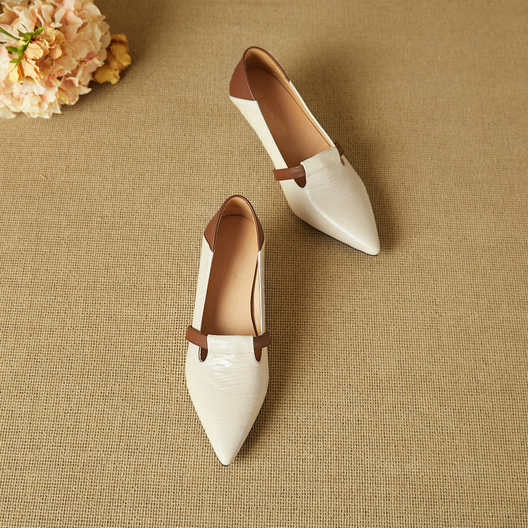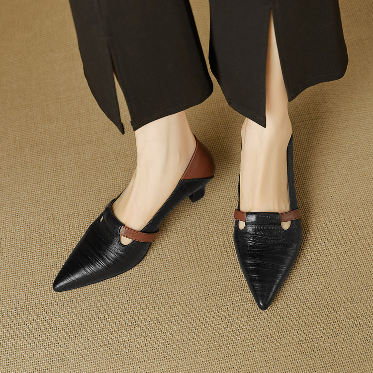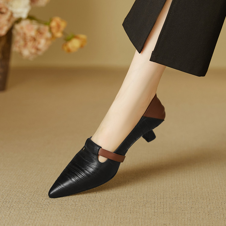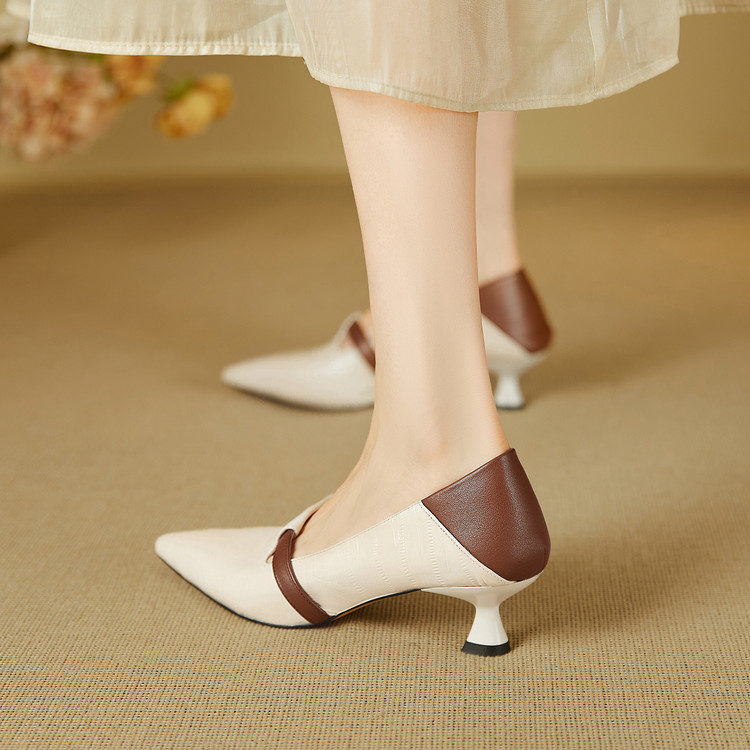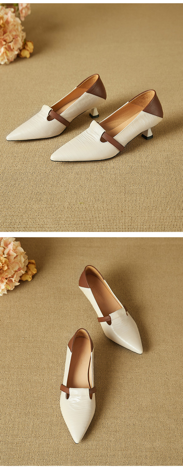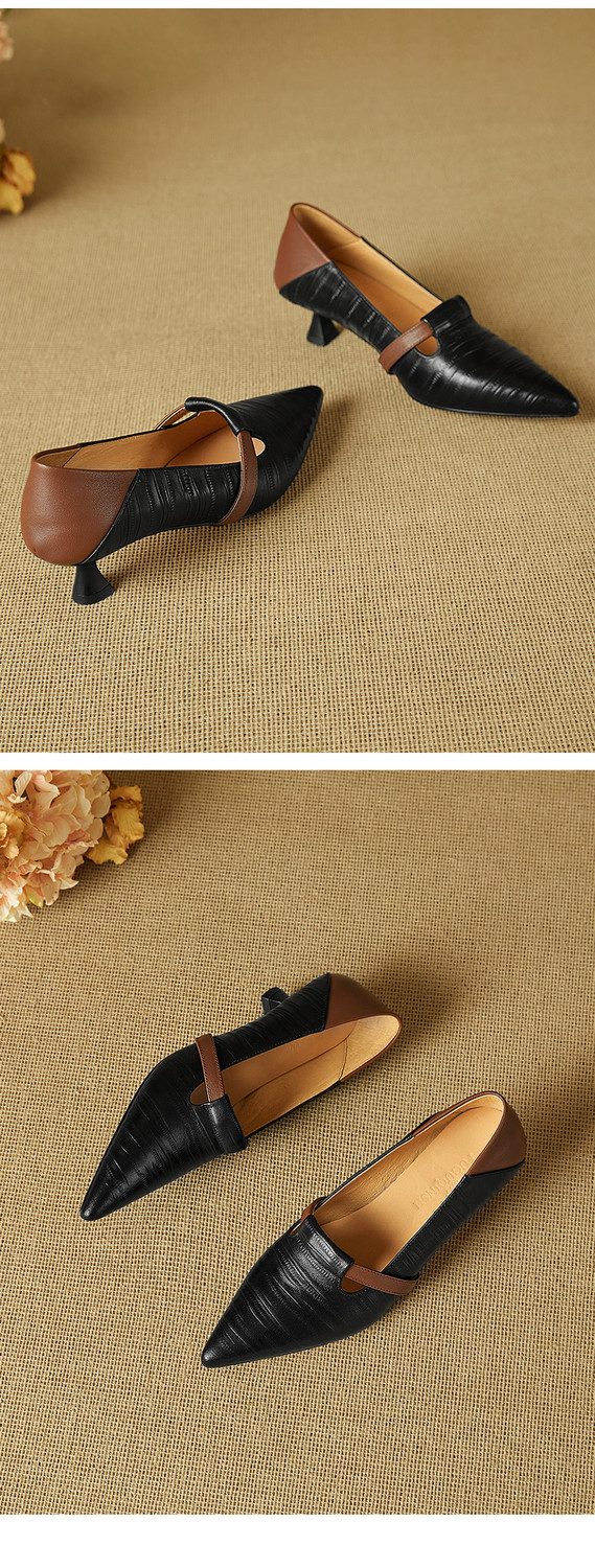【预售5天】巴黎邂逅~气质尖头拼色一脚蹬单鞋女浅口复古猫跟高跟鞋KNTNX&KT1817