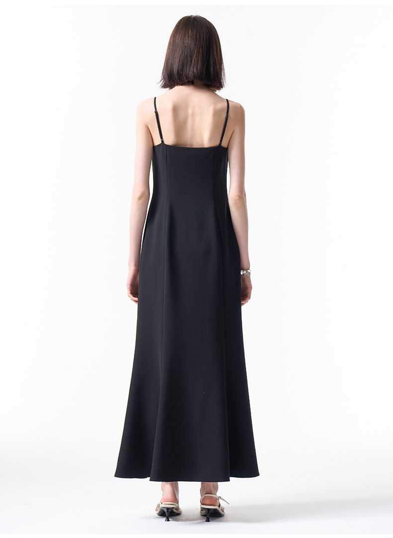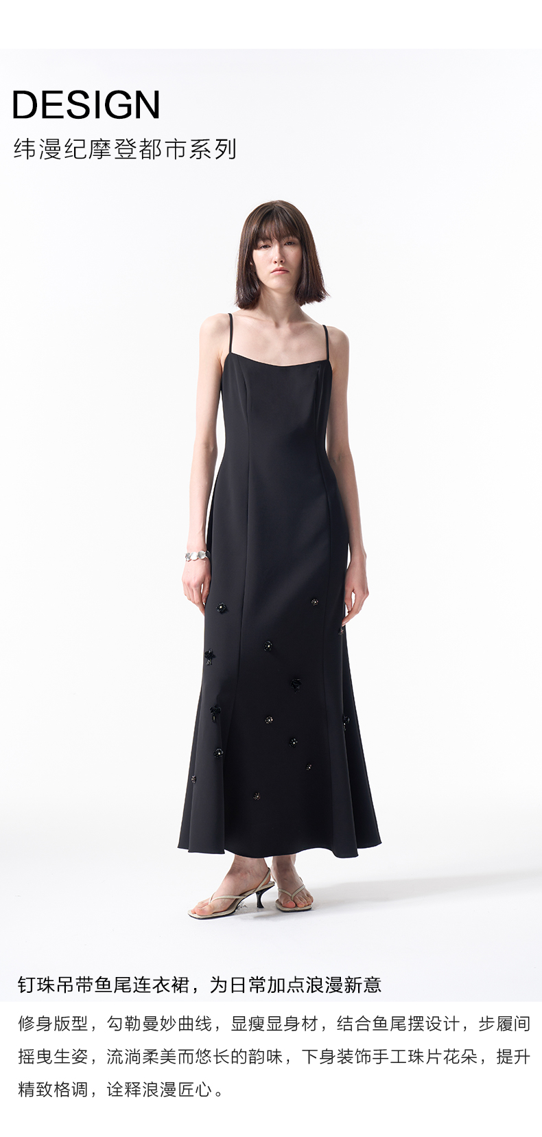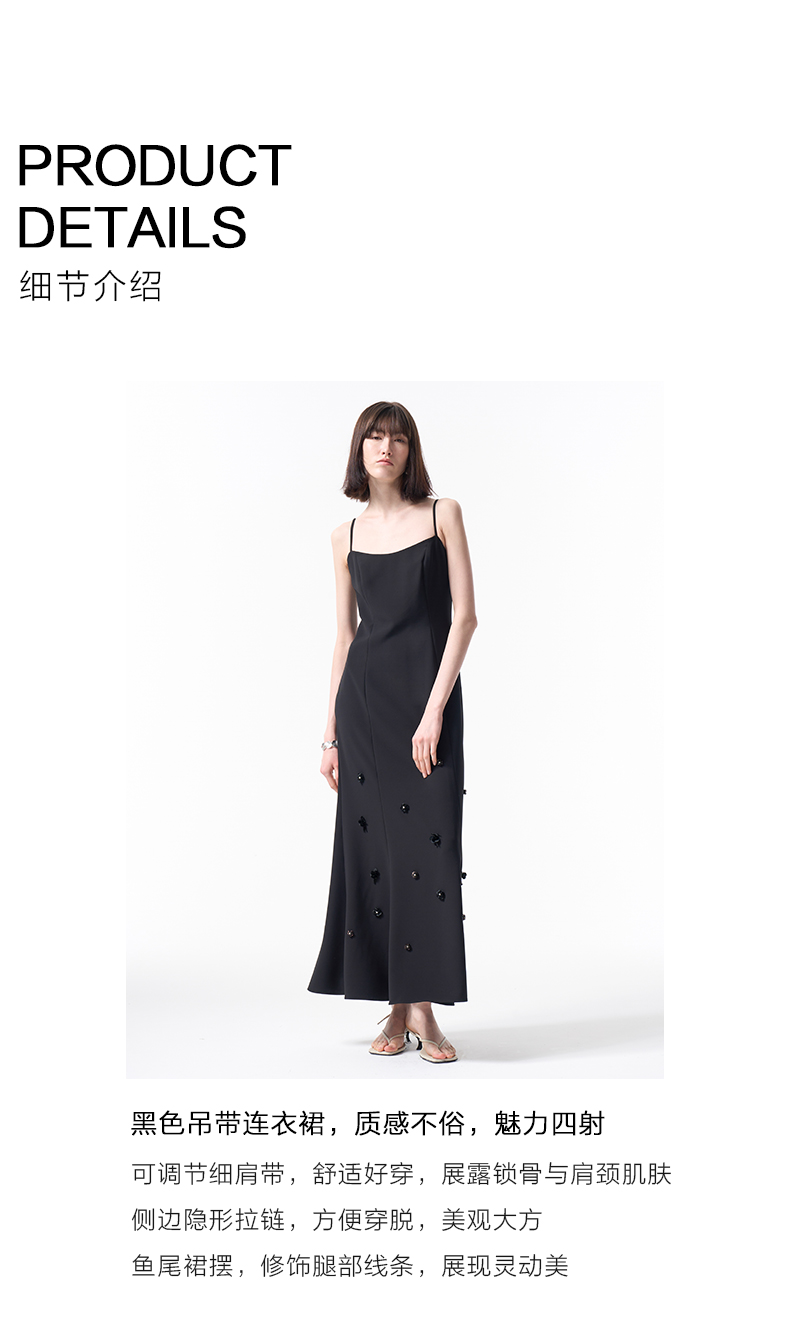 VIMAGE纬漫纪气质小黑裙收腰显瘦优雅钉珠立体花鱼尾裙摆吊带连衣裙2026春季新款V2507204