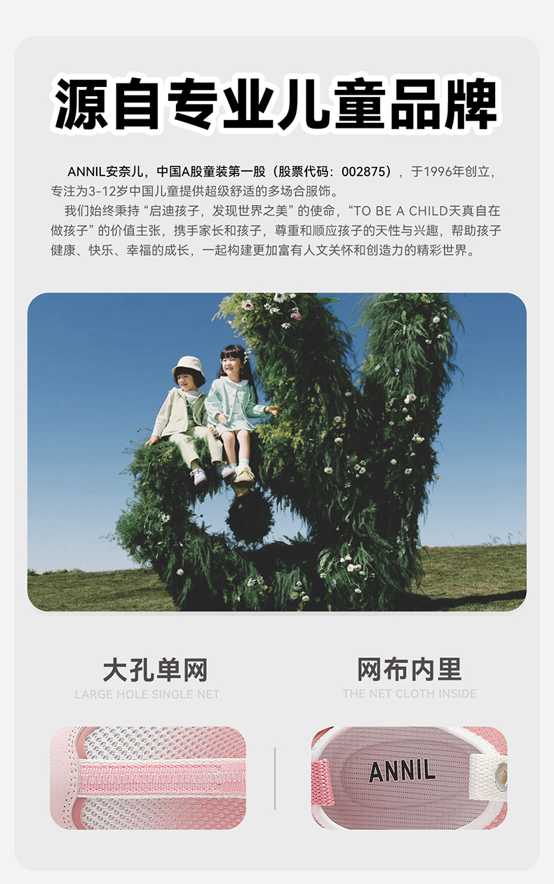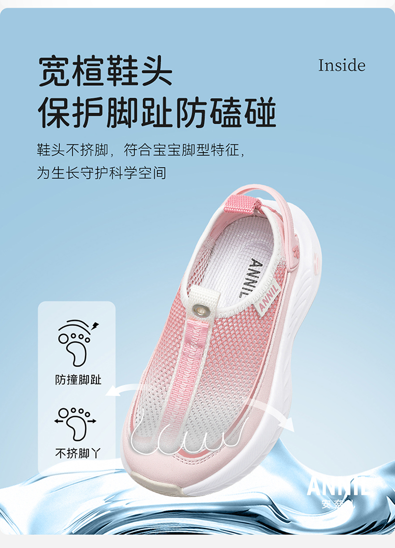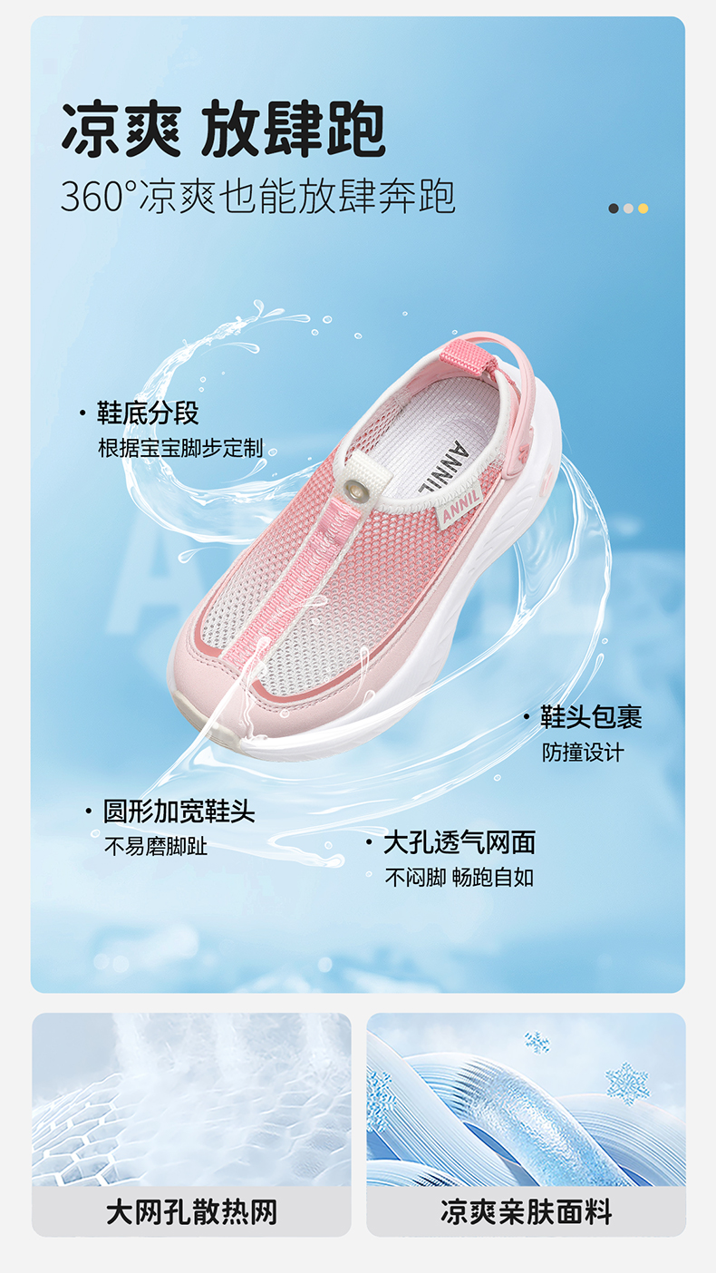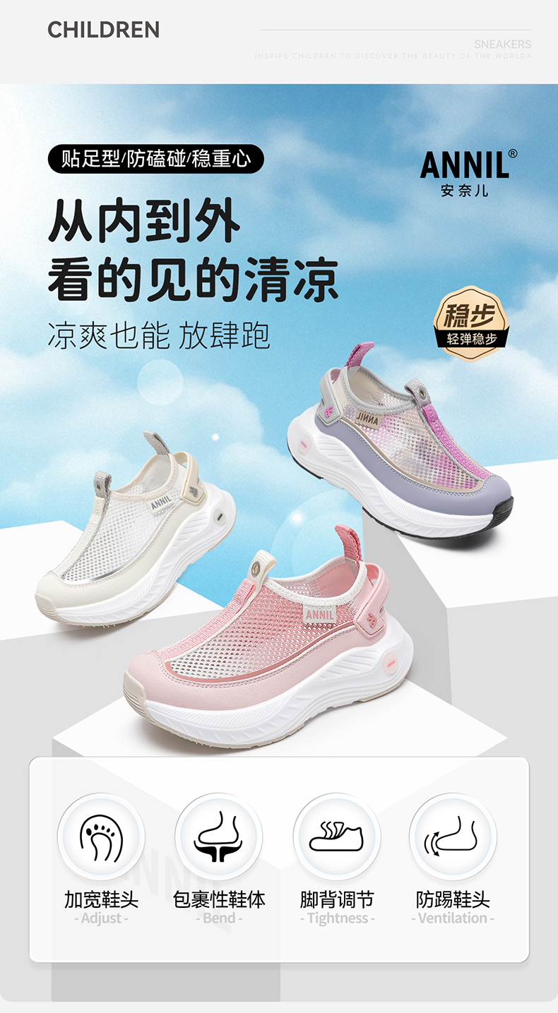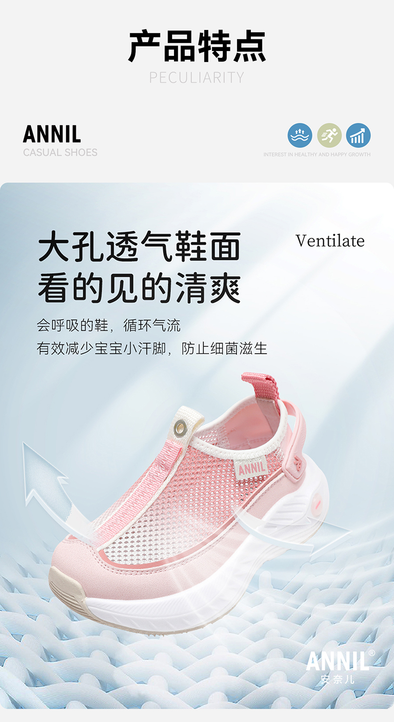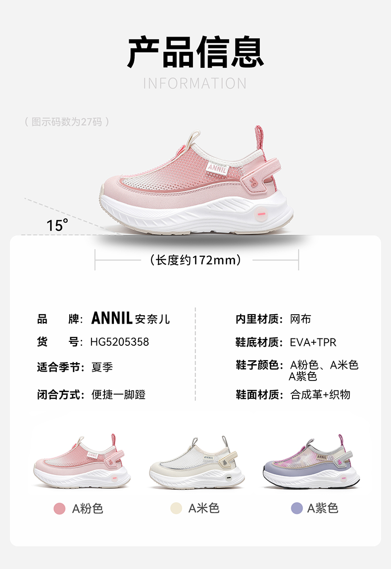 ANNIL/安奈儿夏季女童时尚软底透气防滑网面运动鞋2025夏款HG5205358