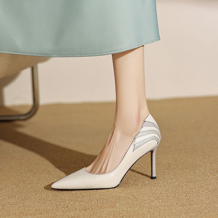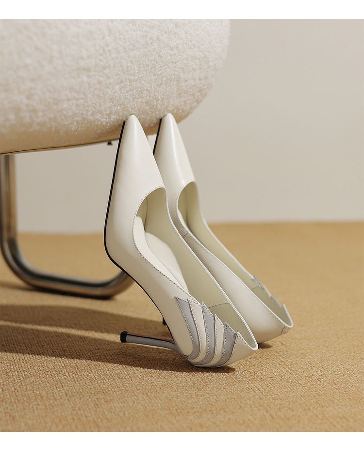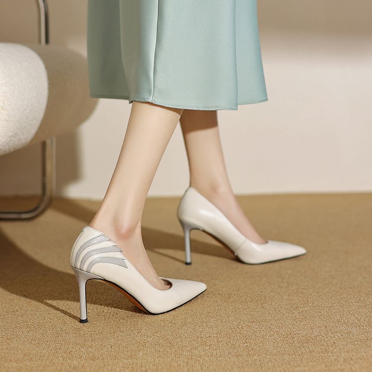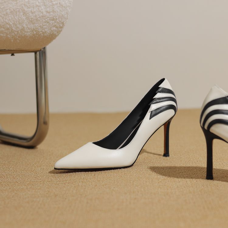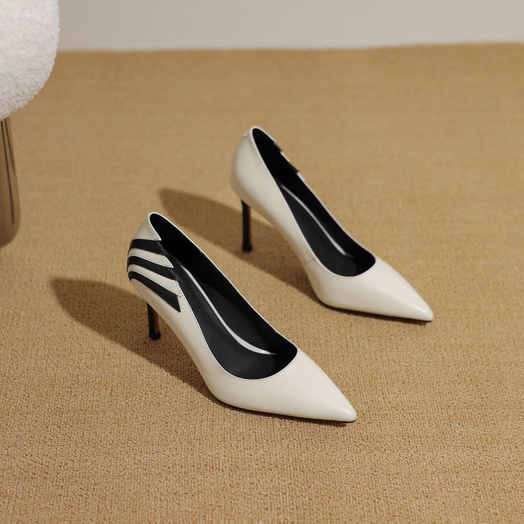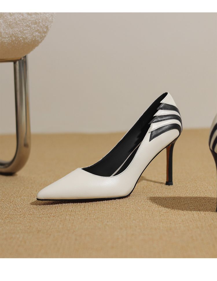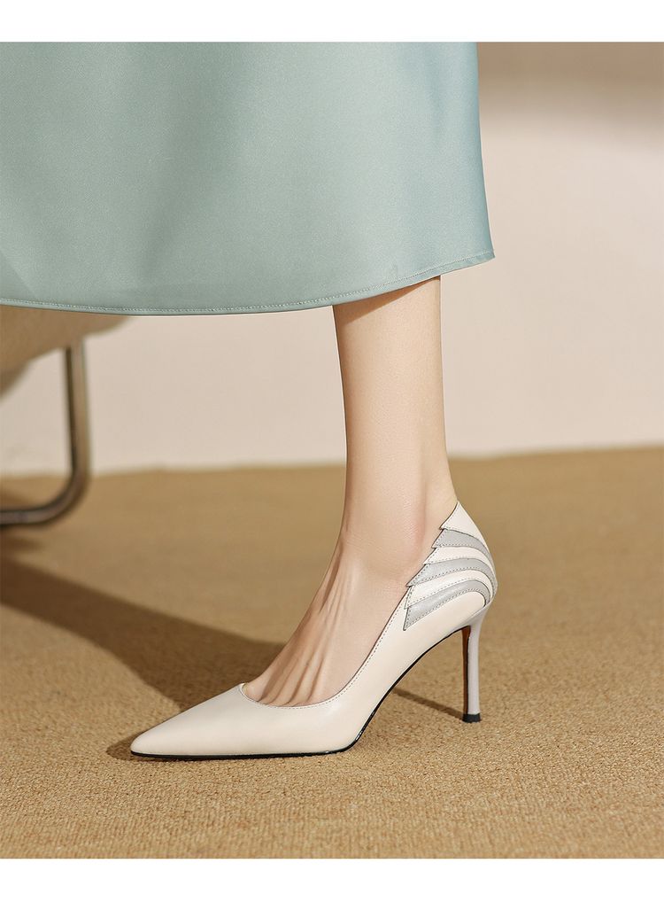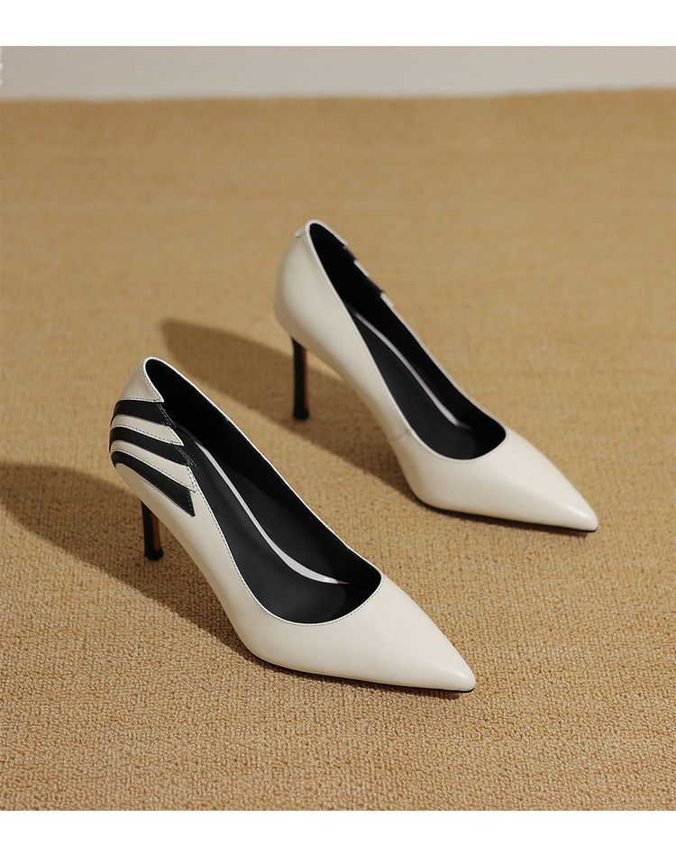 【预售5天】欧美性感尖头气质高跟鞋女新款小众牛皮浅口细跟单鞋女ZF&25015