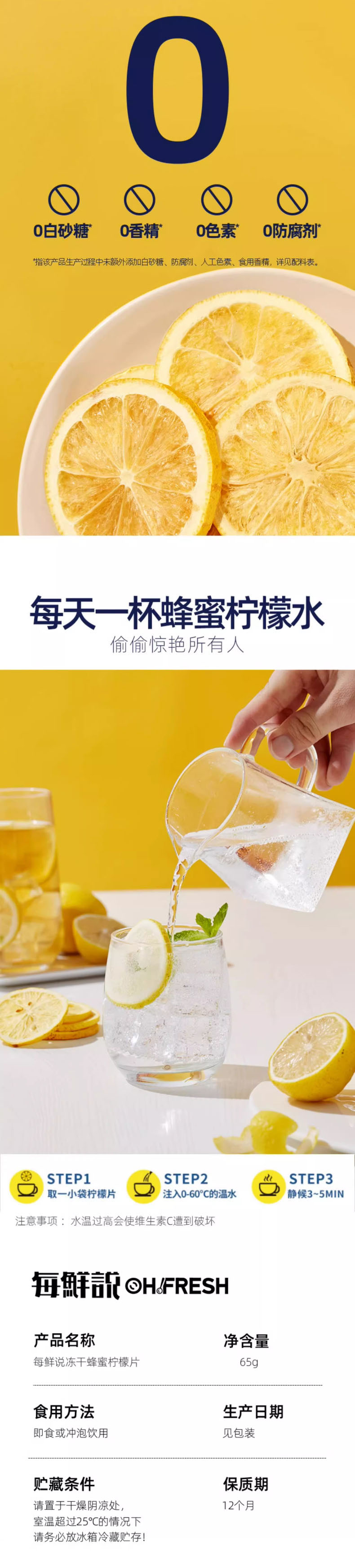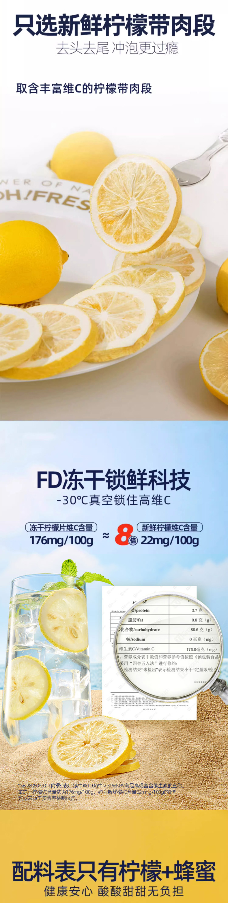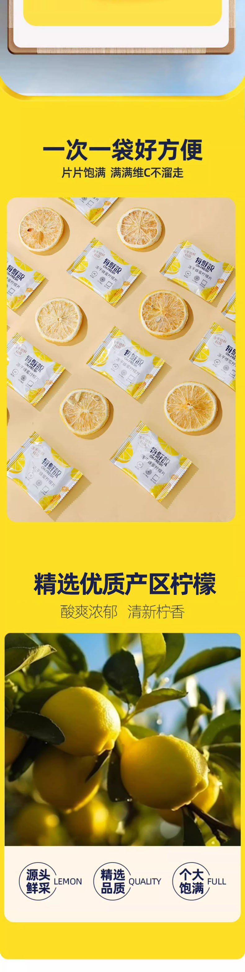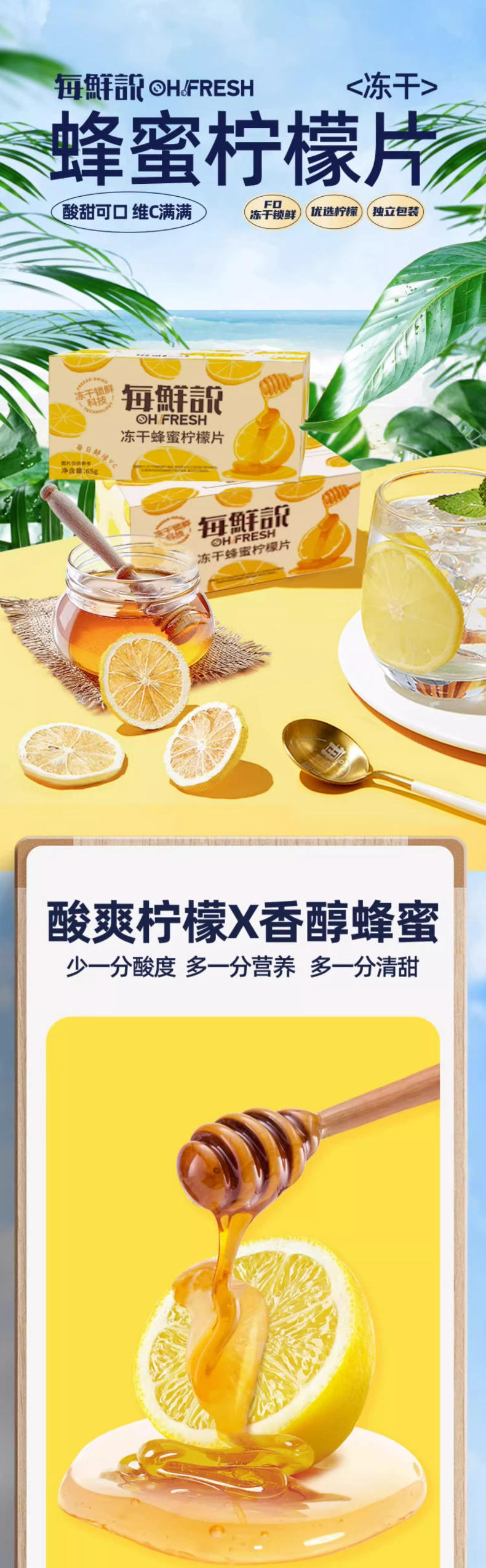 每鲜说冻干蜂蜜柠檬片泡水喝高维C片片饱满独立包装