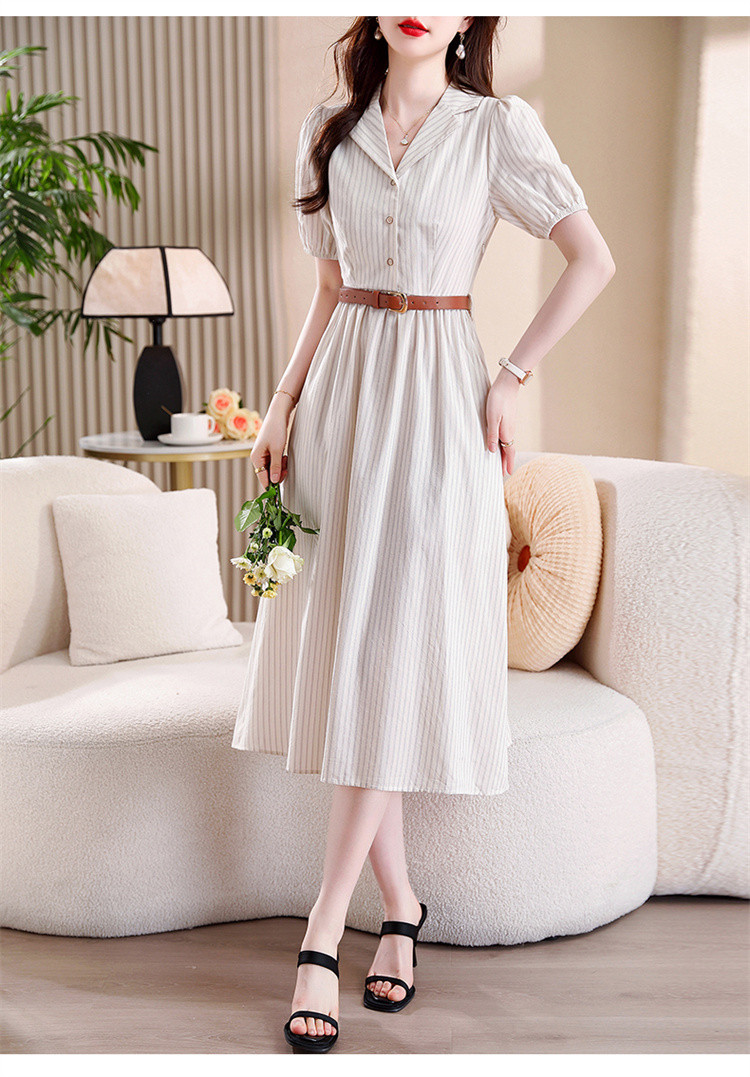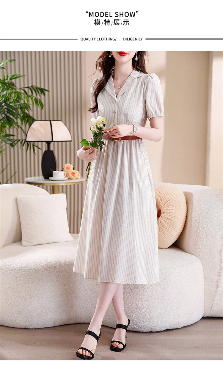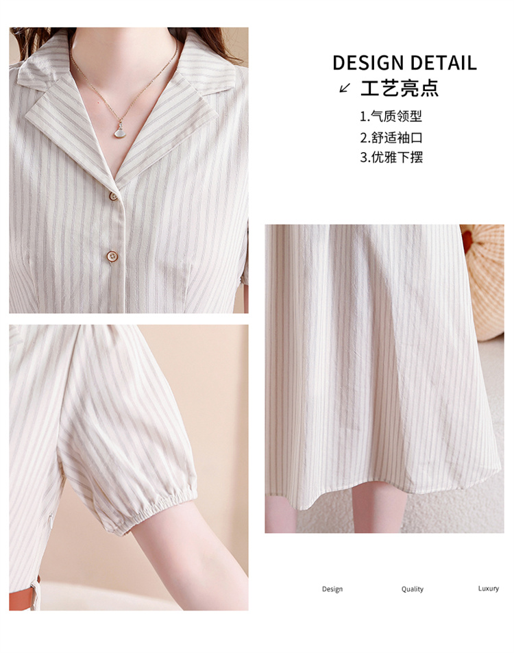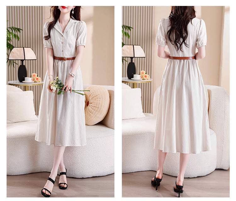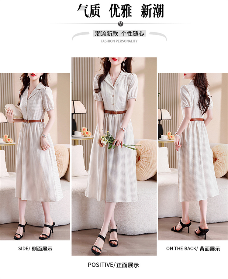 【预售3天】PY 高腰条纹短袖翻领连衣裙 &2913