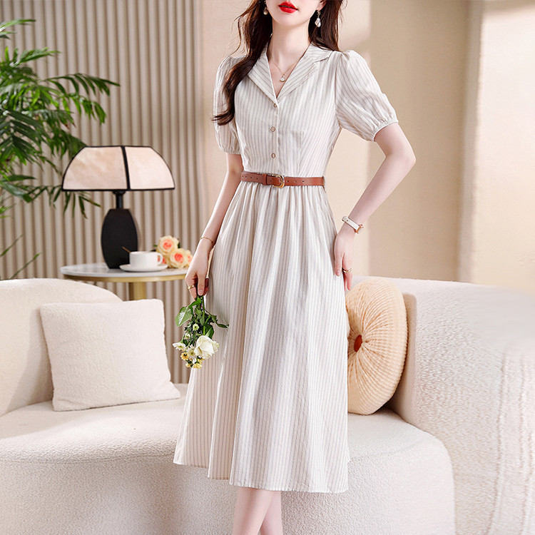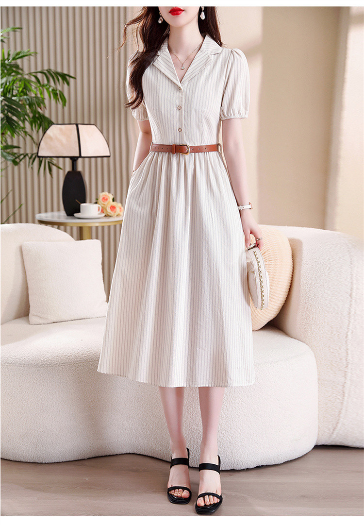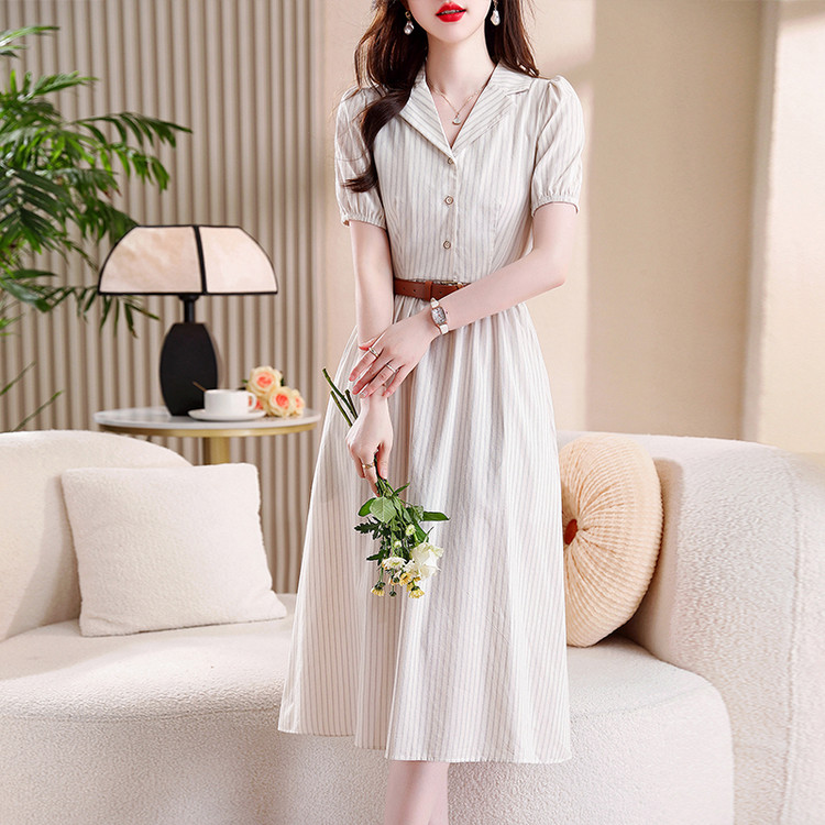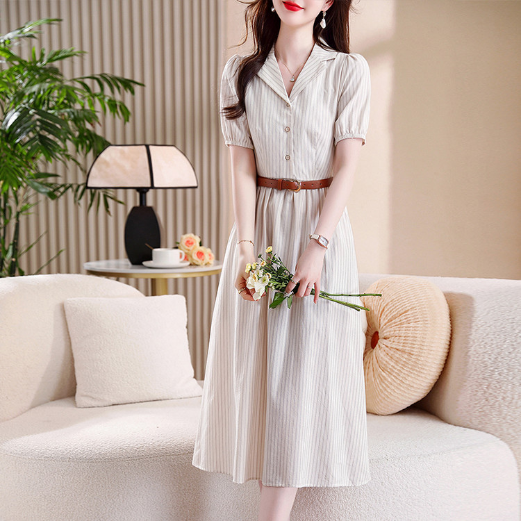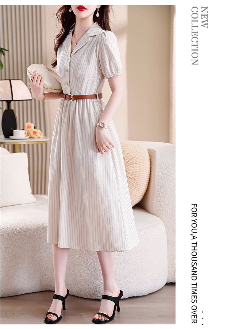 【预售3天】PY 高腰条纹短袖翻领连衣裙 &2913