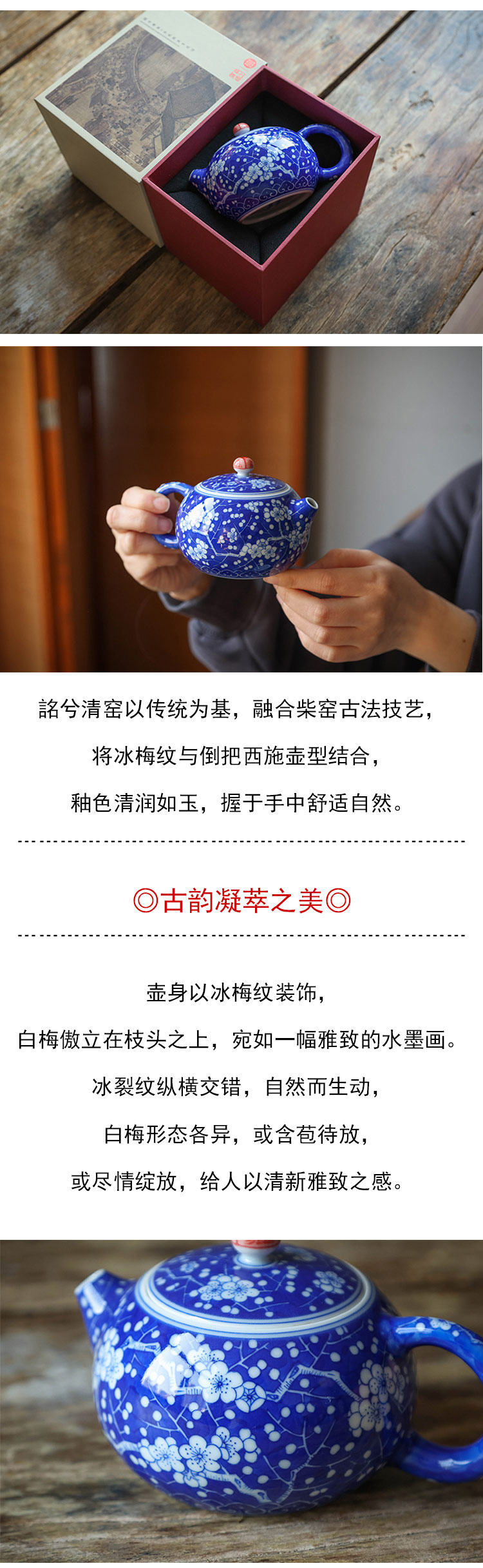 茶香记 柴窑·冰梅倒把西施壶160ml景德镇詺兮清窑陶瓷茶壶青花