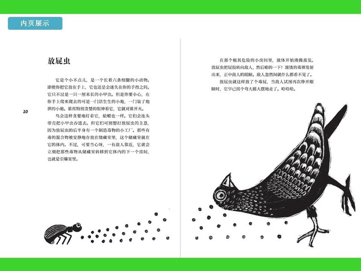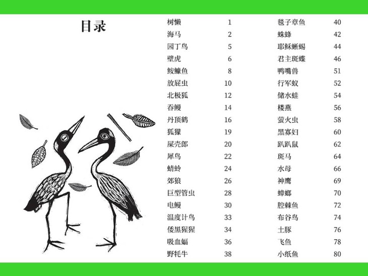 Ø那擅长装饰的园丁鸟,那贪婪的黑寡妇蜘蛛,还有以下这些,都记录在这本书中:会飞的、会爬的、会跳舞的、会游泳的,还有,会在水面上行走的,没错,都在这本书中。