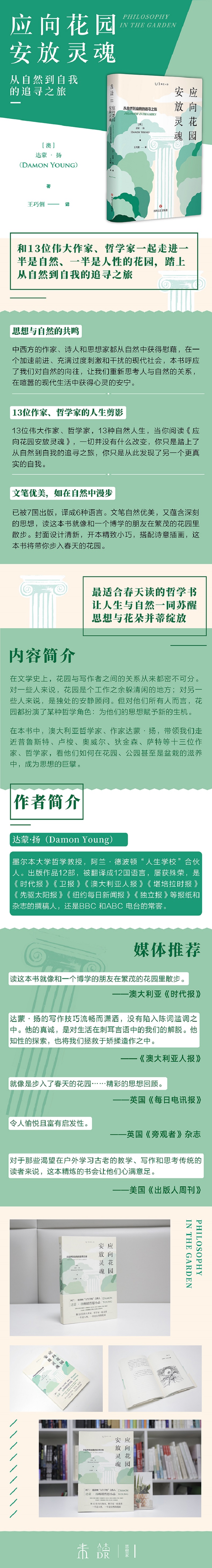 在本书中,澳大利亚哲学家、作家达蒙·扬,带领我们走近普鲁斯特、卢梭、奥威尔、狄金森、萨特等十三位作家、哲学家,看他们如何在花园、公园甚至是盆栽的滋养中,成为思想的巨擘。
