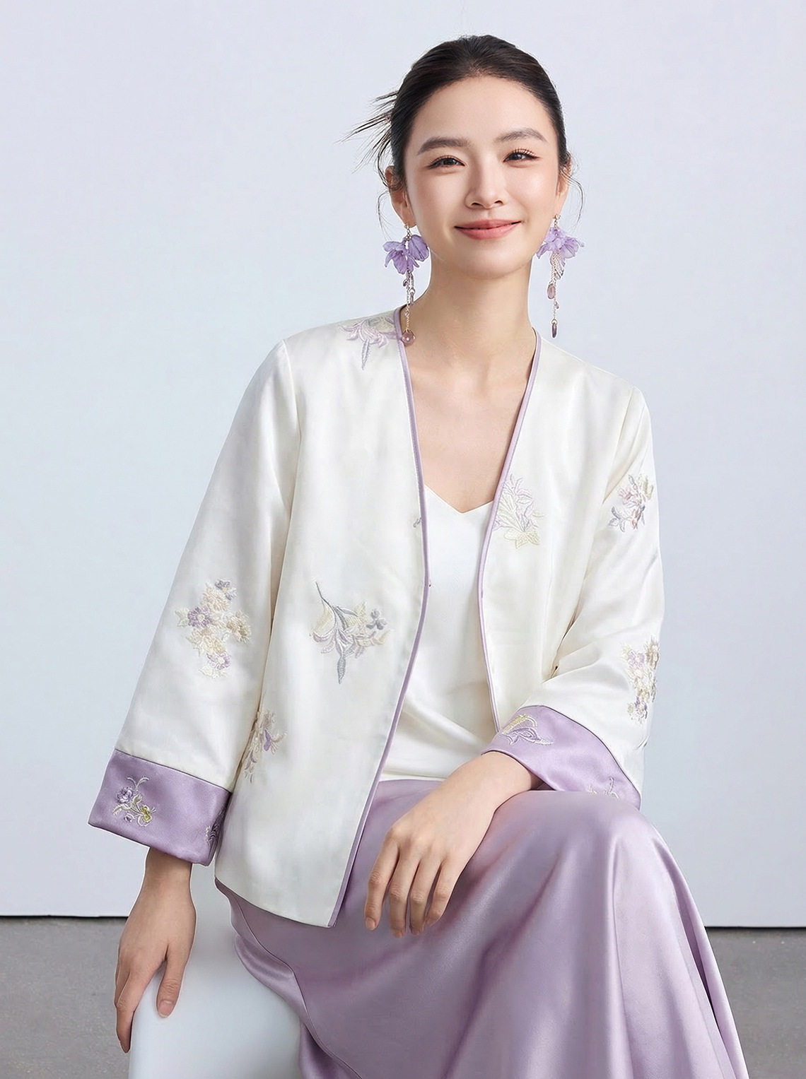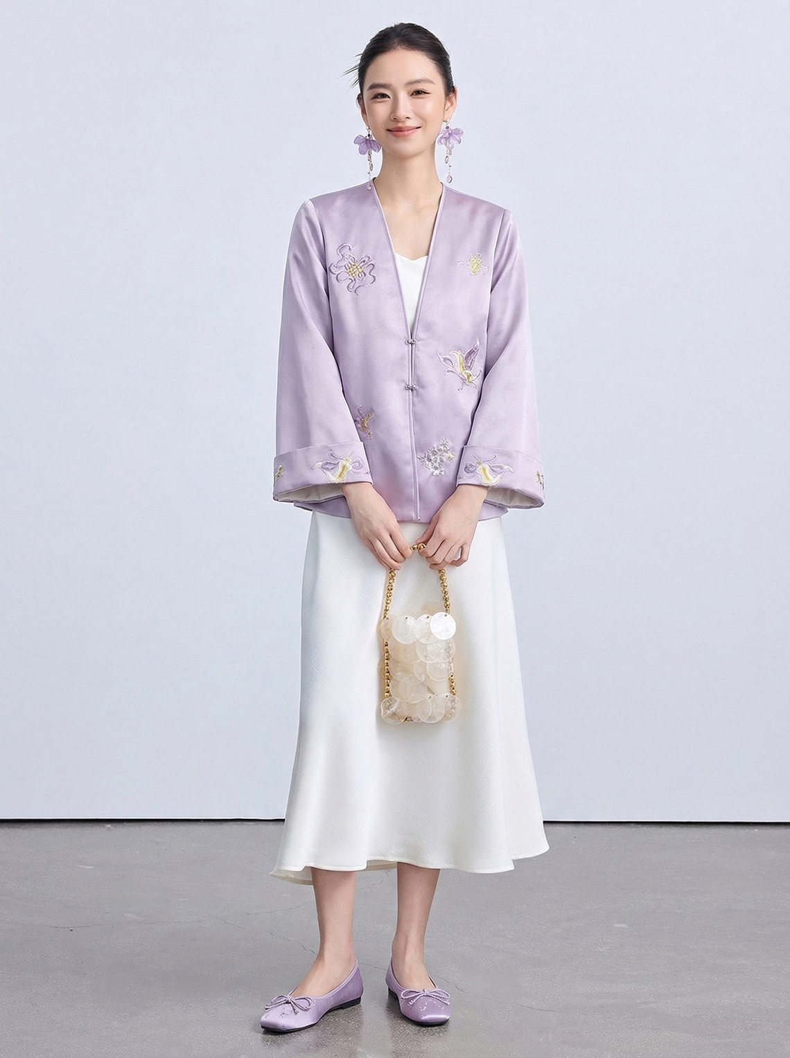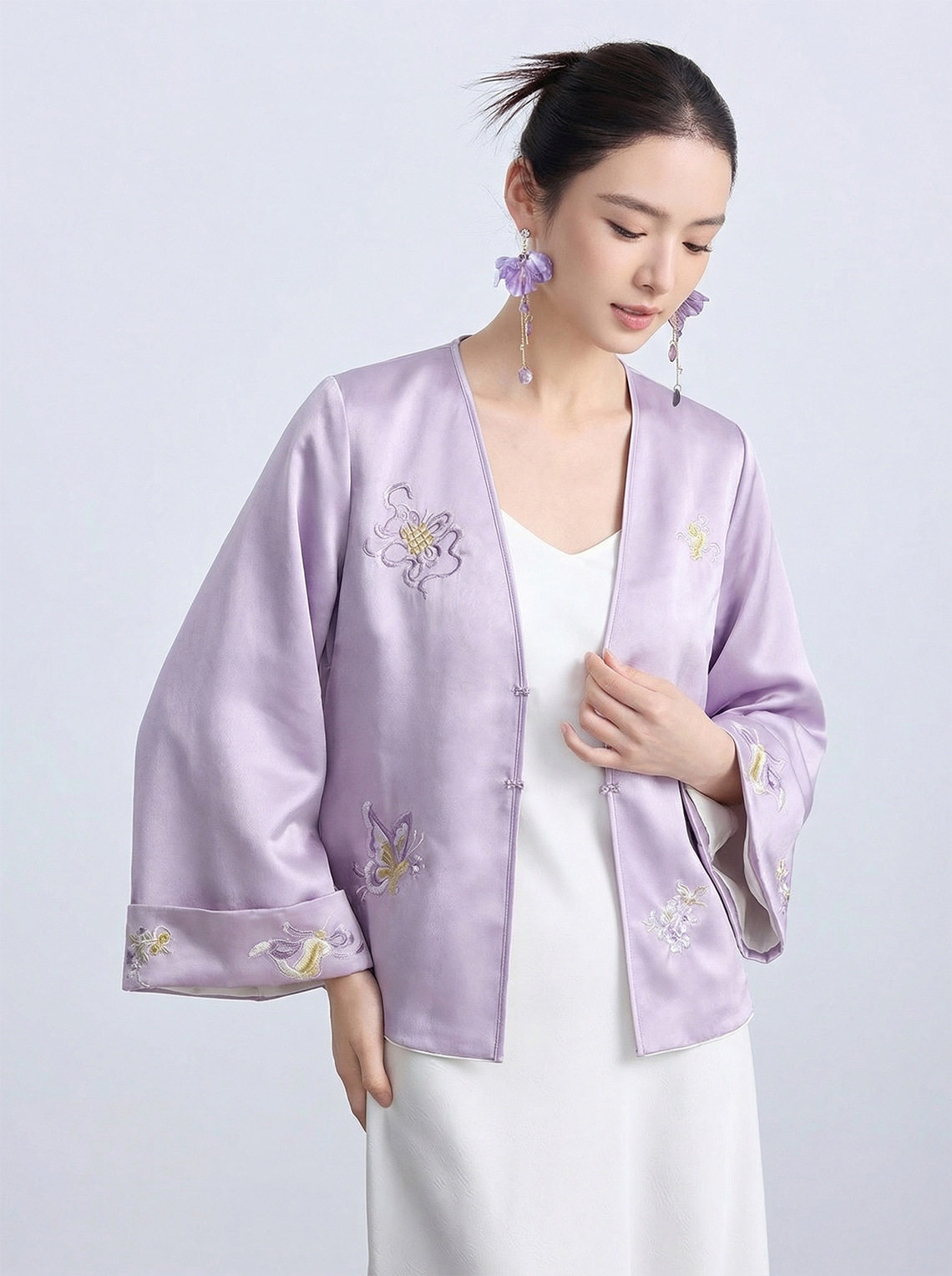 「自」全新升级【铂金会员404/天猫539/差价135】(22504)洛诗琳气质新中式外套2026新款国风双面穿宽松V领绣花外套