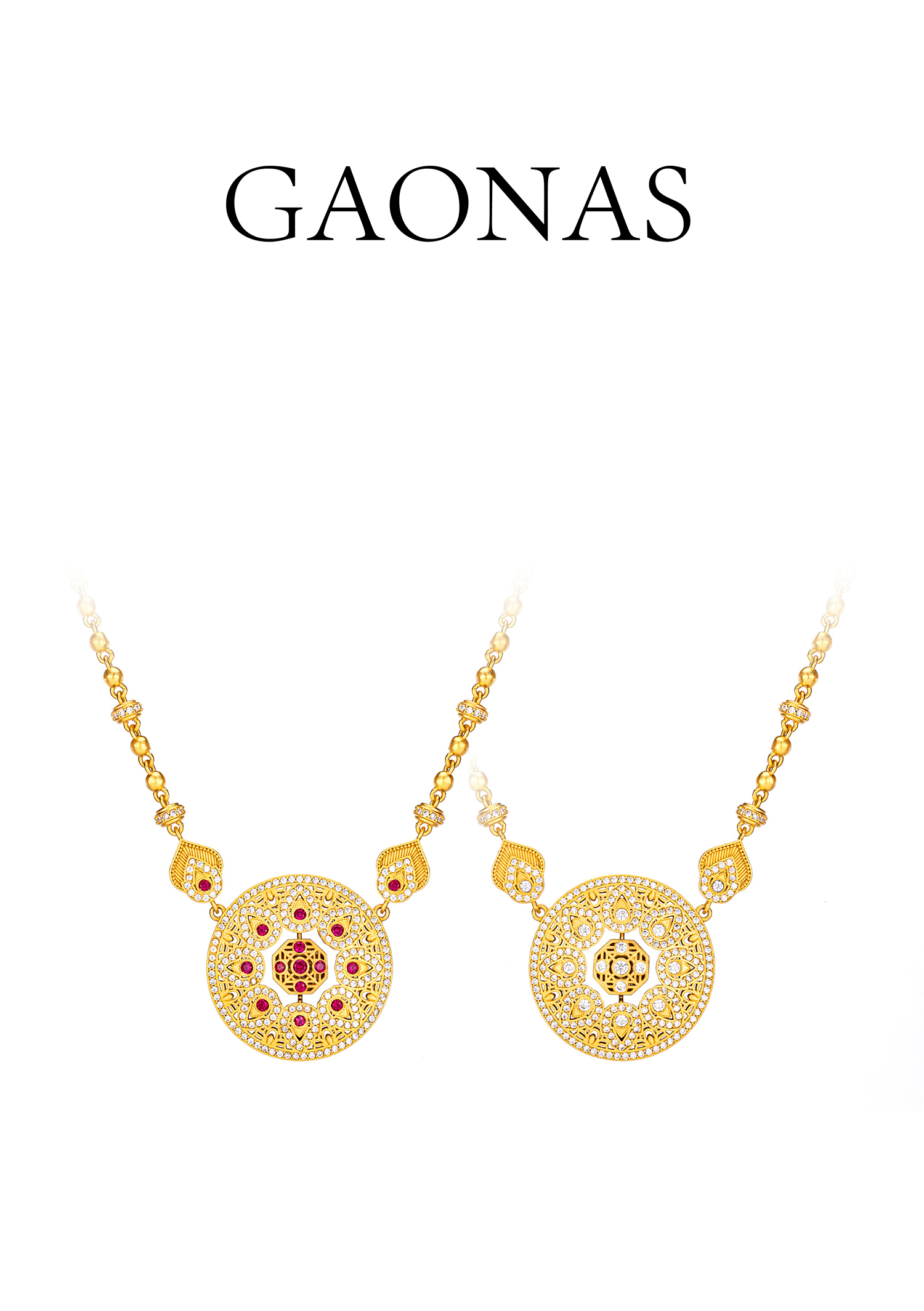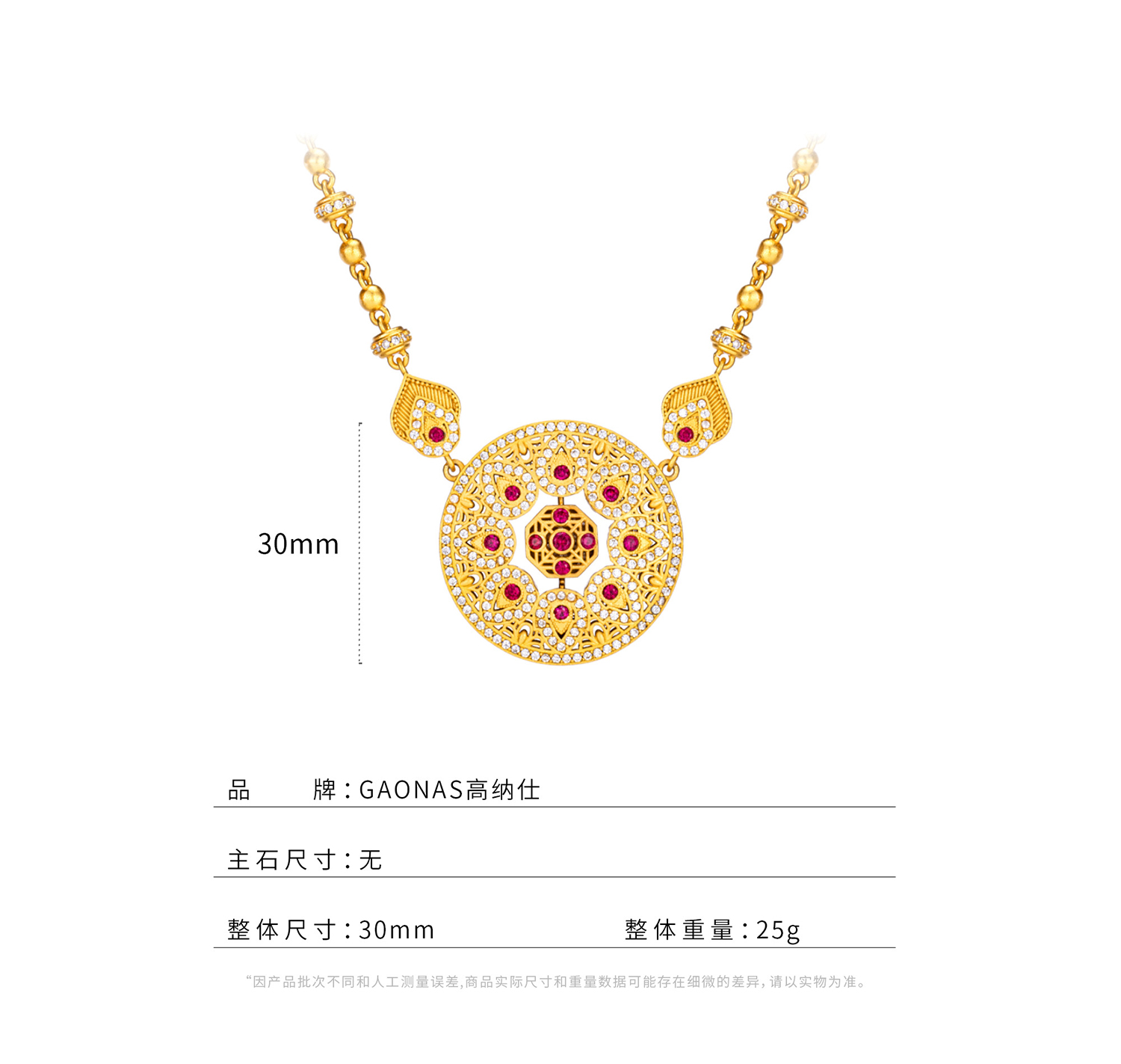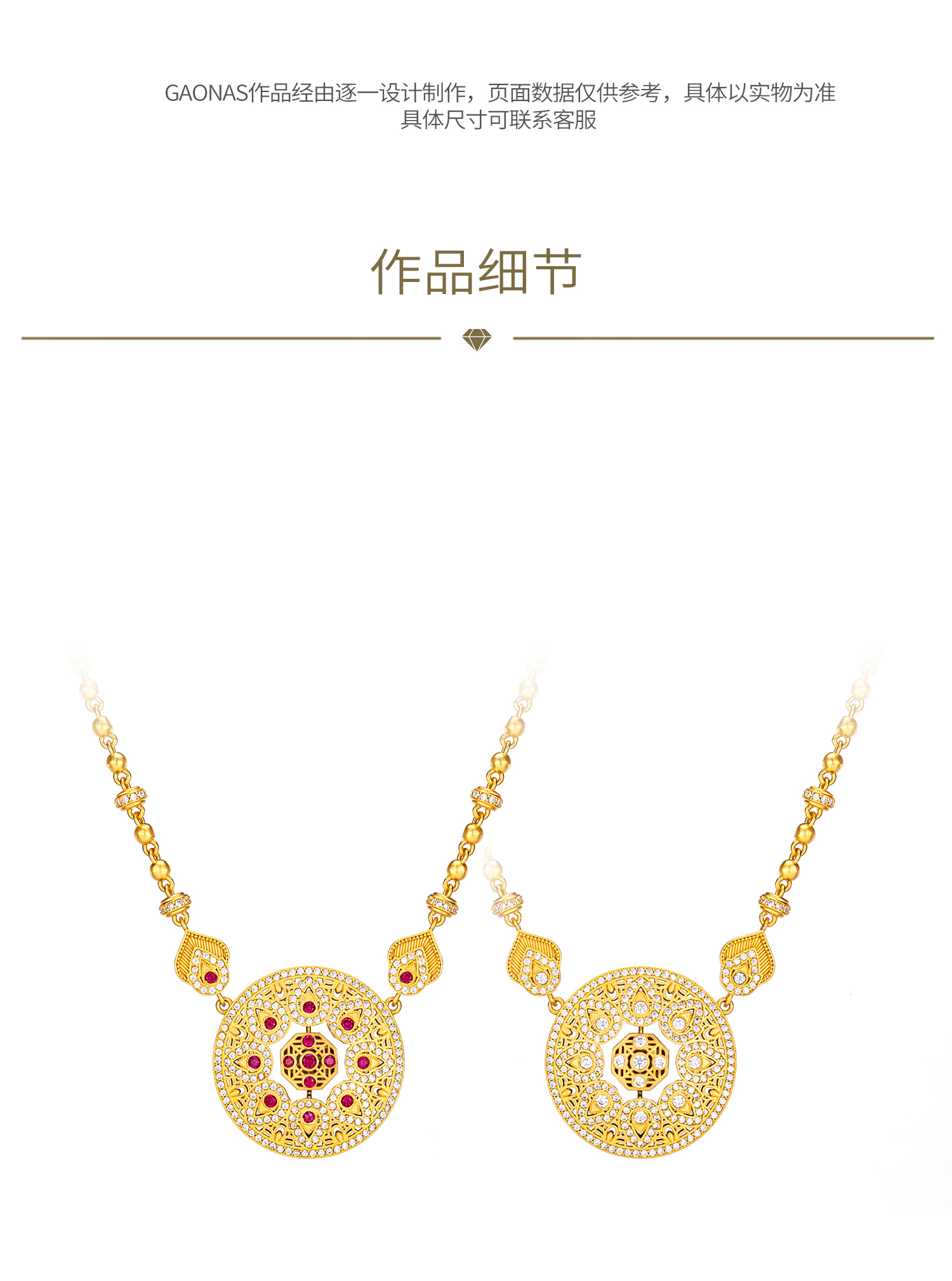 GAONAS高纳仕 镜花宝相中式贵气金色圆项链11918XGO