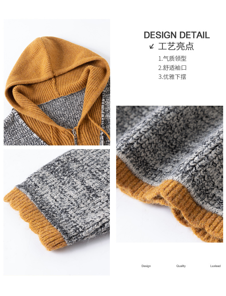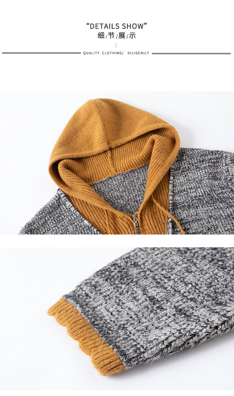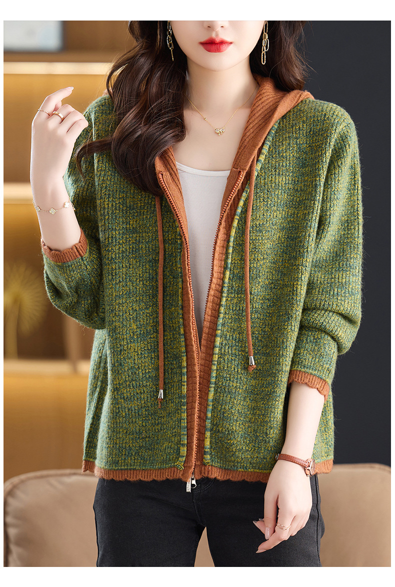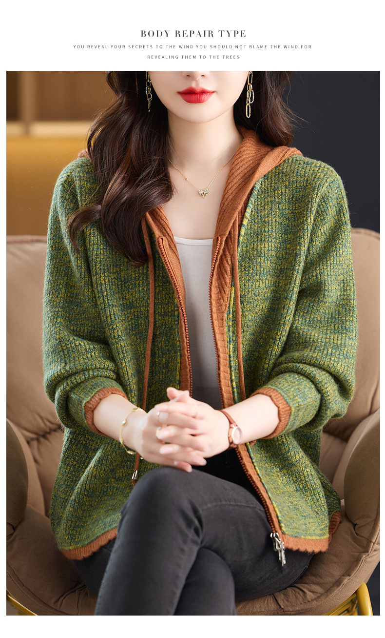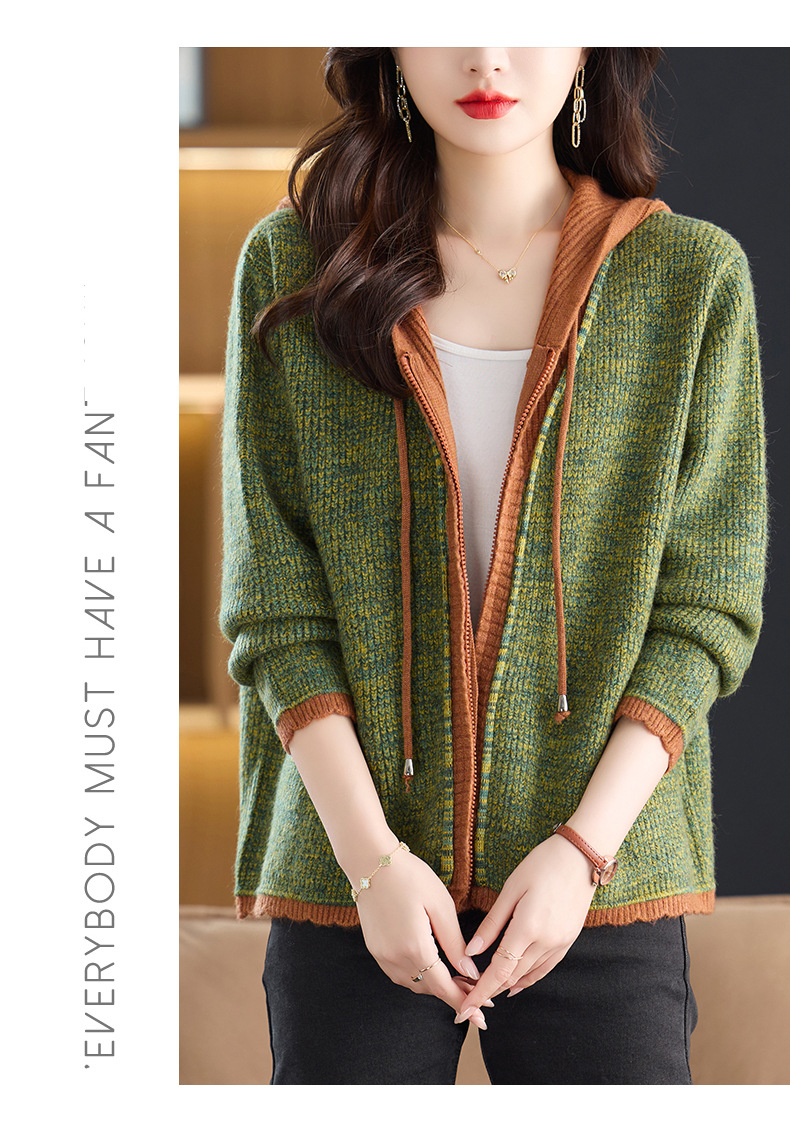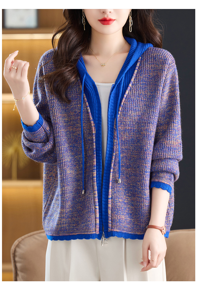 CC假两件连帽针织开衫外套女2025春秋新款时尚撞色卫衣休闲短款毛衣