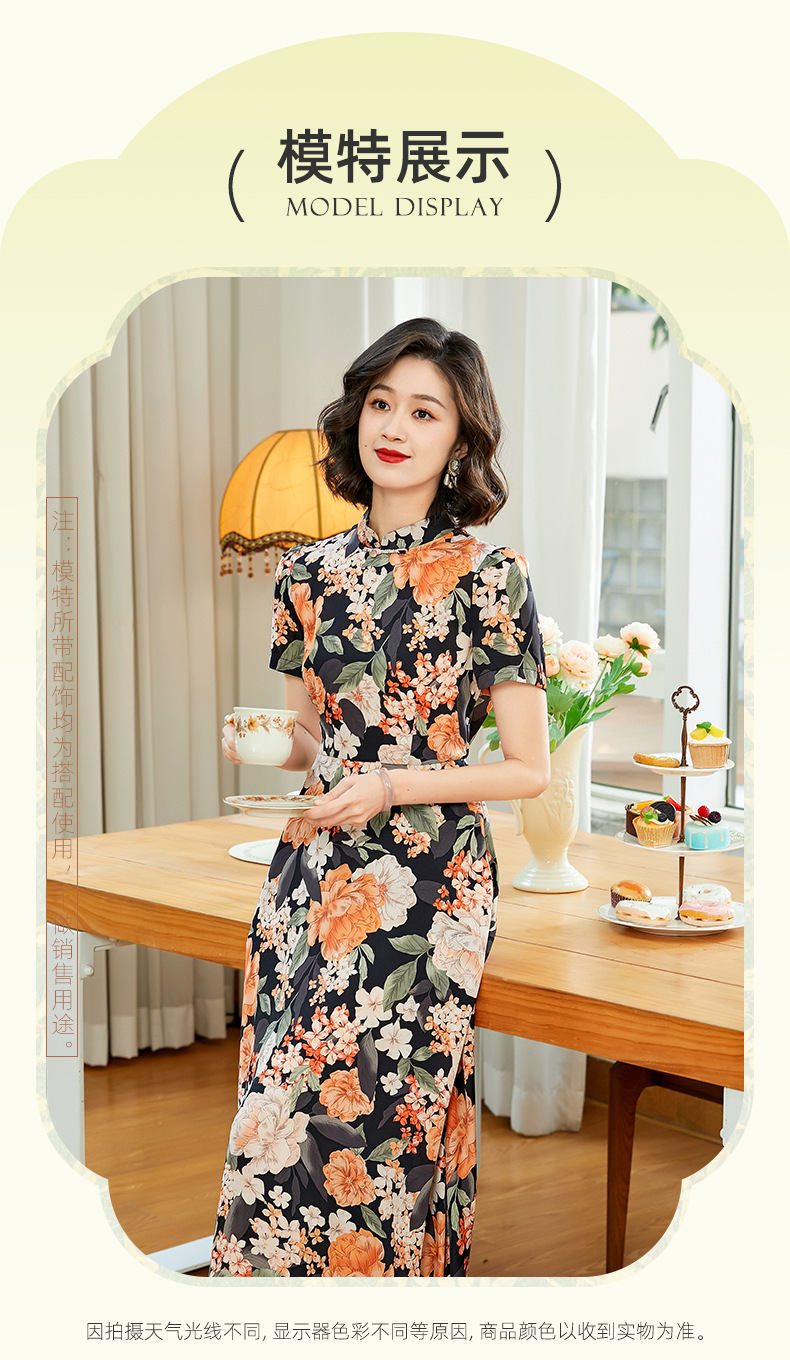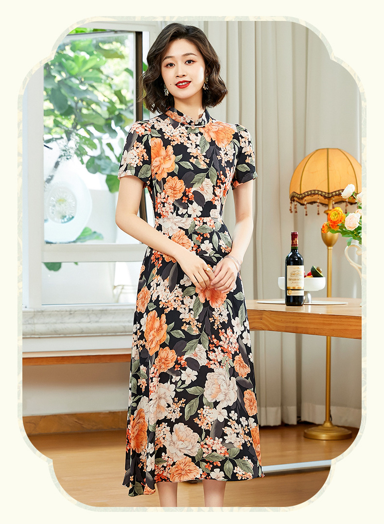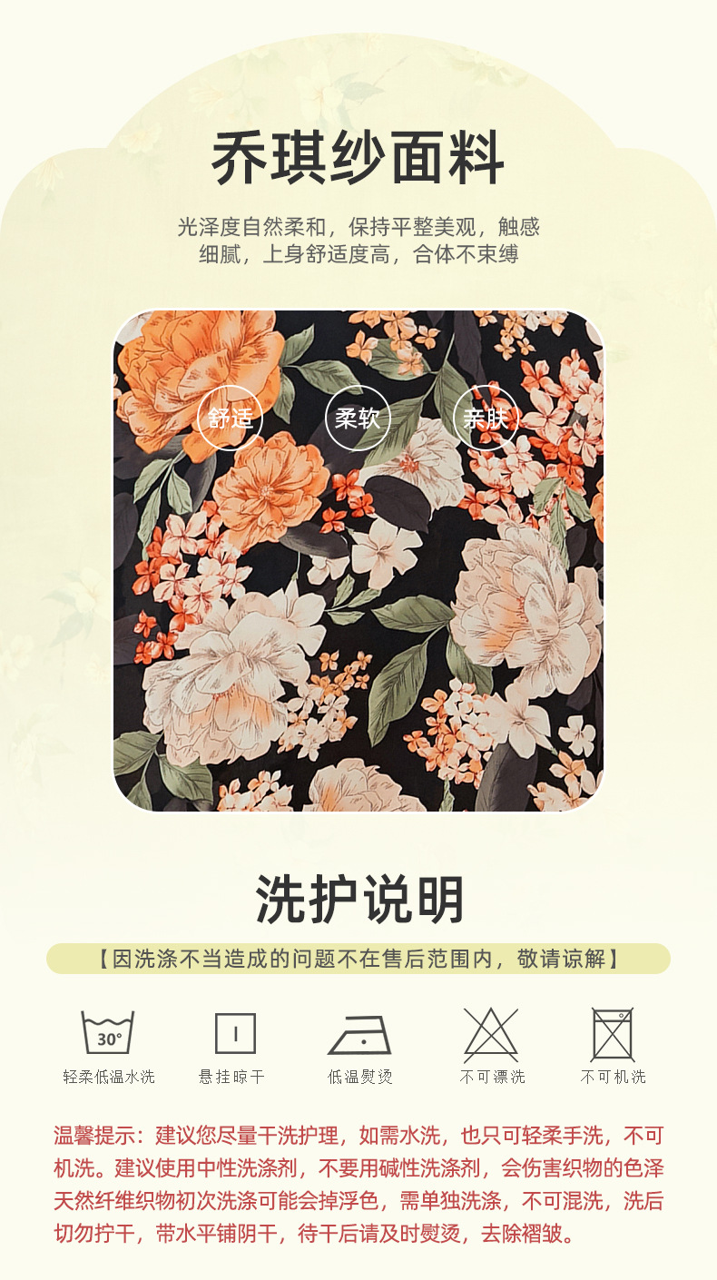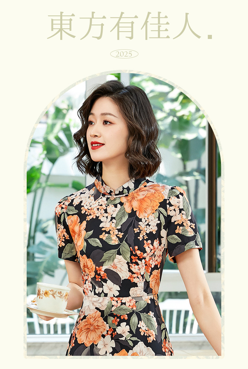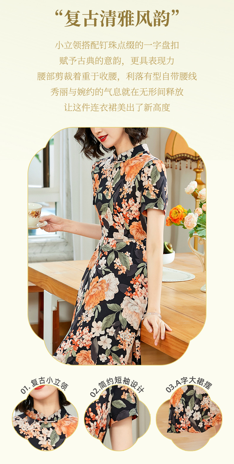 「自」全新升级【铂金会员220/天猫299/差价79】(13837)洛诗琳气质乔其纱印花连衣裙2025夏季国风改良旗袍连衣裙
