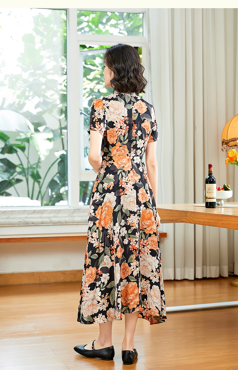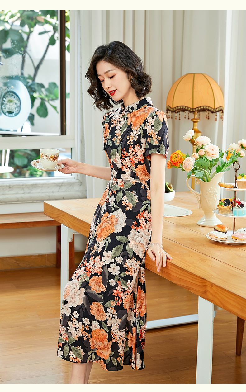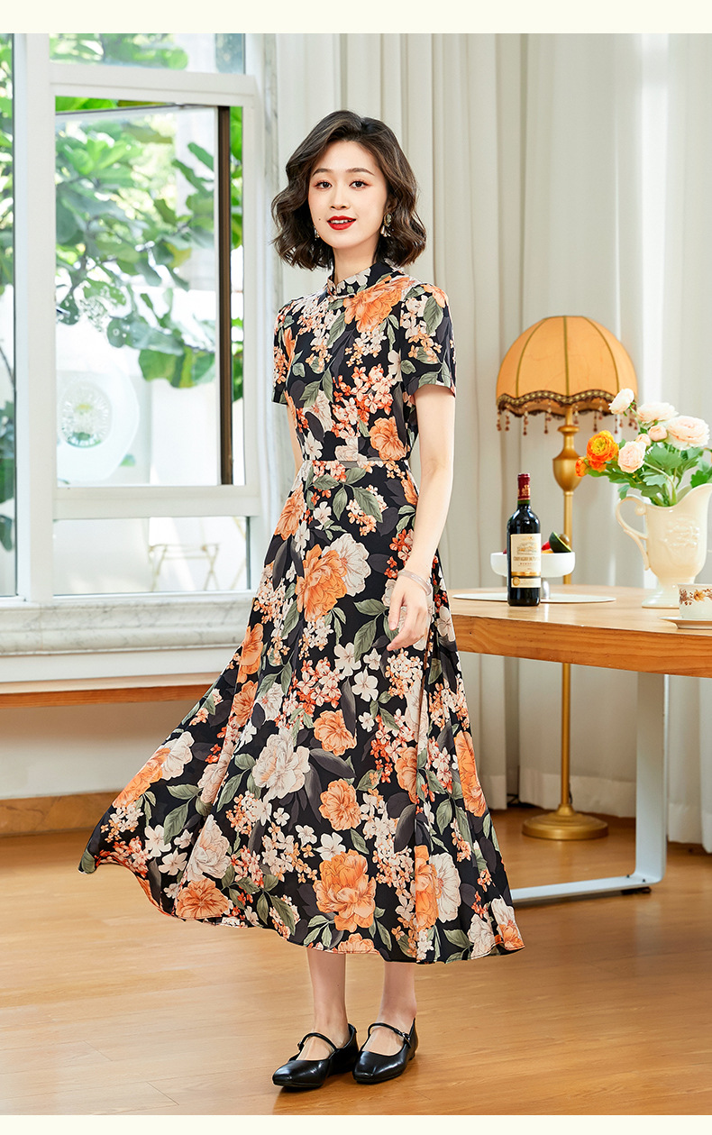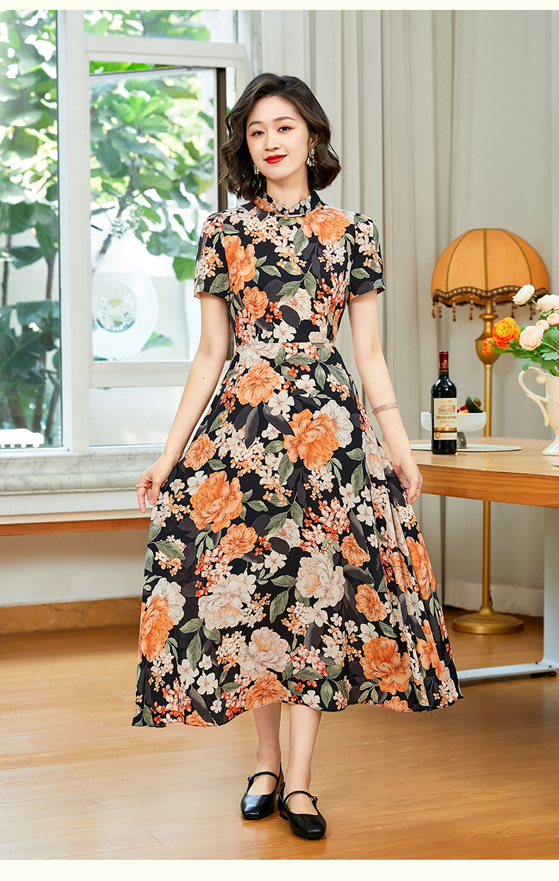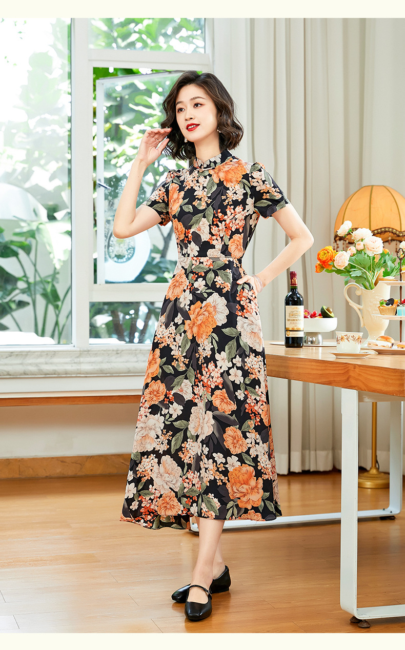 「自」全新升级【铂金会员220/天猫299/差价79】(13837)洛诗琳气质乔其纱印花连衣裙2025夏季国风改良旗袍连衣裙