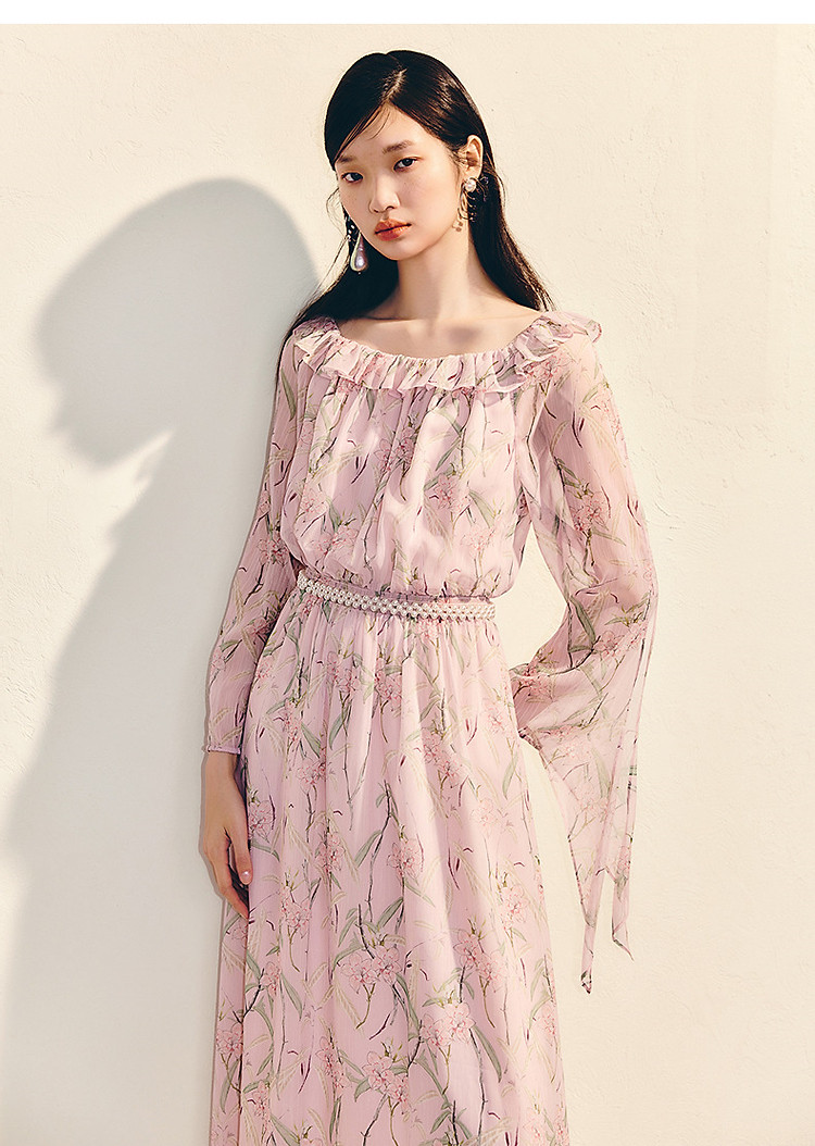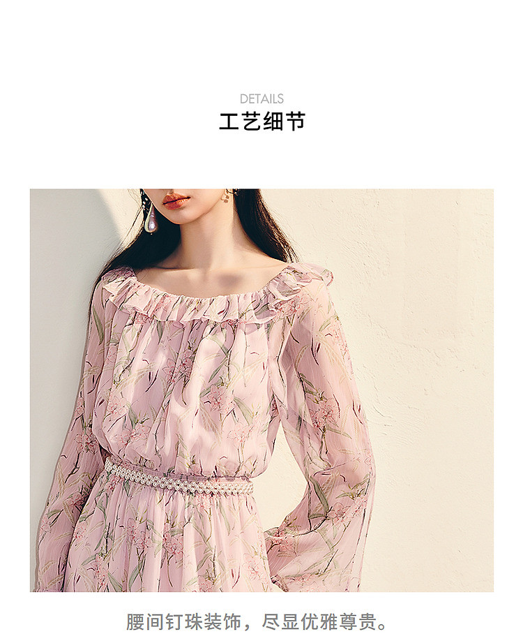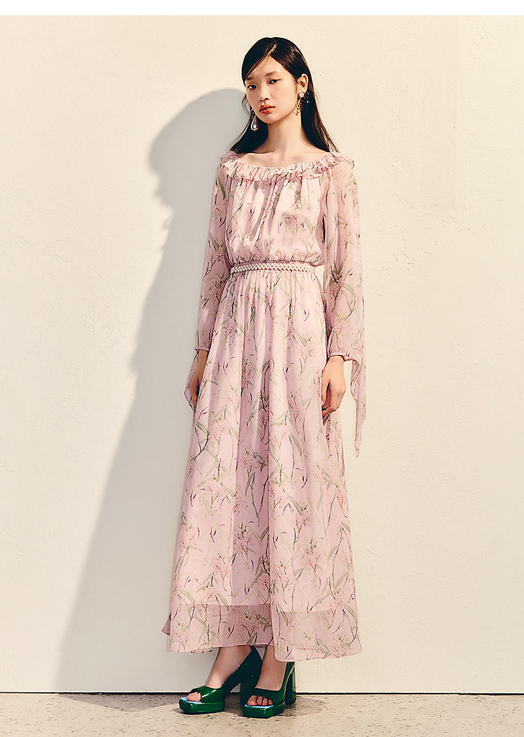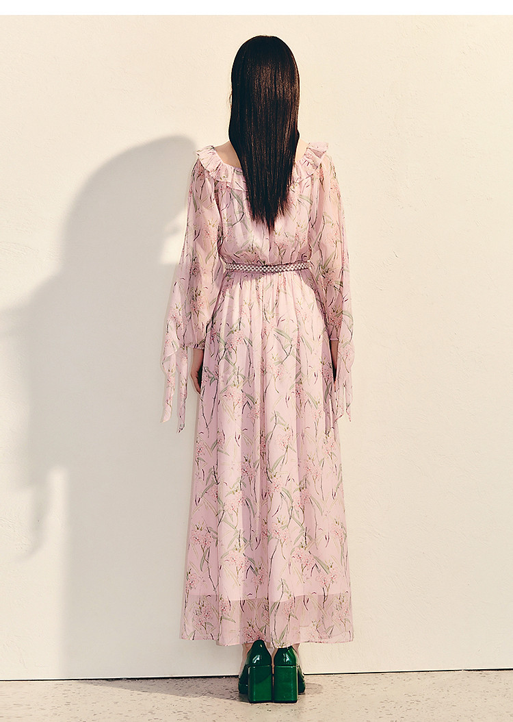 粉彩百合连衣裙收腰x型2025夏季氛围感浅藕色长裙(货号:MS86DR089E0002)