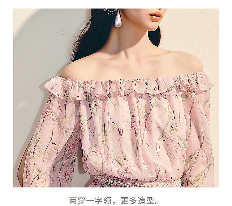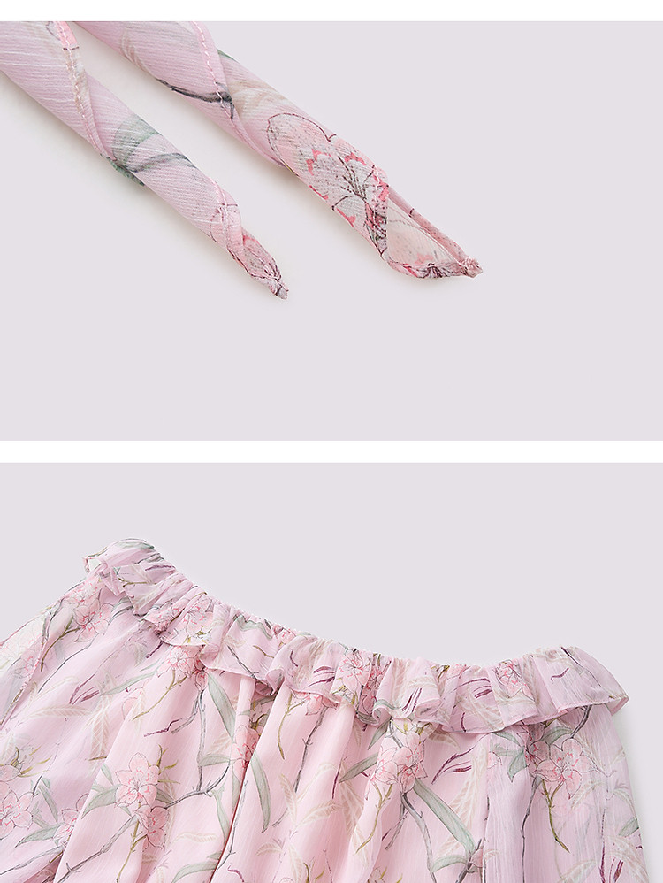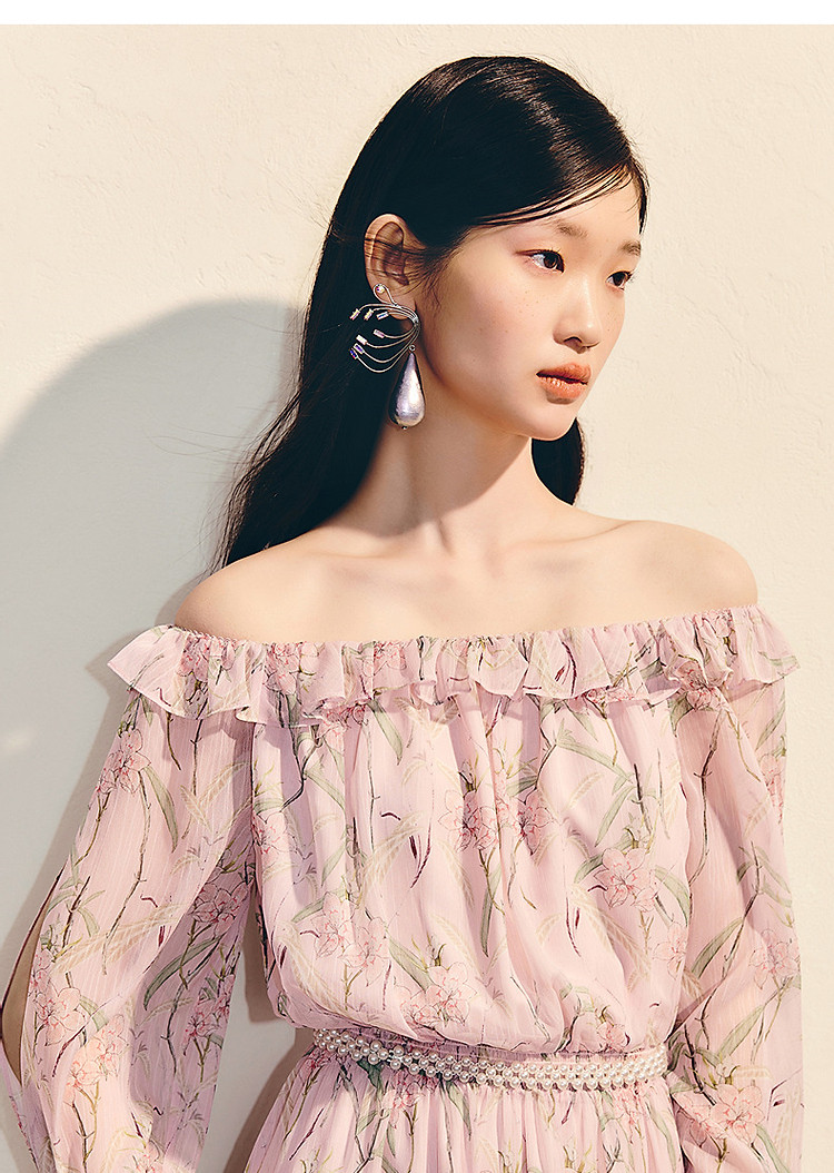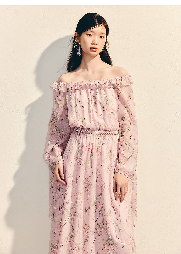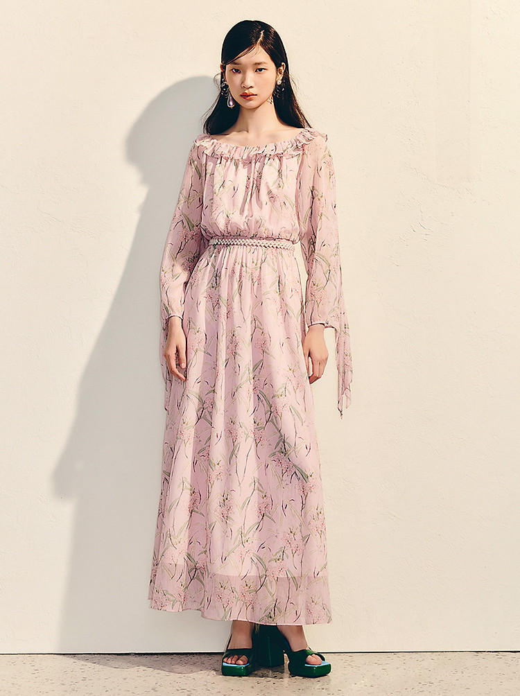粉彩百合连衣裙收腰x型2025夏季氛围感浅藕色长裙(货号:MS86DR089E0002)