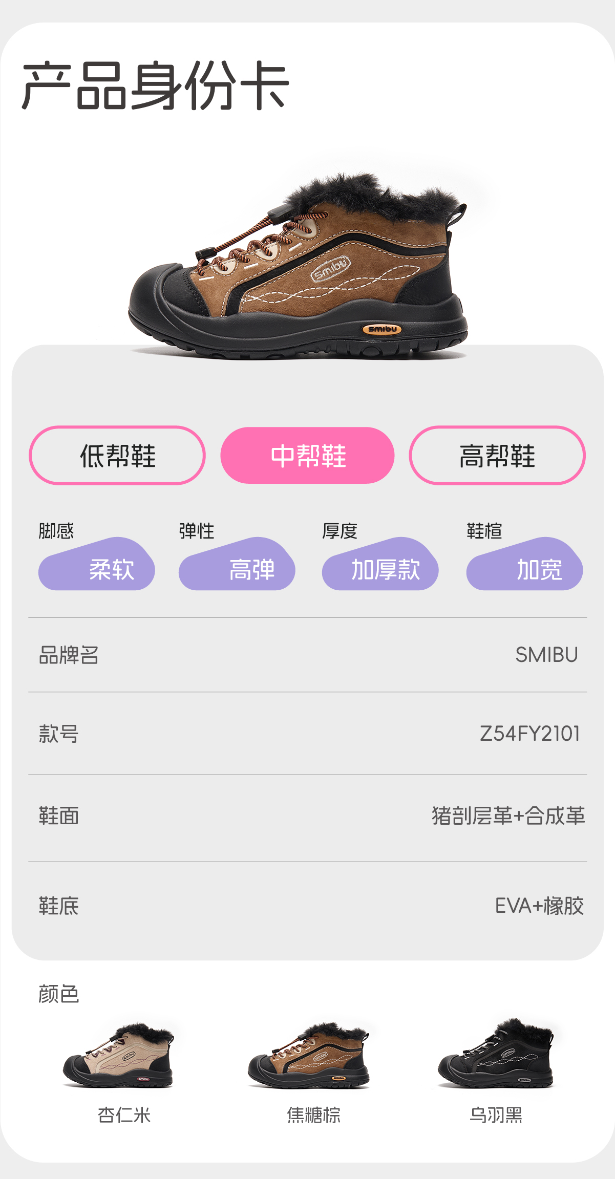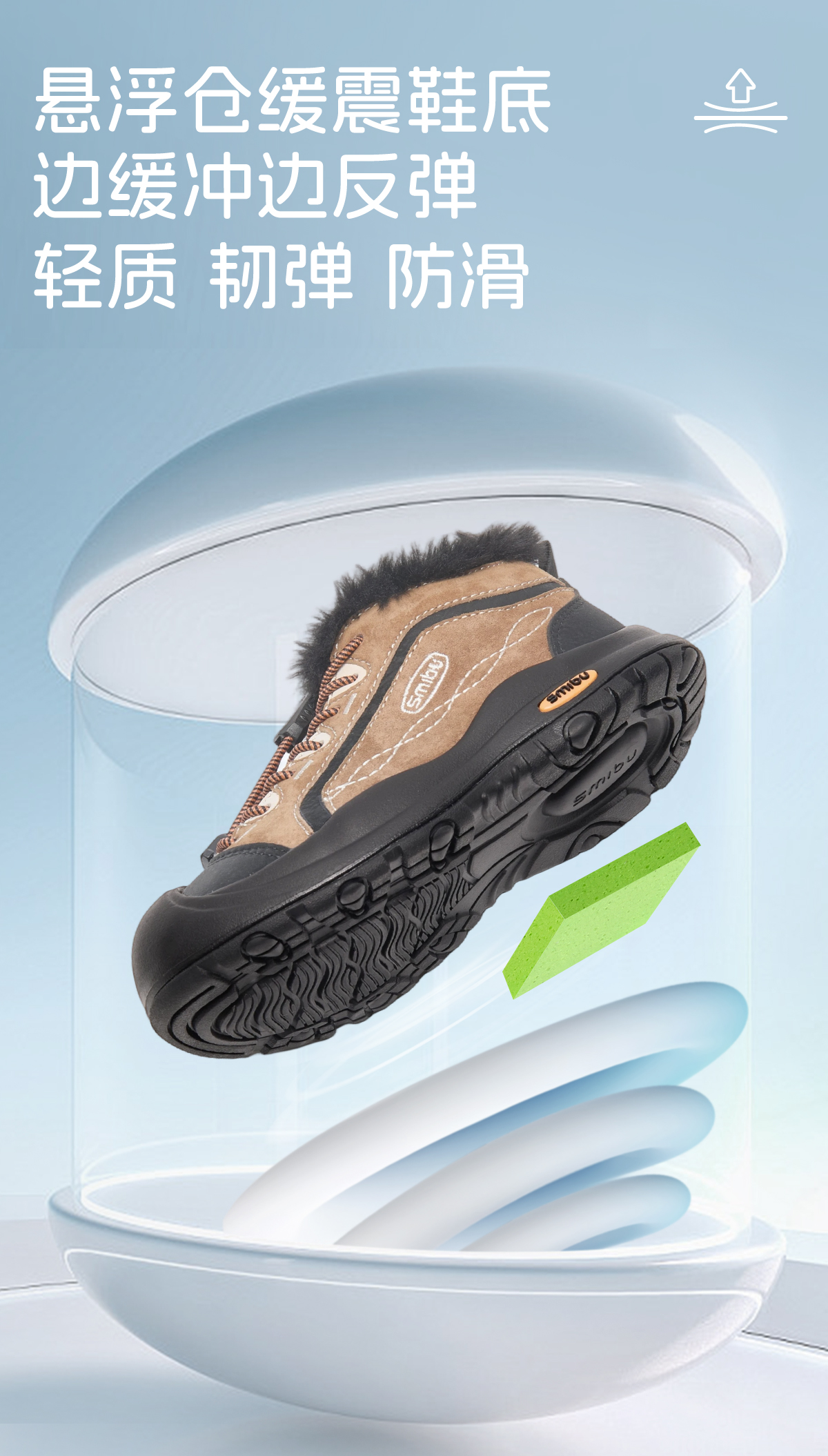 SMIBU旷野徒步系列男女儿童2025冬新款暖绒雪线苔原户外高帮保暖运动靴Z54FY2101 商品图3