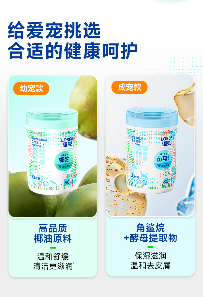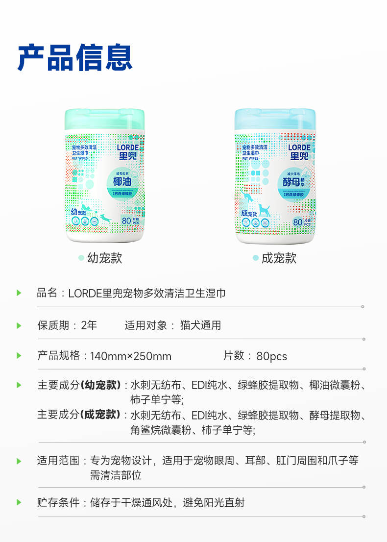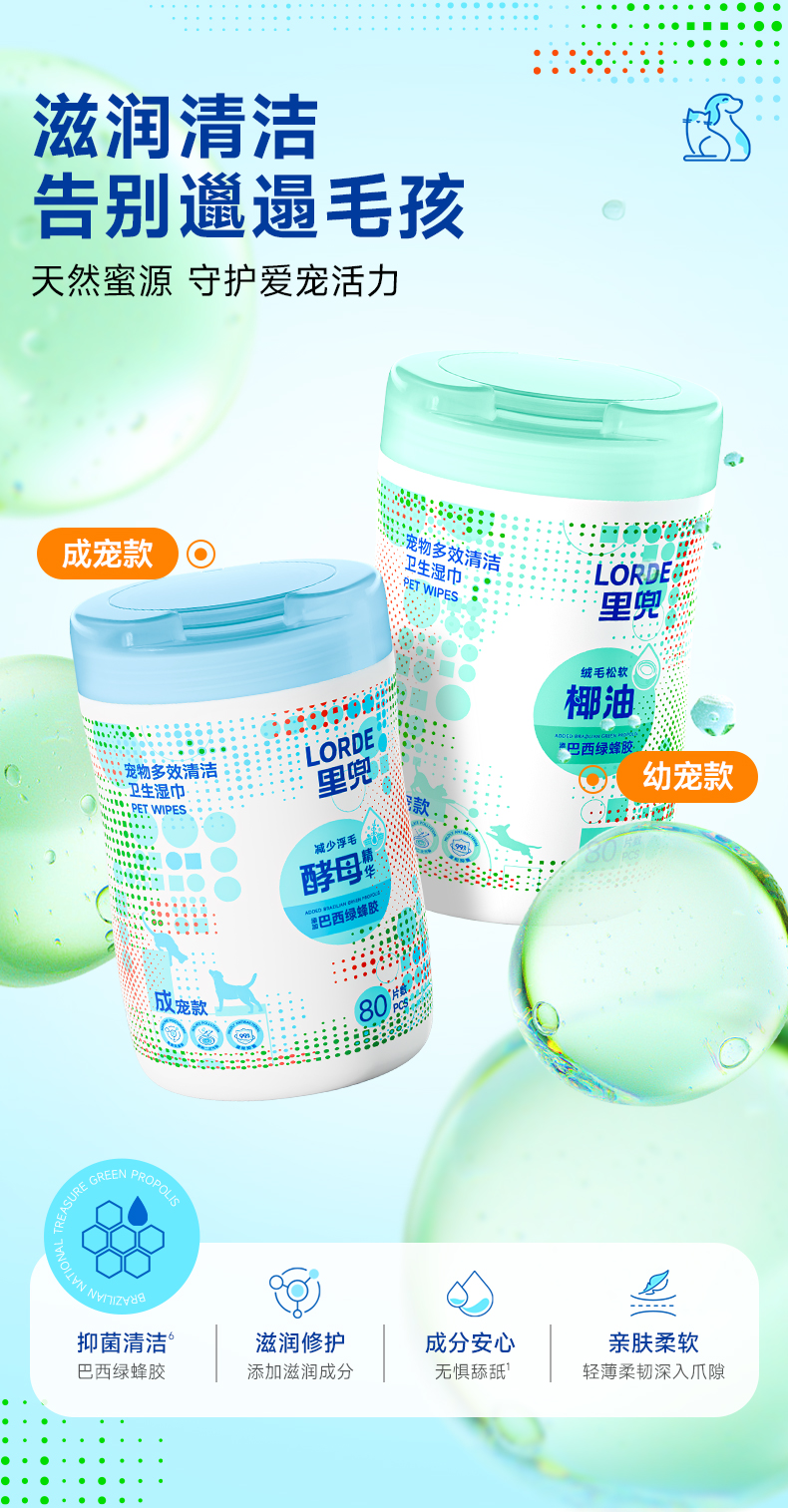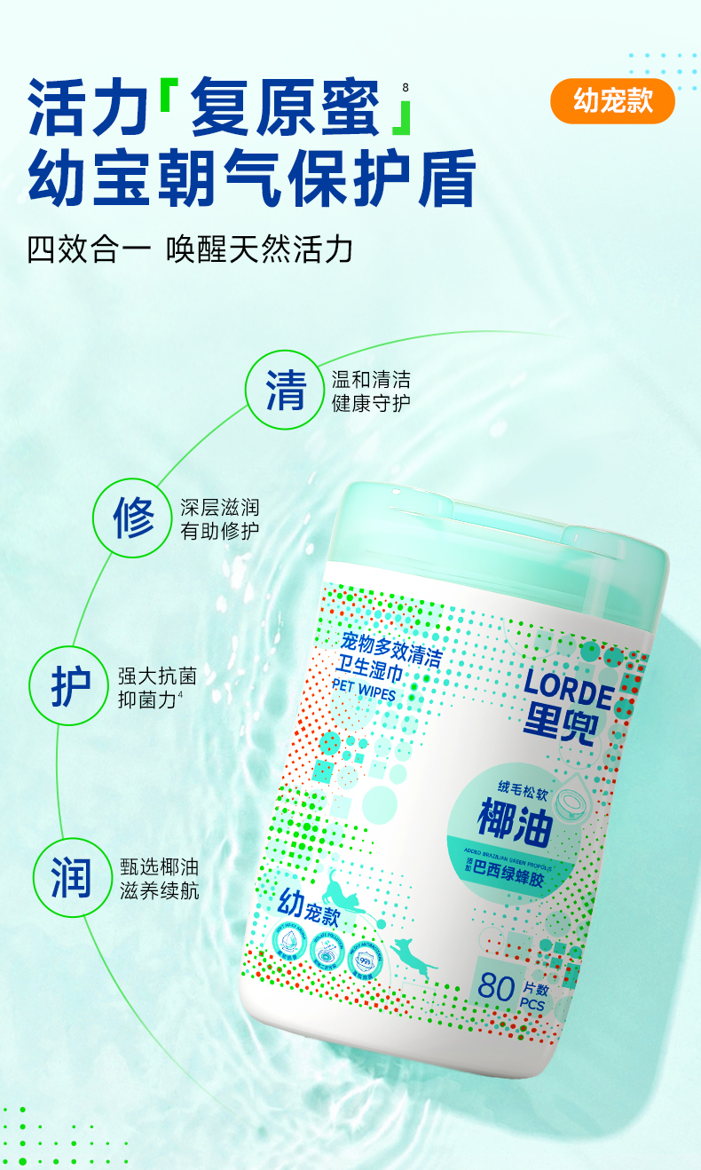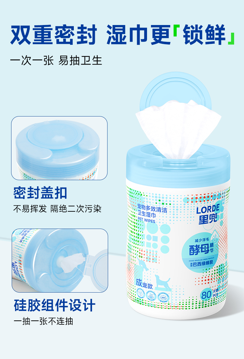 【新品上市】LORDE里兜宠物多效清洁卫生湿巾桶装80片
