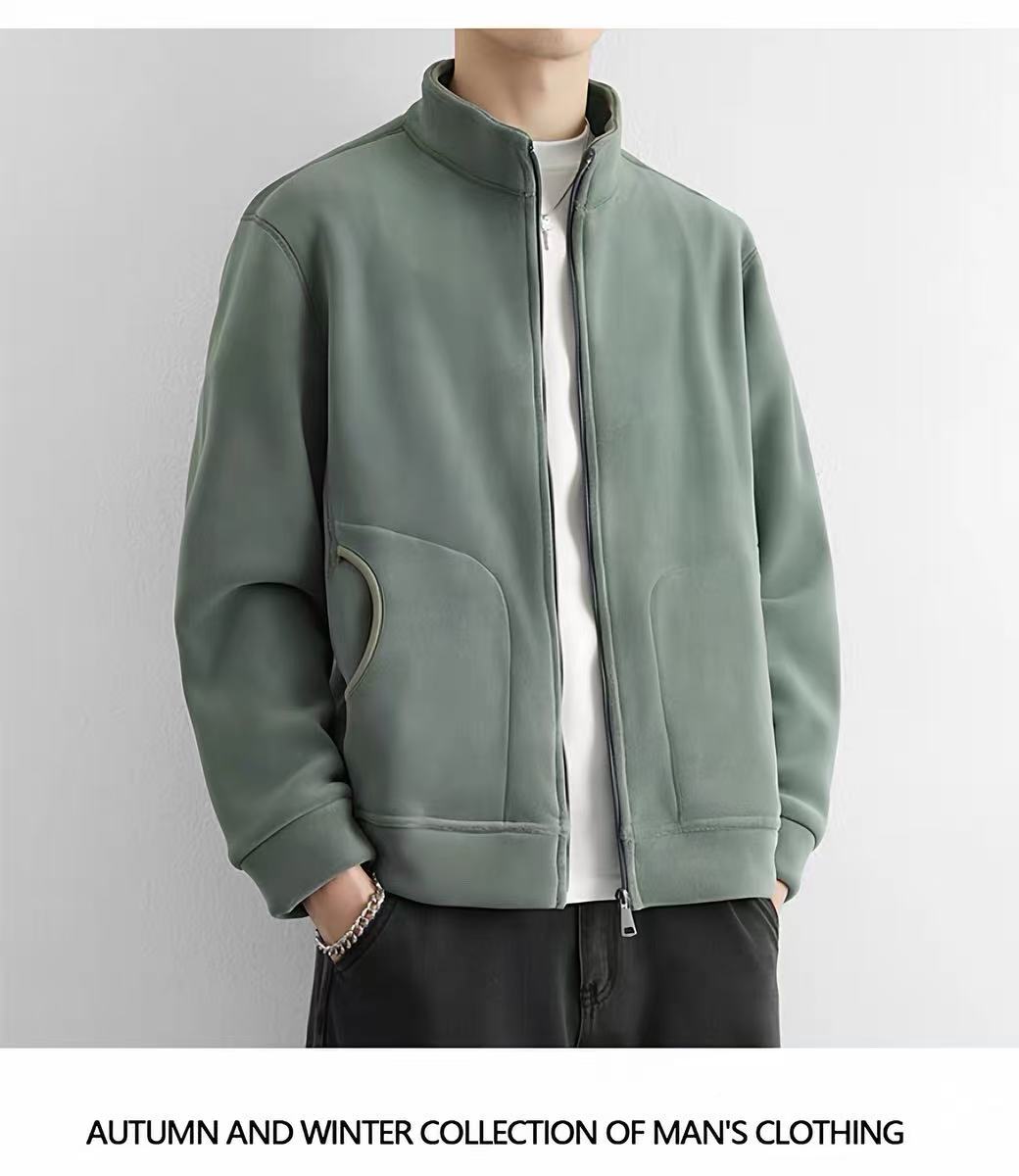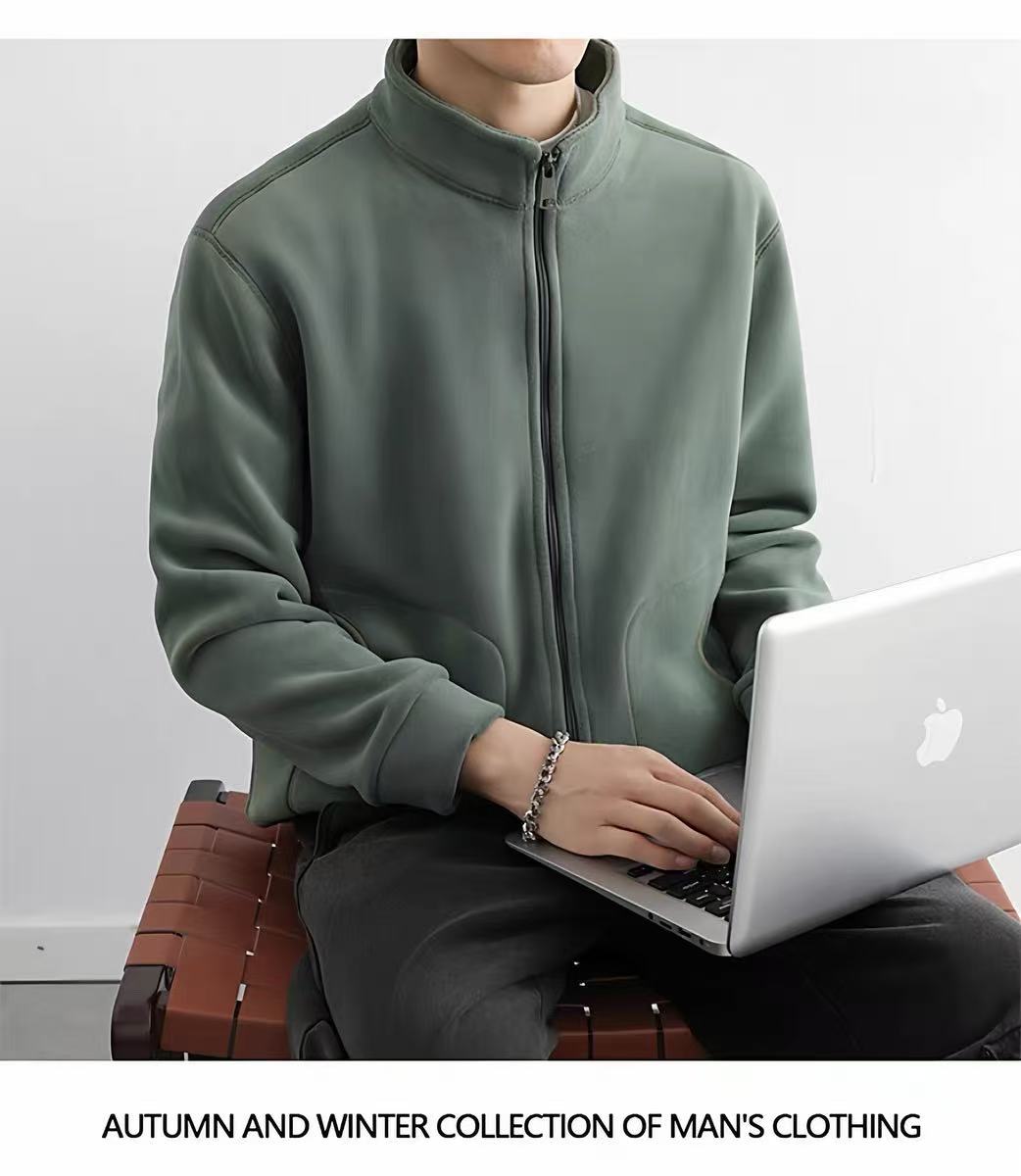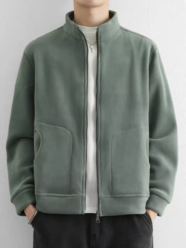 【孤品捡漏】G196男款绿色半高领抓绒衣-喜出