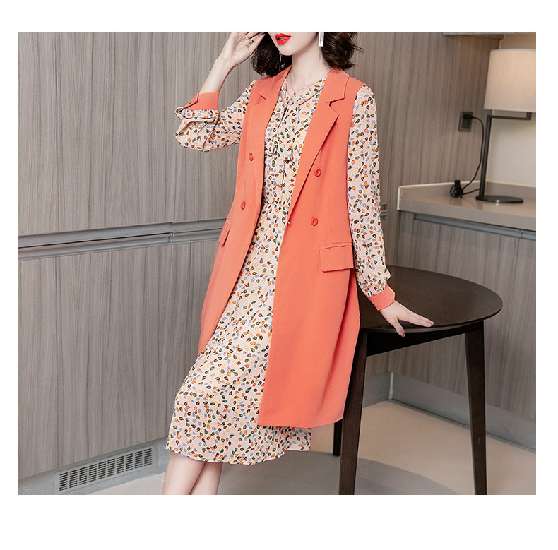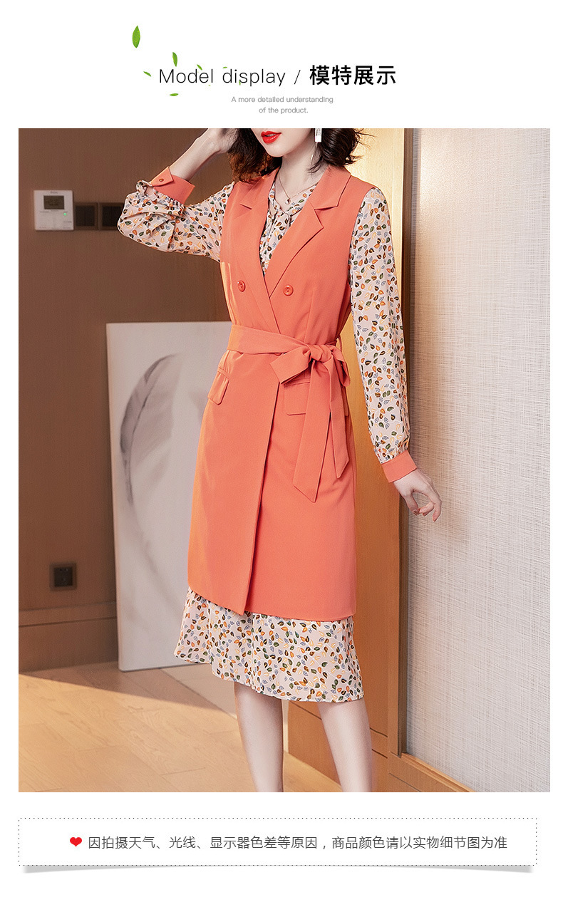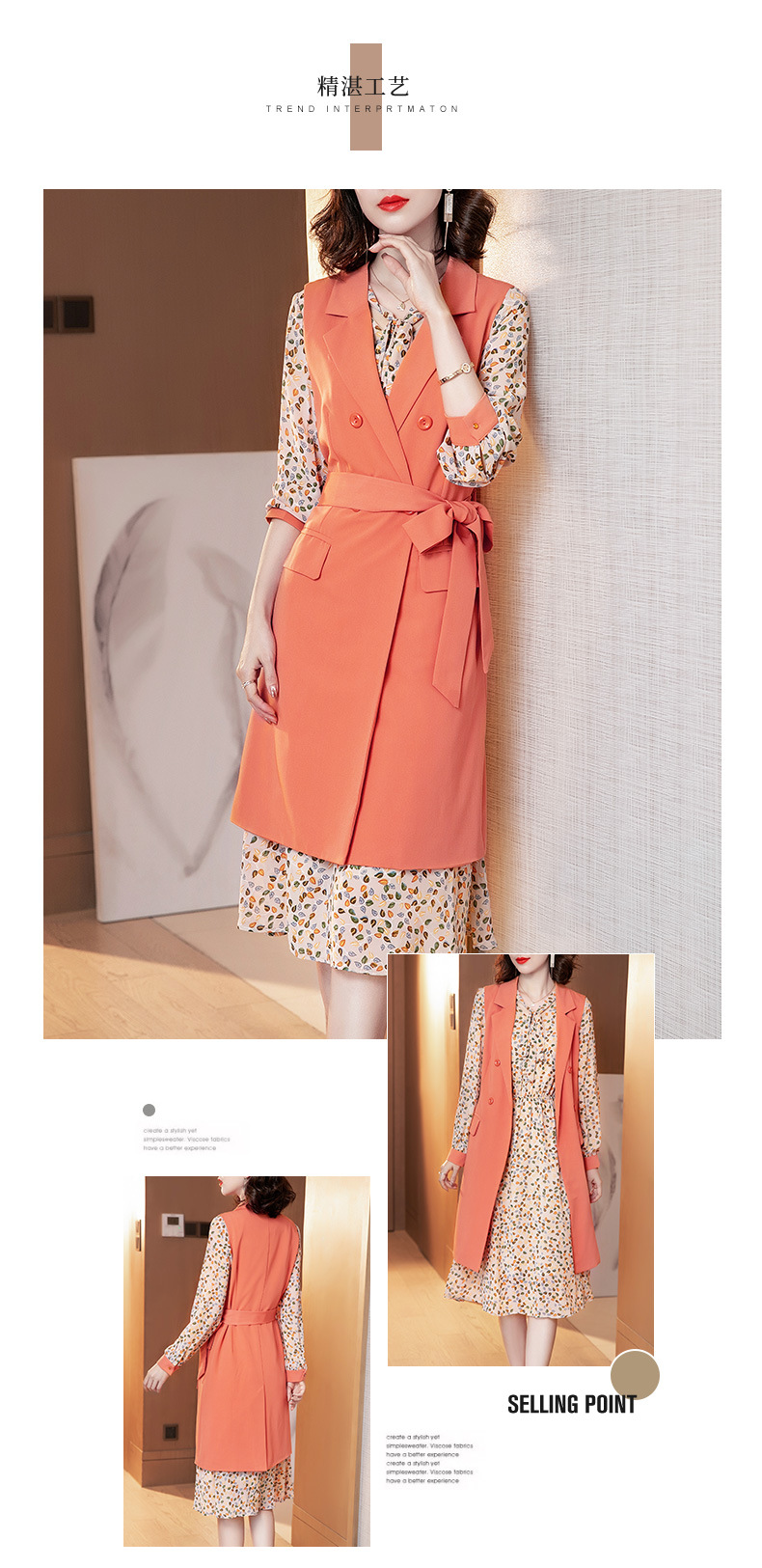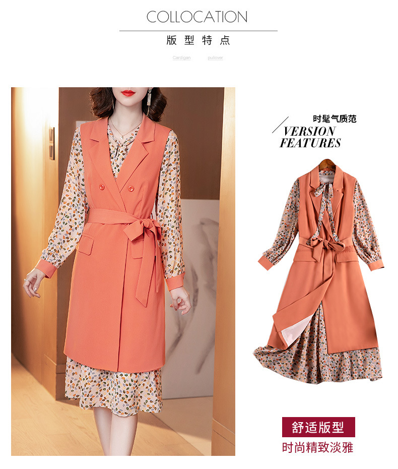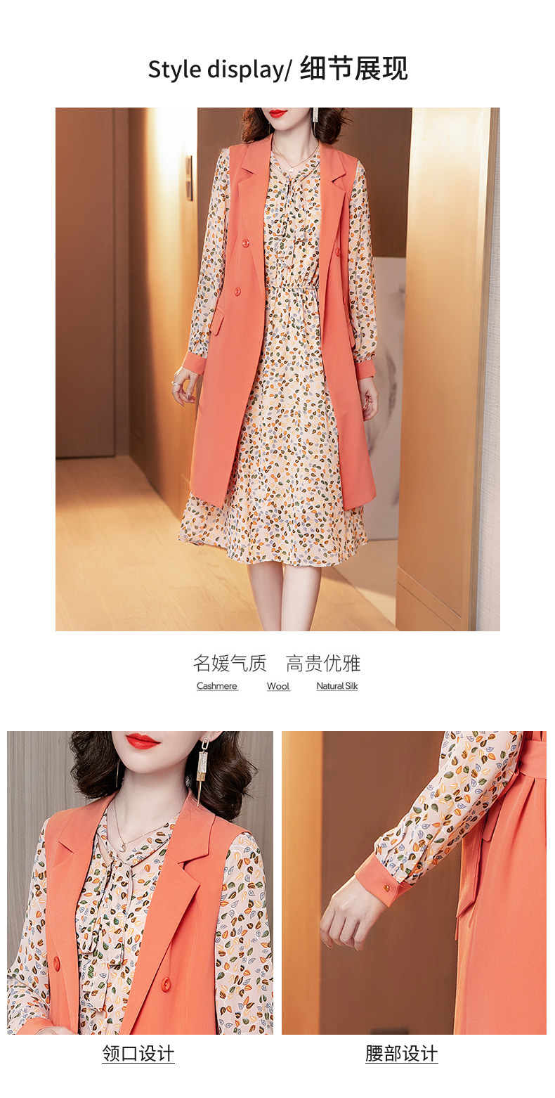 QM-70147女装雪纺连衣裙套装显瘦马甲外套