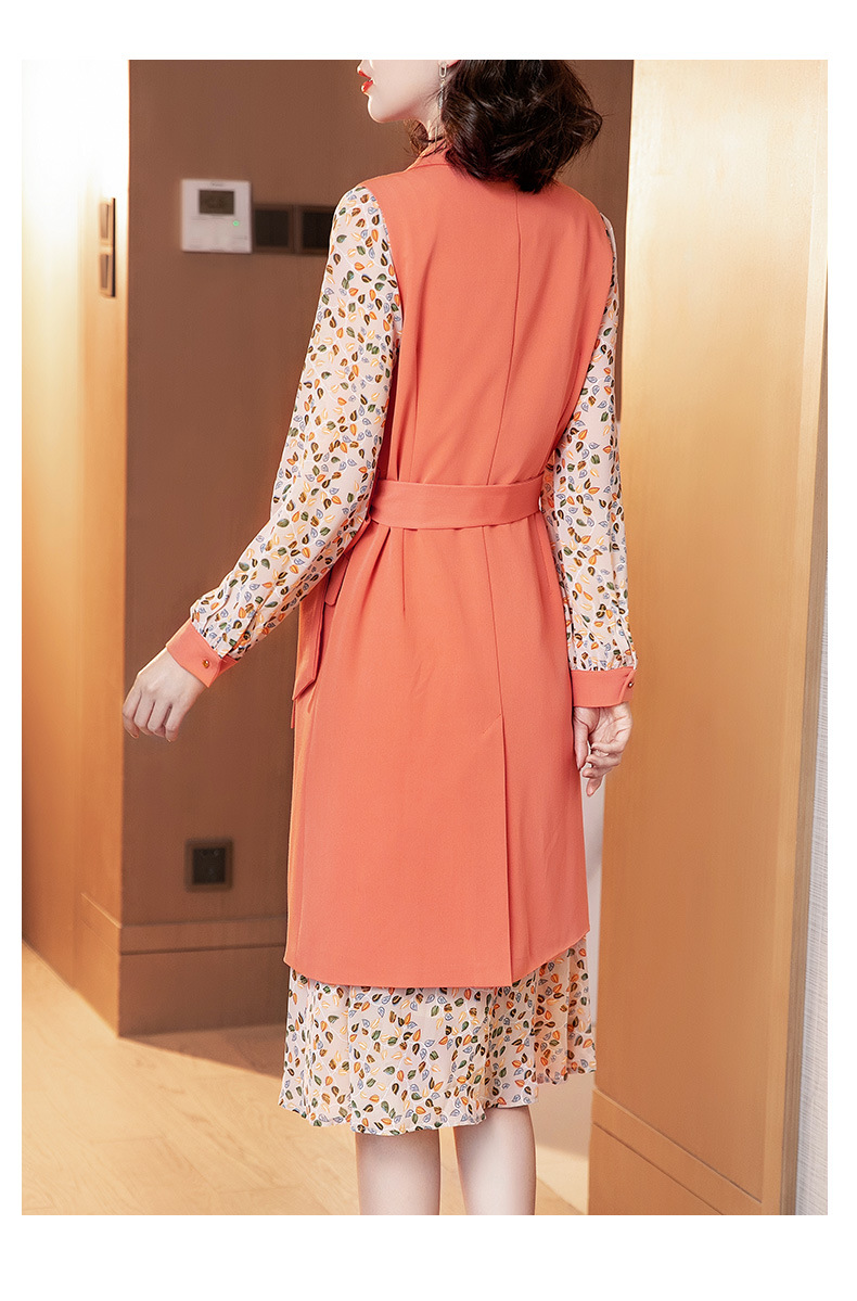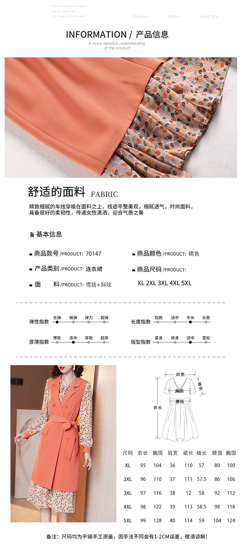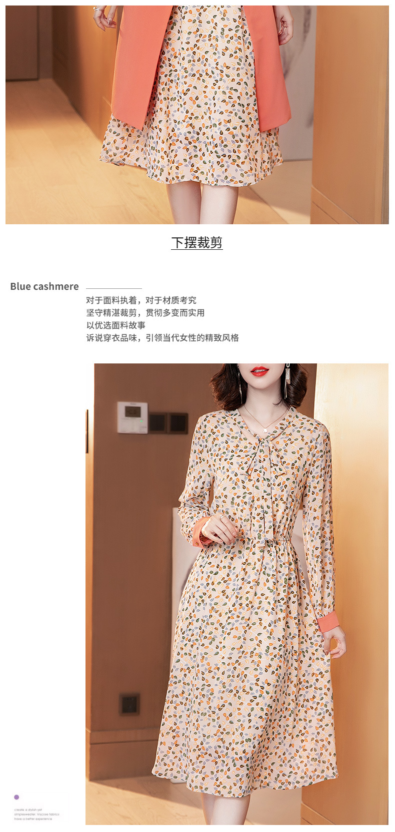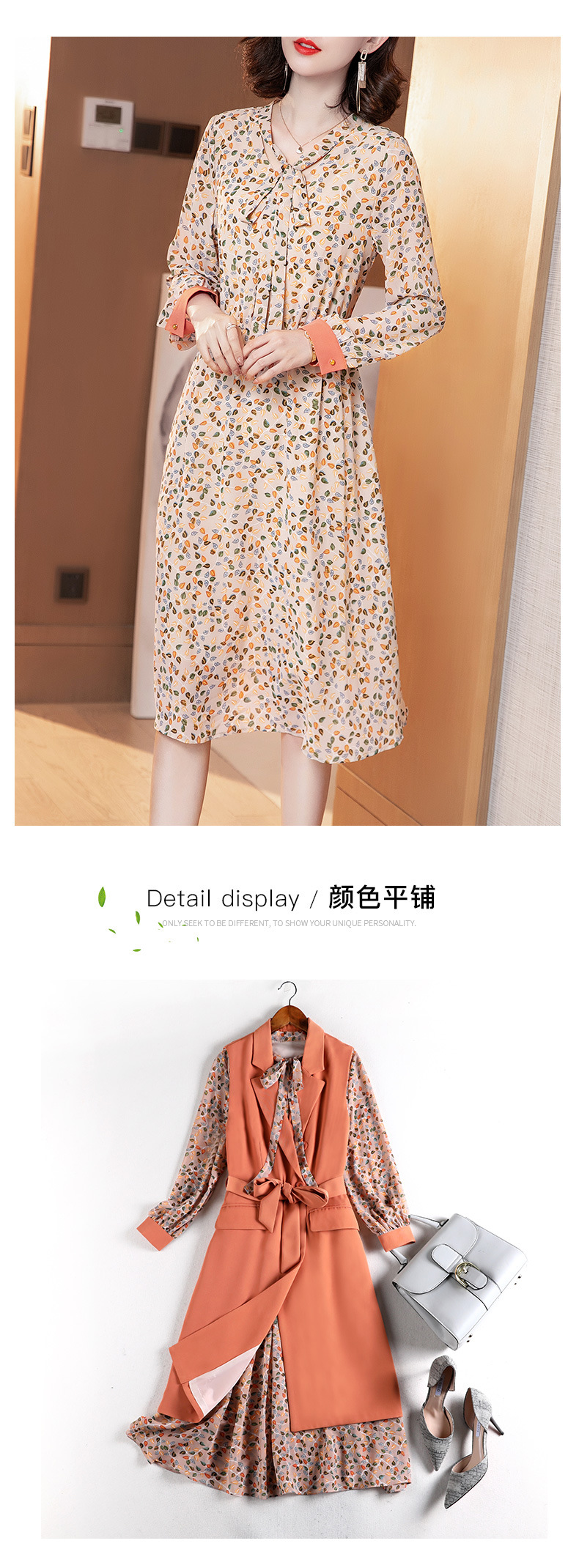 QM-70147女装雪纺连衣裙套装显瘦马甲外套