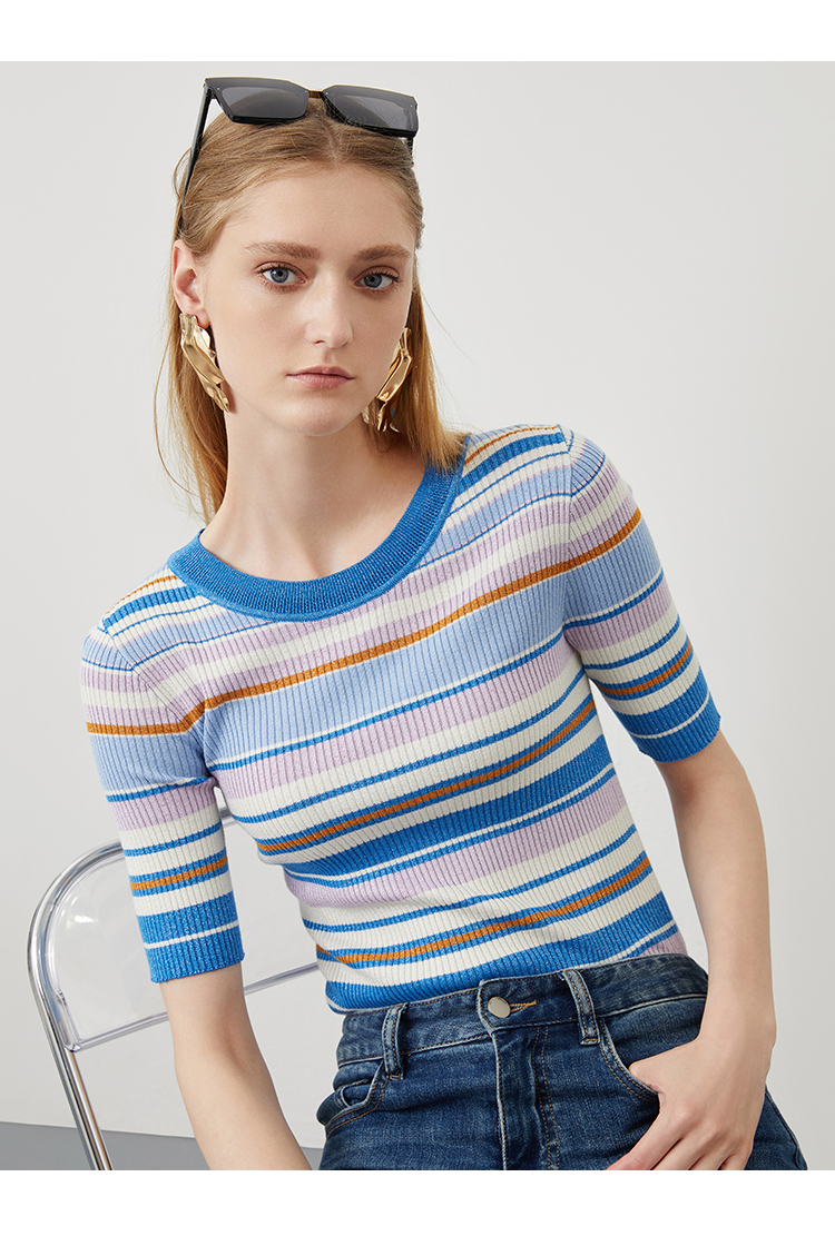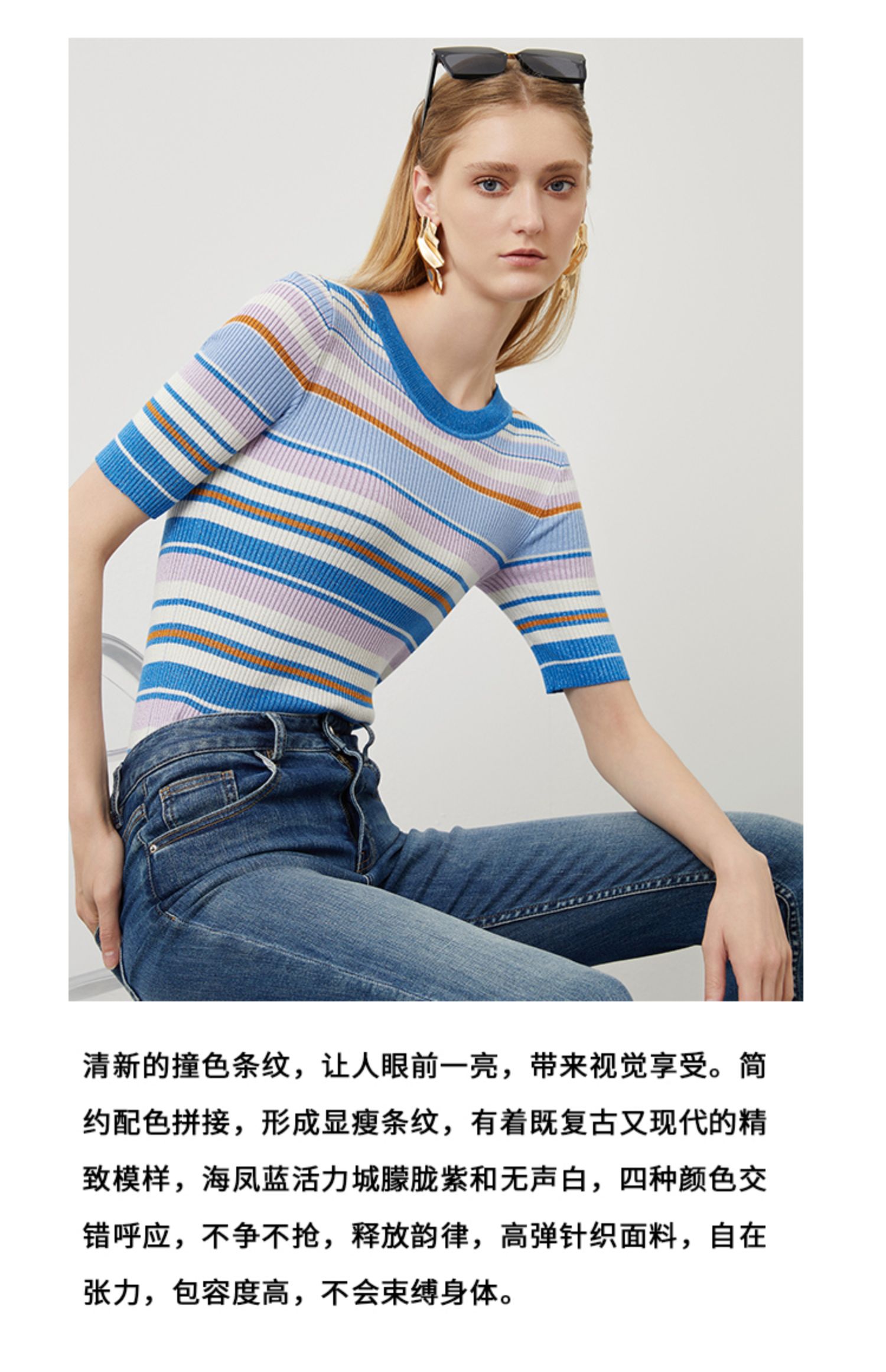 EITIE爱特爱女装春夏新品短袖圆领显瘦上衣针织衫针织T恤5701408