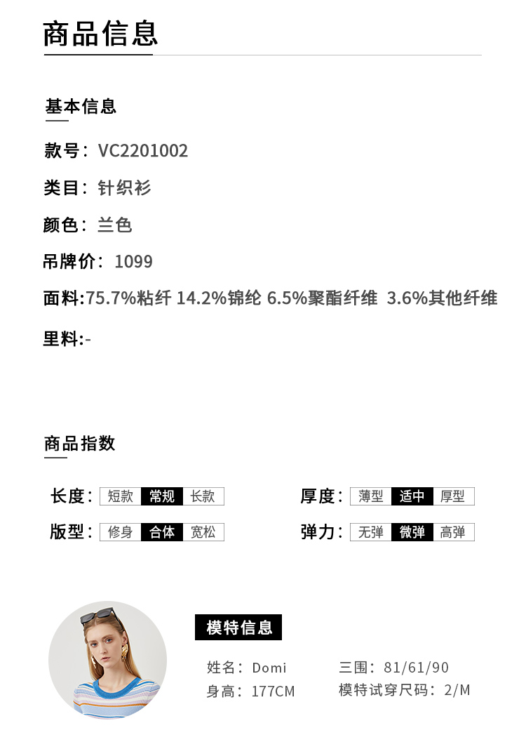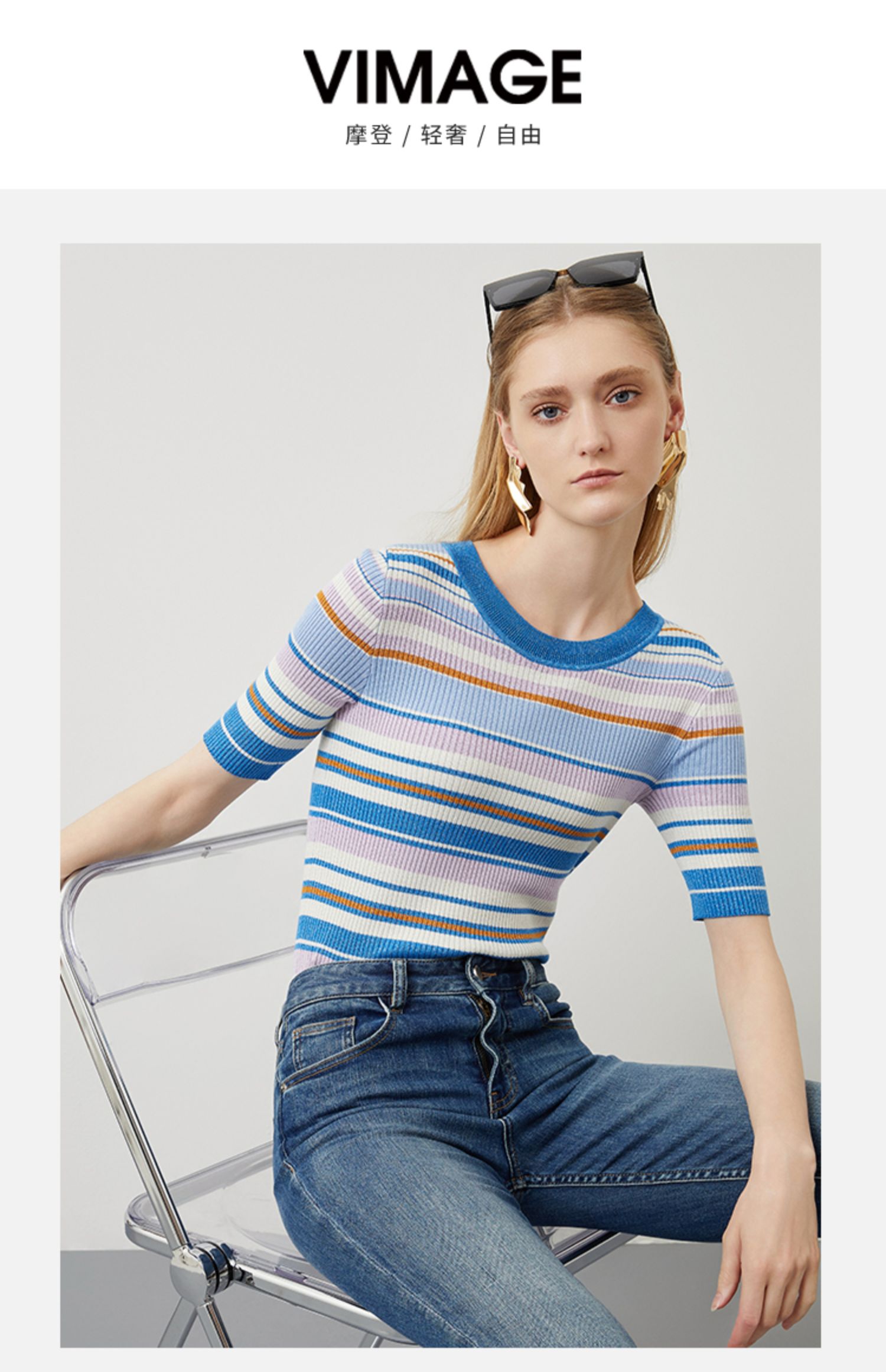 VIMAGE/纬漫纪新品撞色条纹显瘦上衣VC2201002