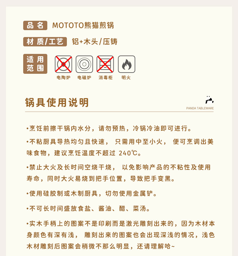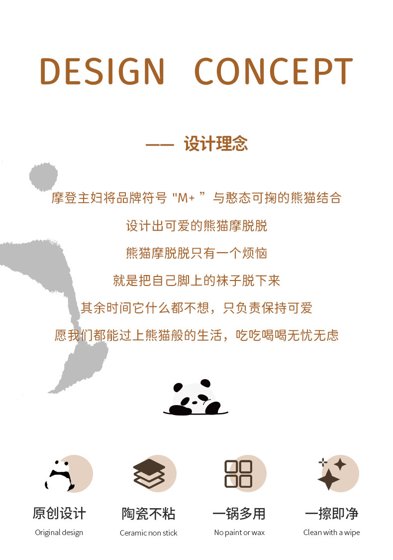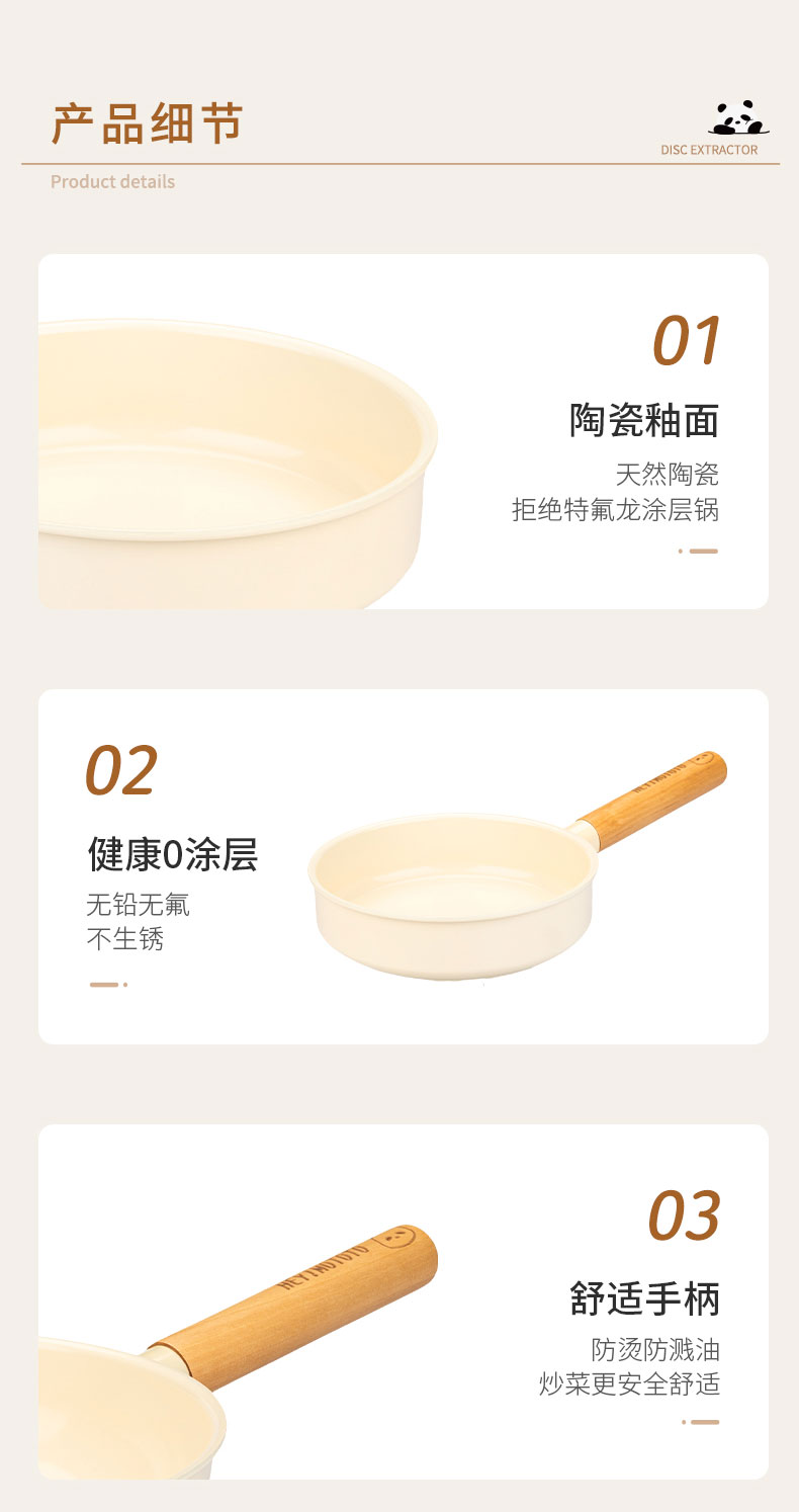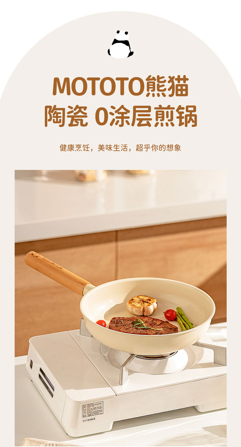 摩登主妇mototo熊猫陶瓷平底锅不粘锅煎锅家用煎饼煎蛋神器电磁炉