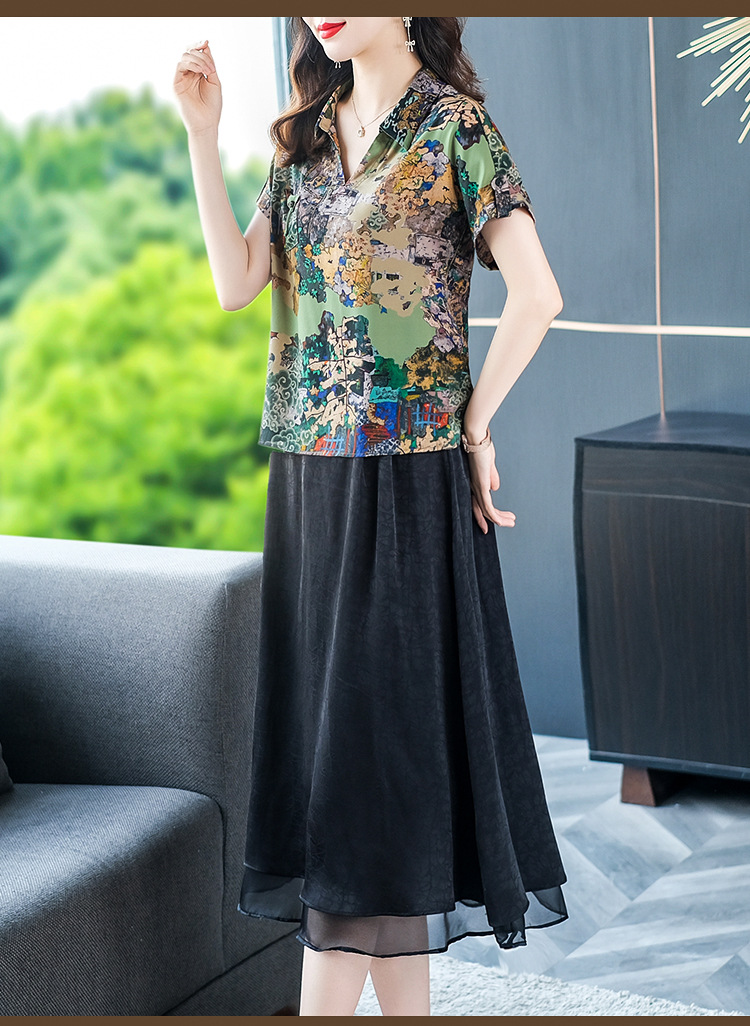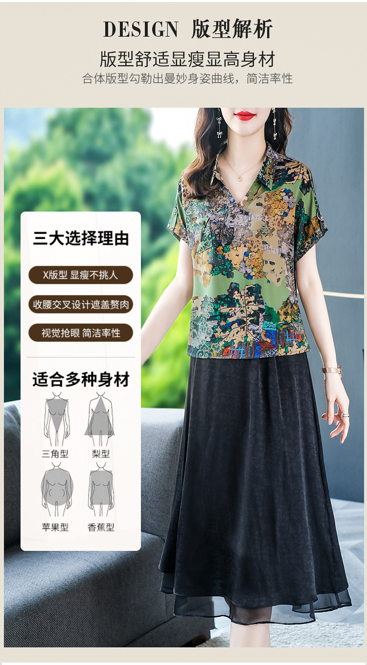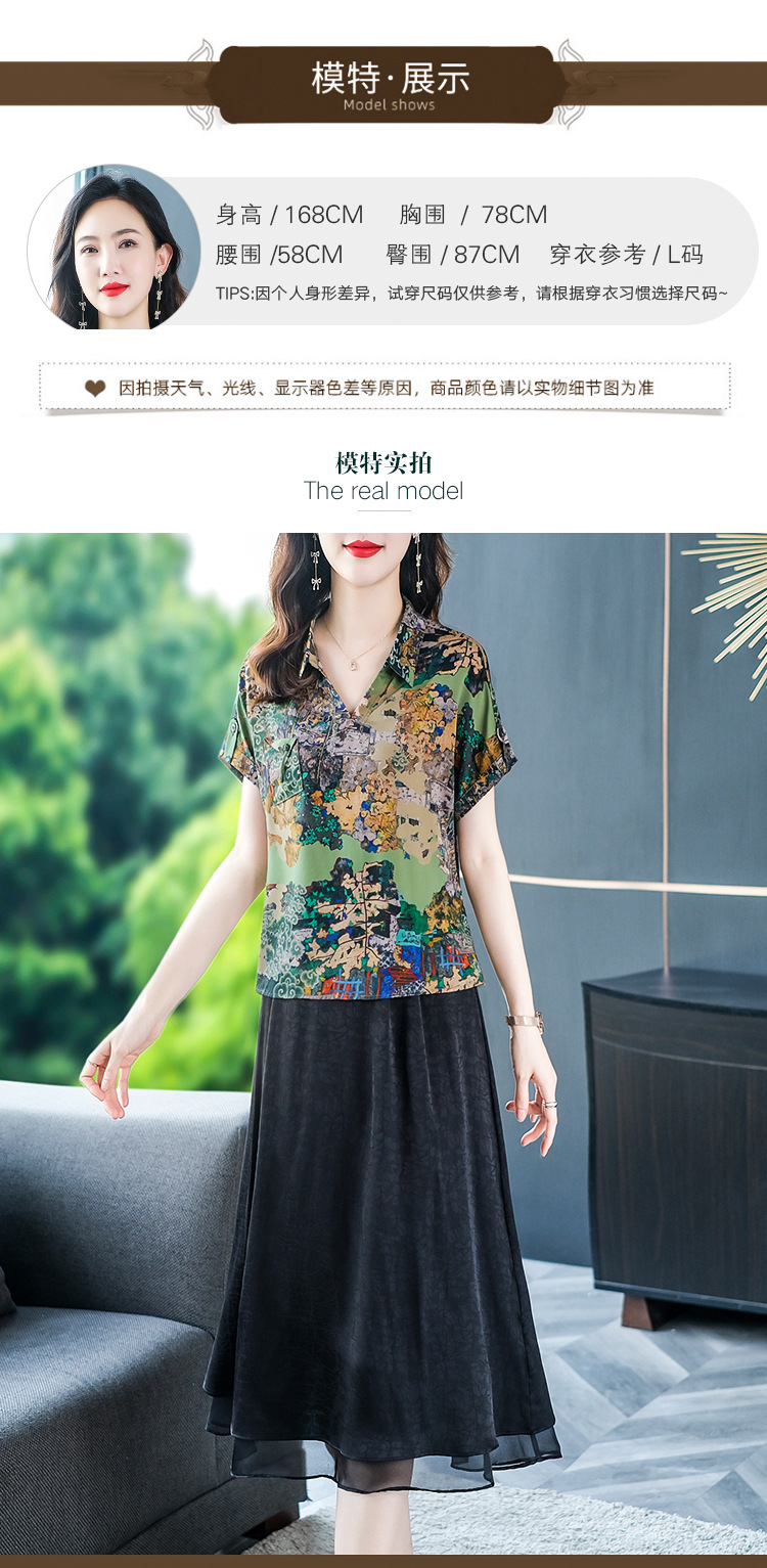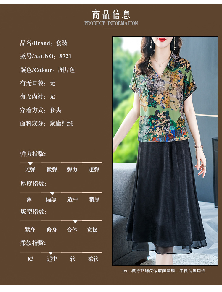 夏季洋气新款,中年妈妈短袖印花阔太太休闲大码套装时尚两件套YMR-8721