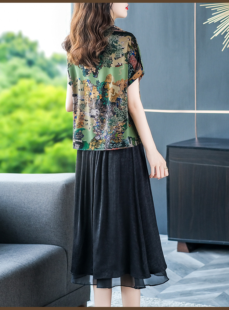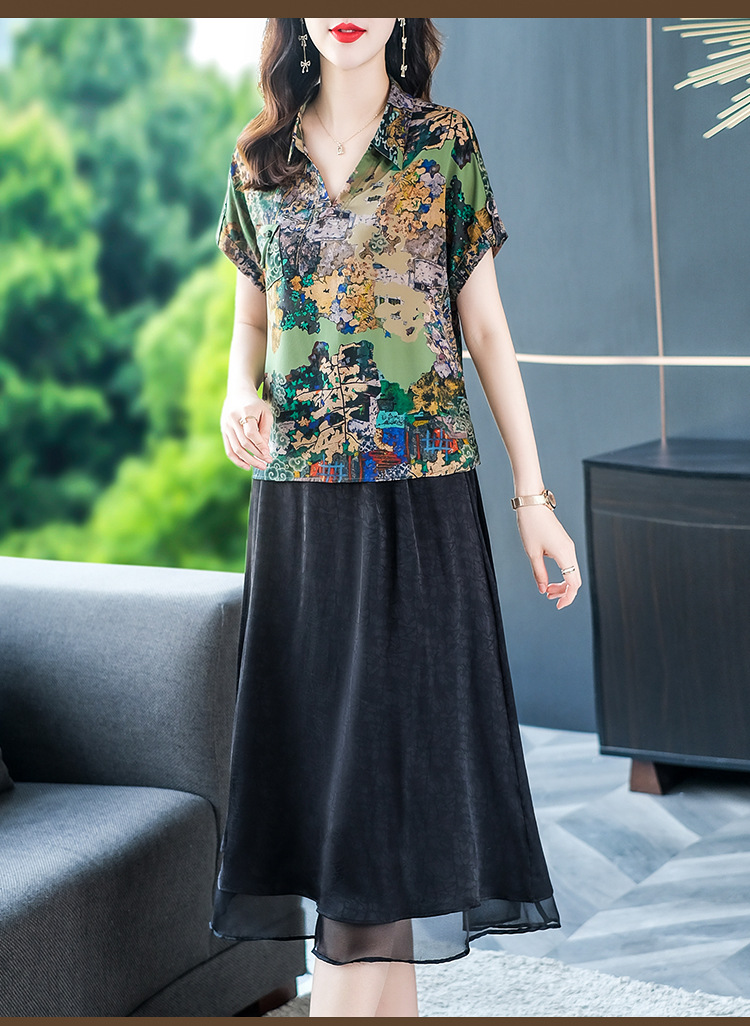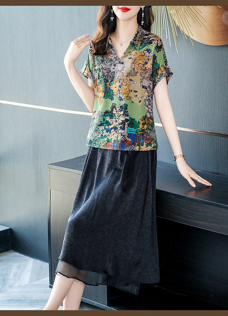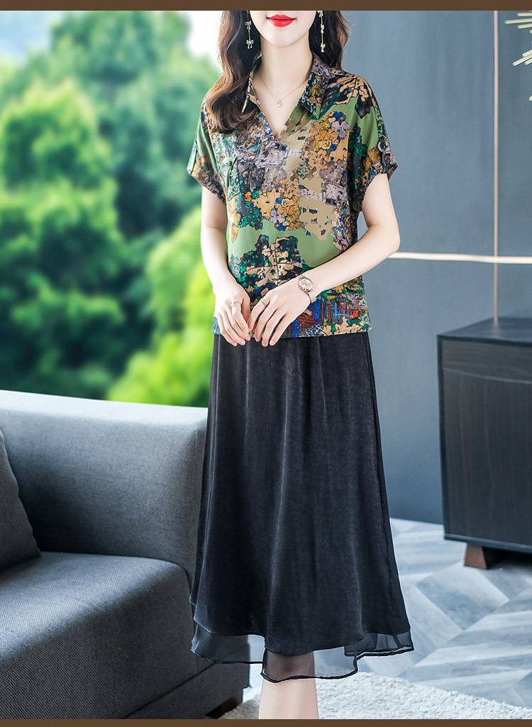 夏季洋气新款,中年妈妈短袖印花阔太太休闲大码套装时尚两件套YMR-8721