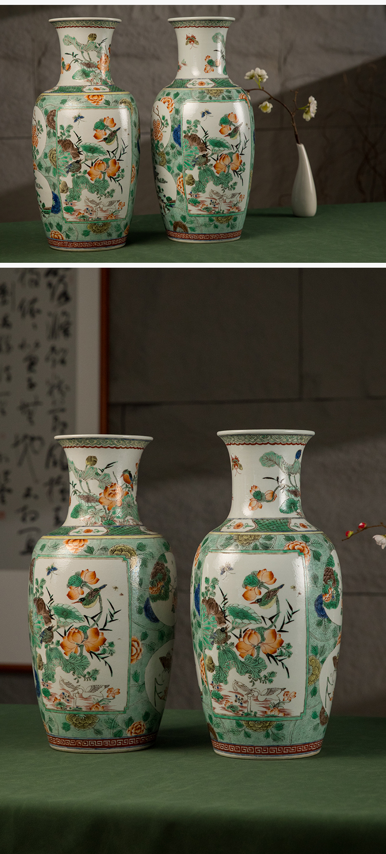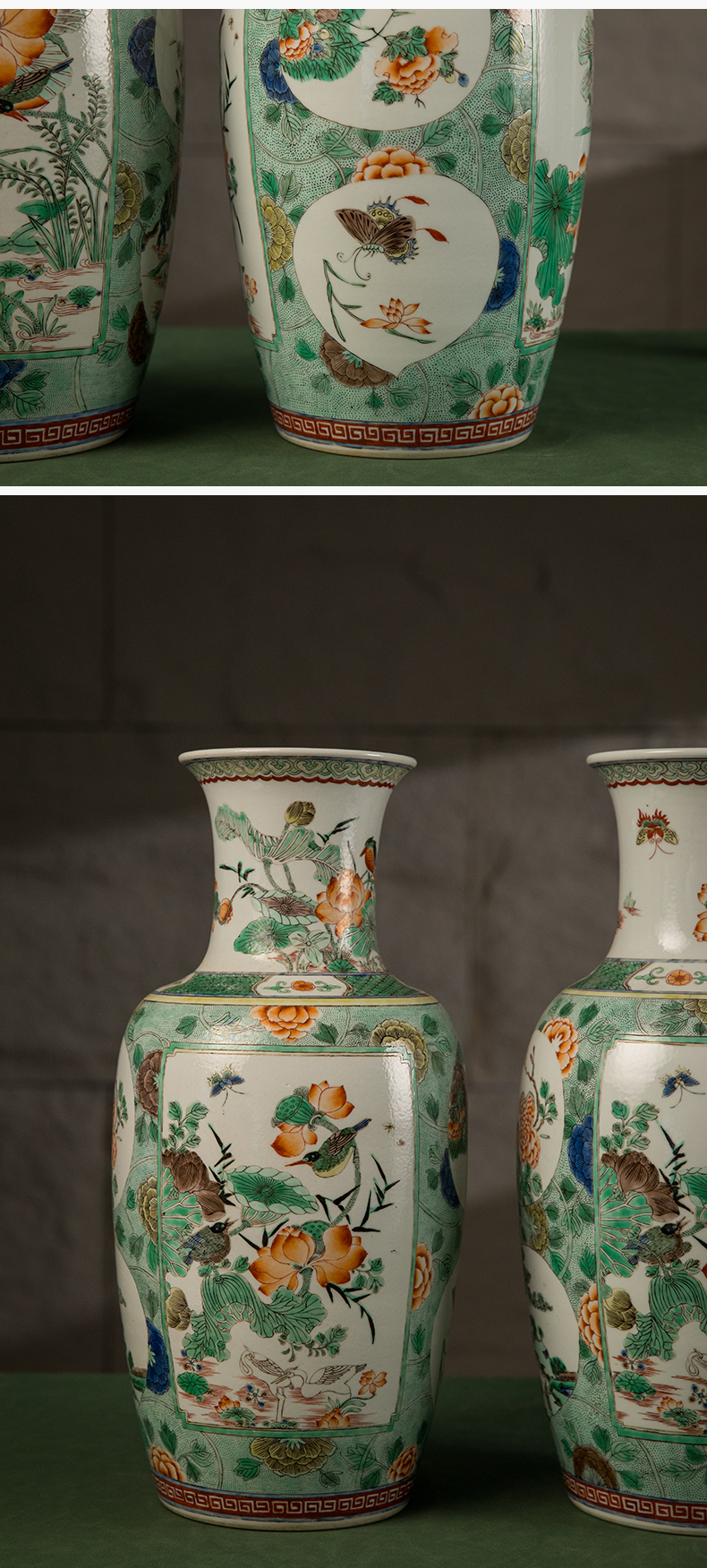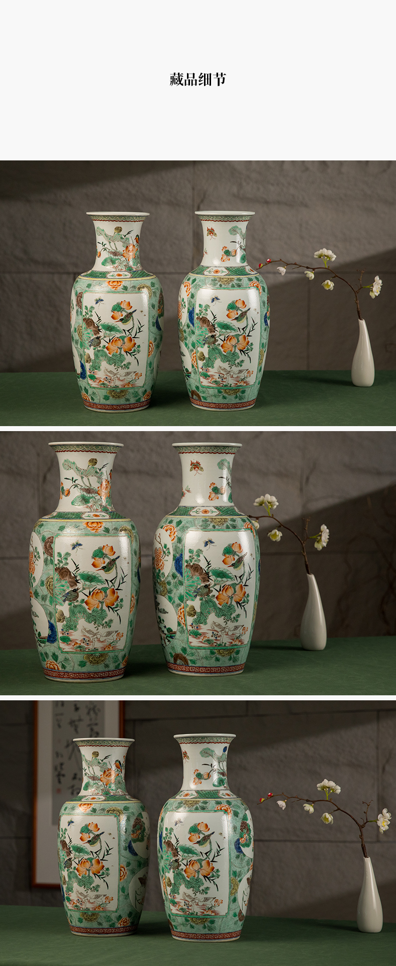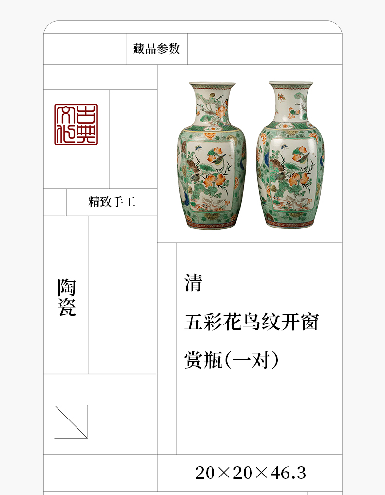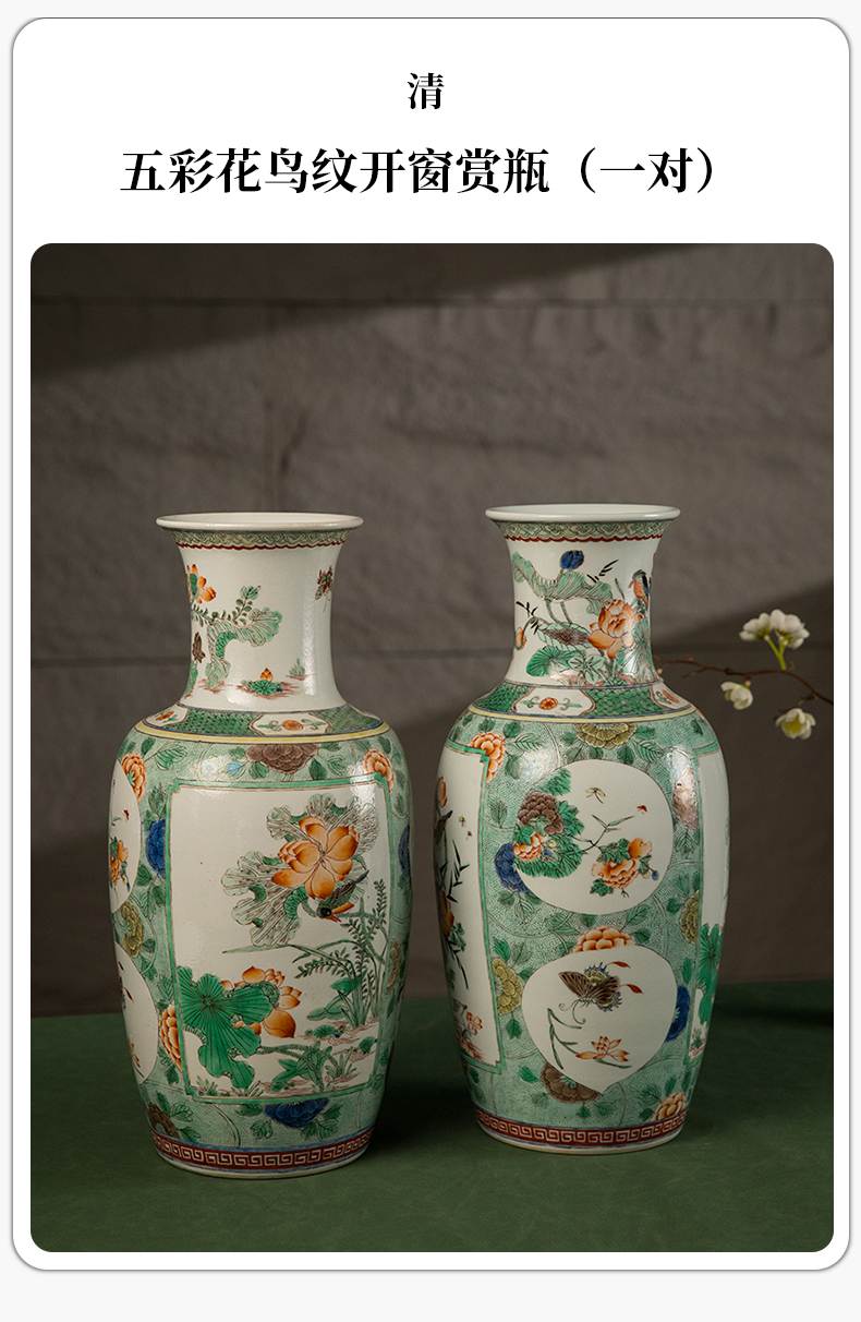 清 五彩花鸟纹开窗赏瓶(一对)