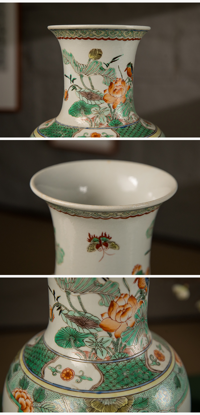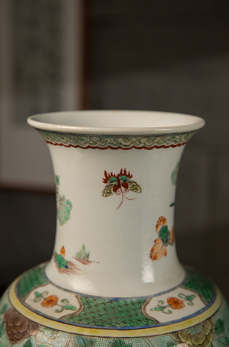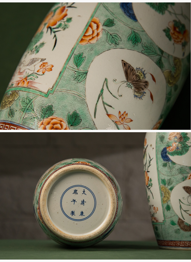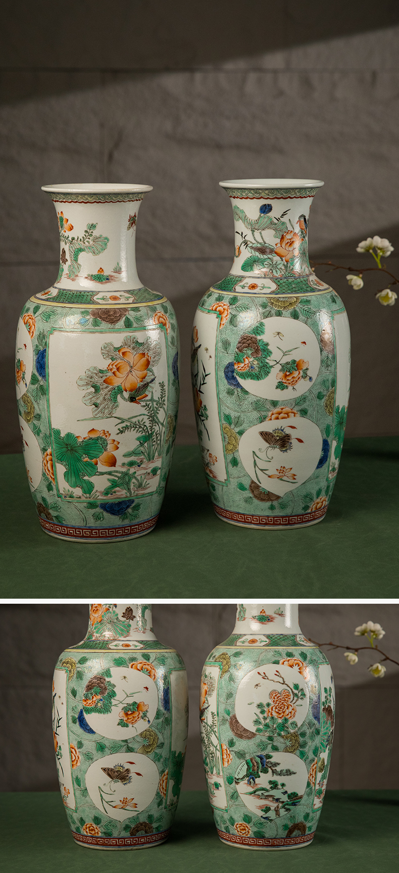 清 五彩花鸟纹开窗赏瓶(一对)
