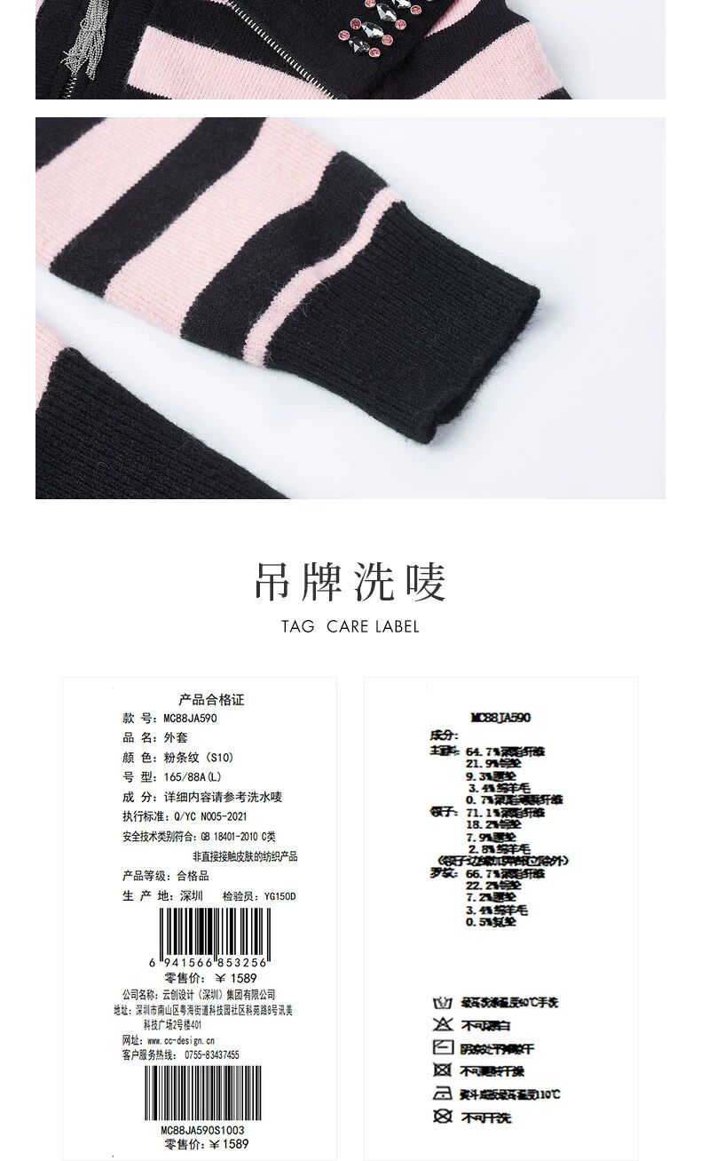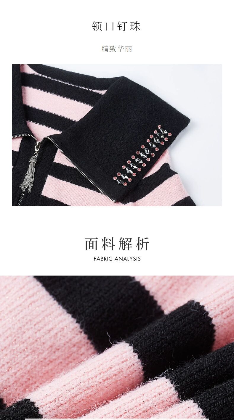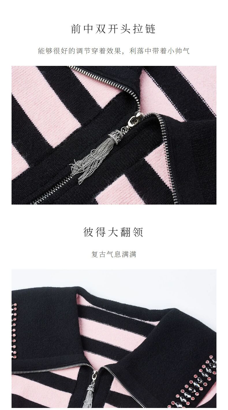 【商场同款】MAXRIENY条纹彼得大翻领针织拉链开衫秋冬修身上衣女(货号:MC88JA590)