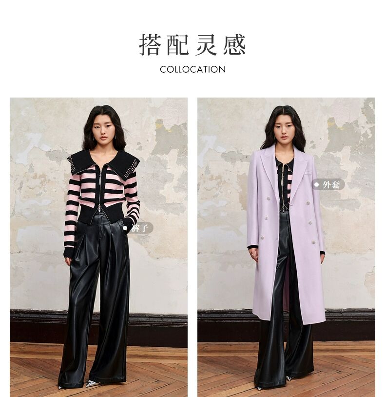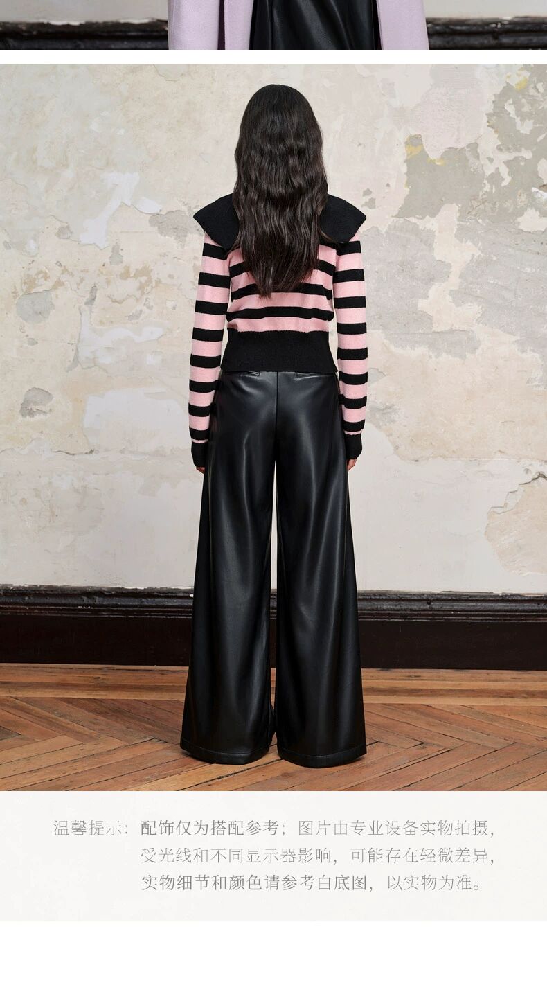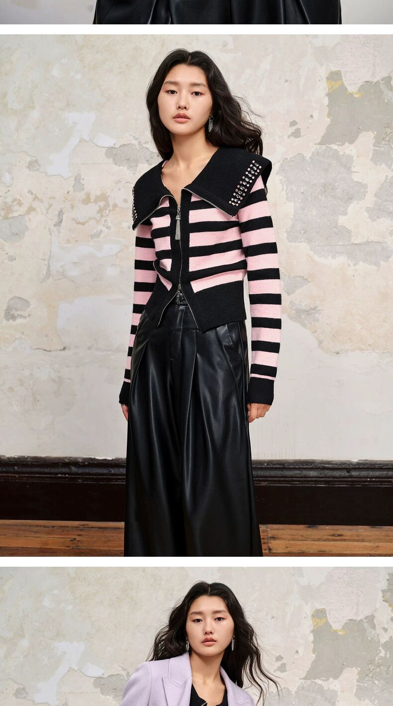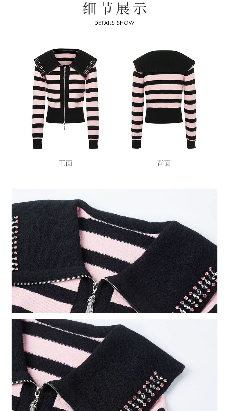 【商场同款】MAXRIENY条纹彼得大翻领针织拉链开衫秋冬修身上衣女(货号:MC88JA590)