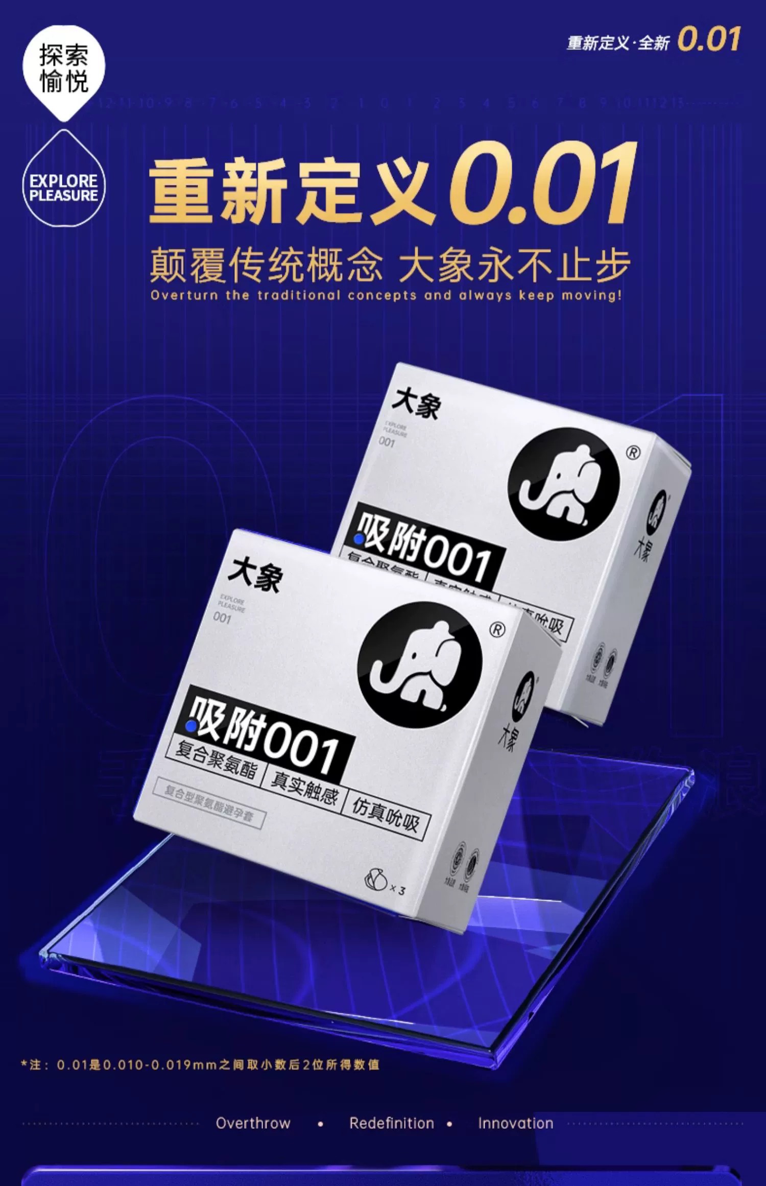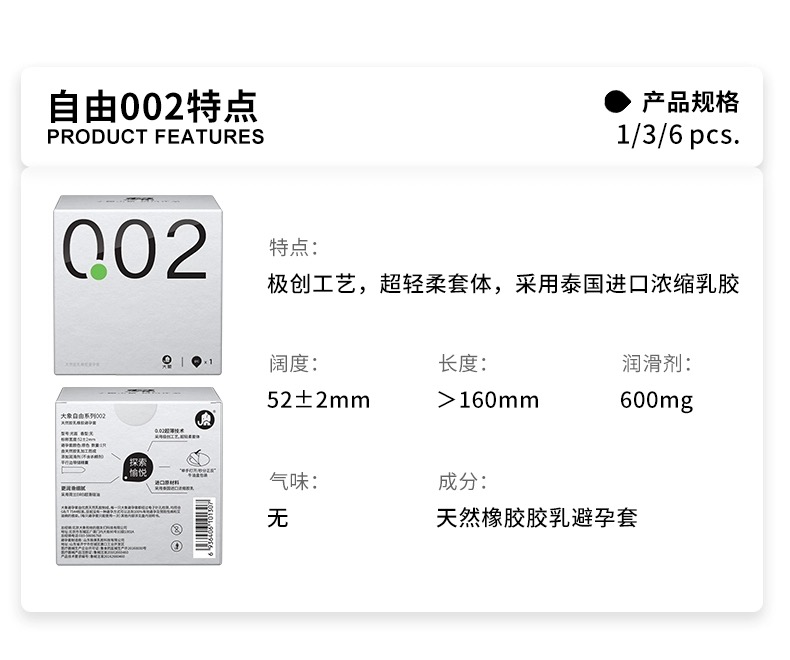 【001 002极薄 超量润滑】水溶聚氨酯自由001自由002大象001避孕套复合聚氨酯0.01(新老包装随机发)