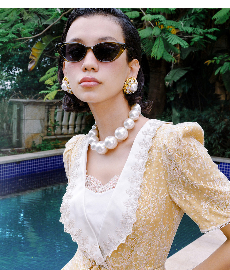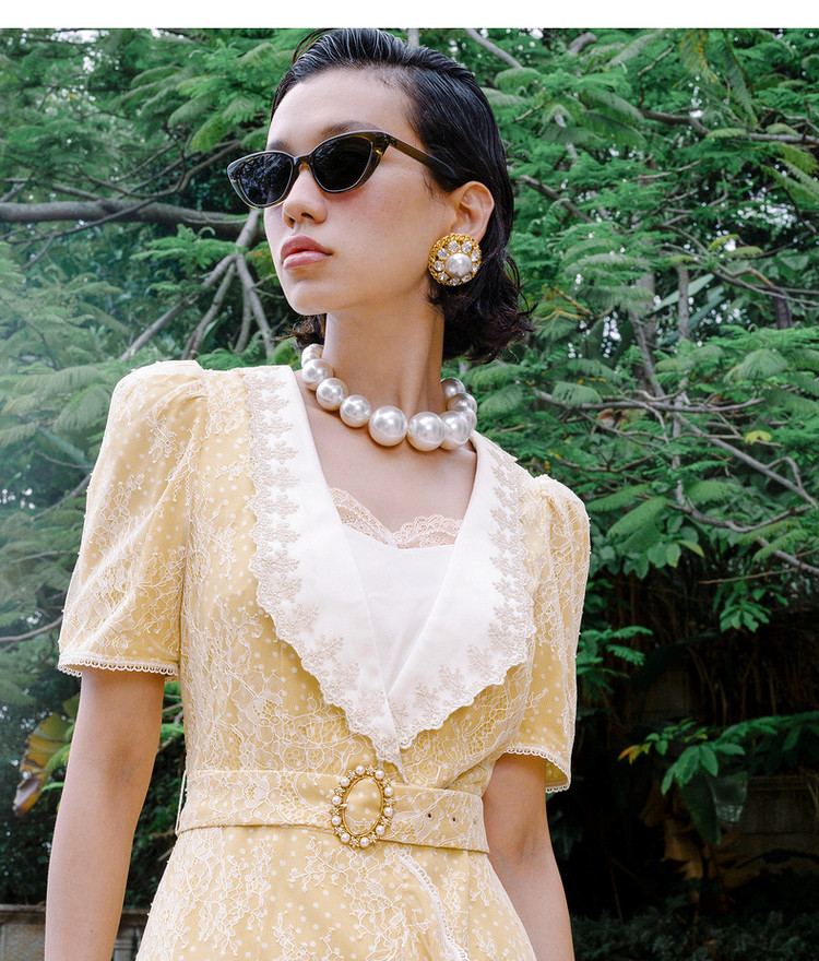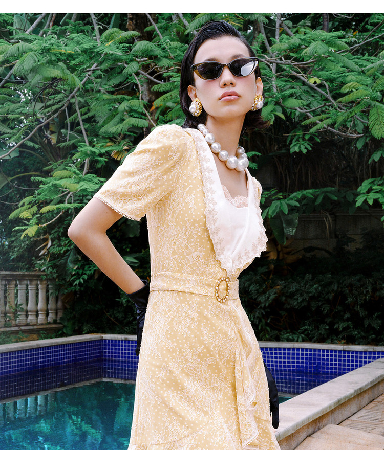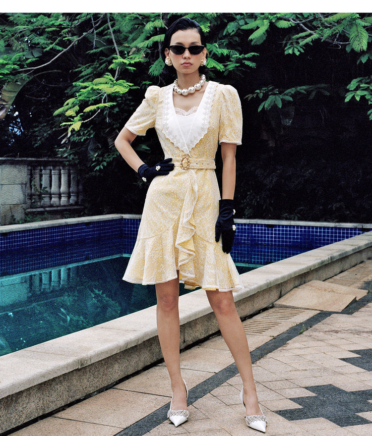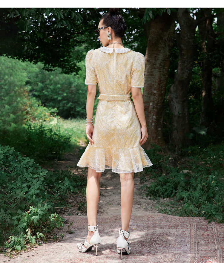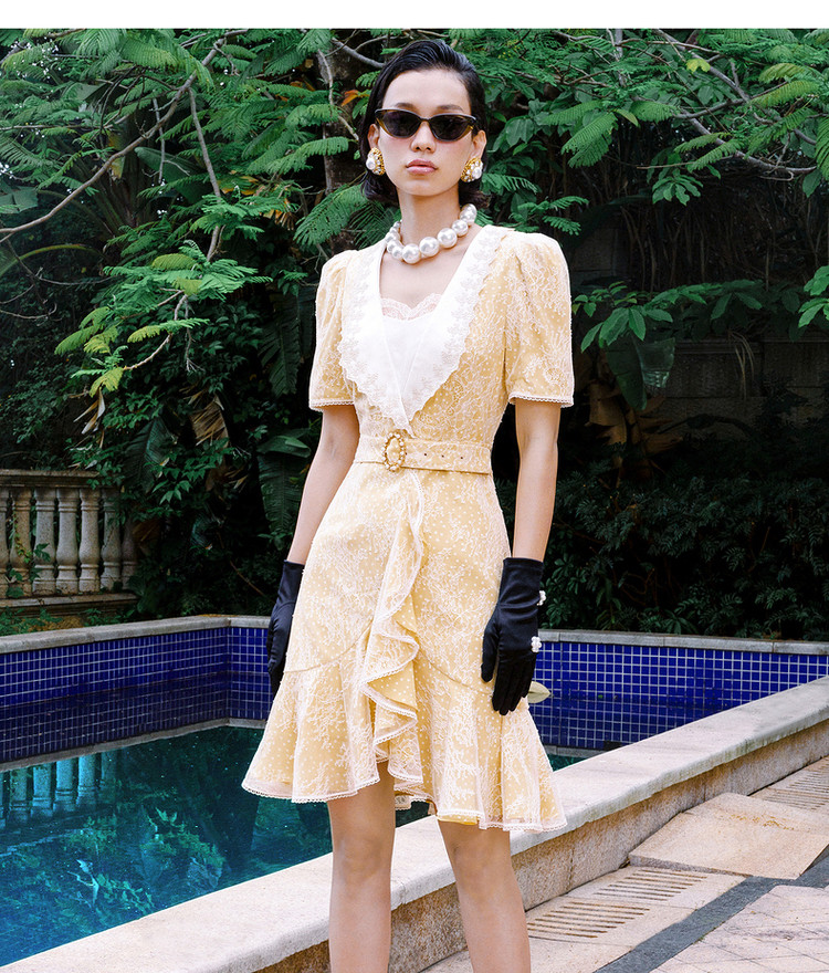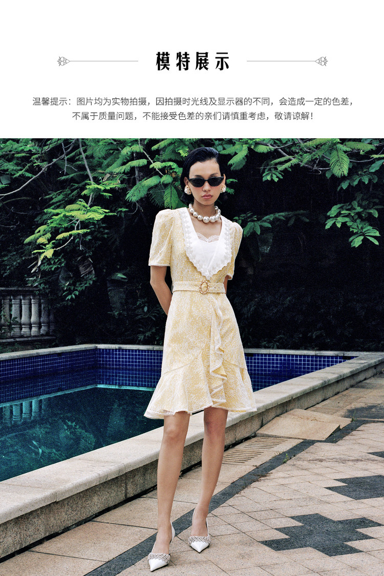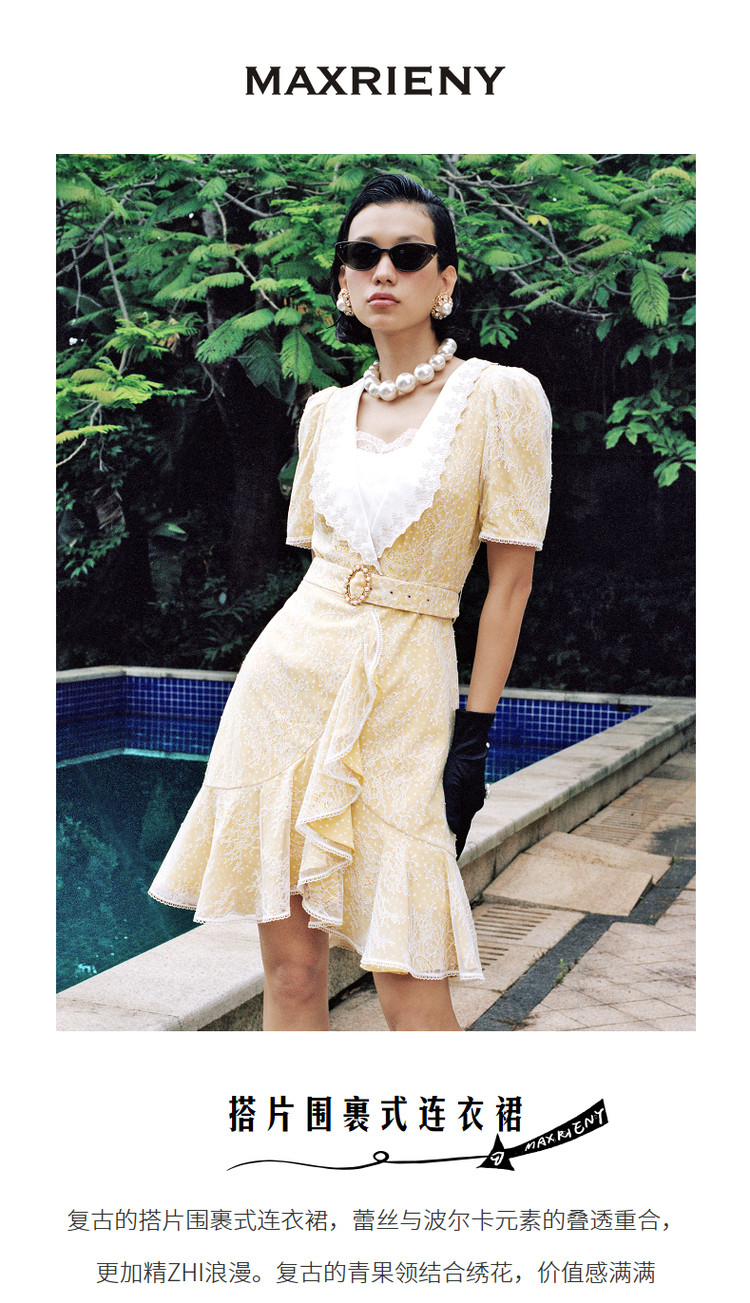 搭片围裹式复古短裙夏季蕾丝波点连MC87DR338