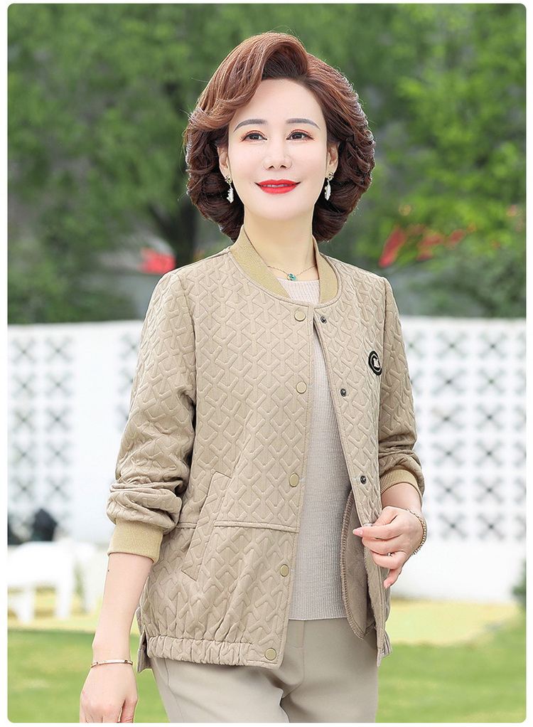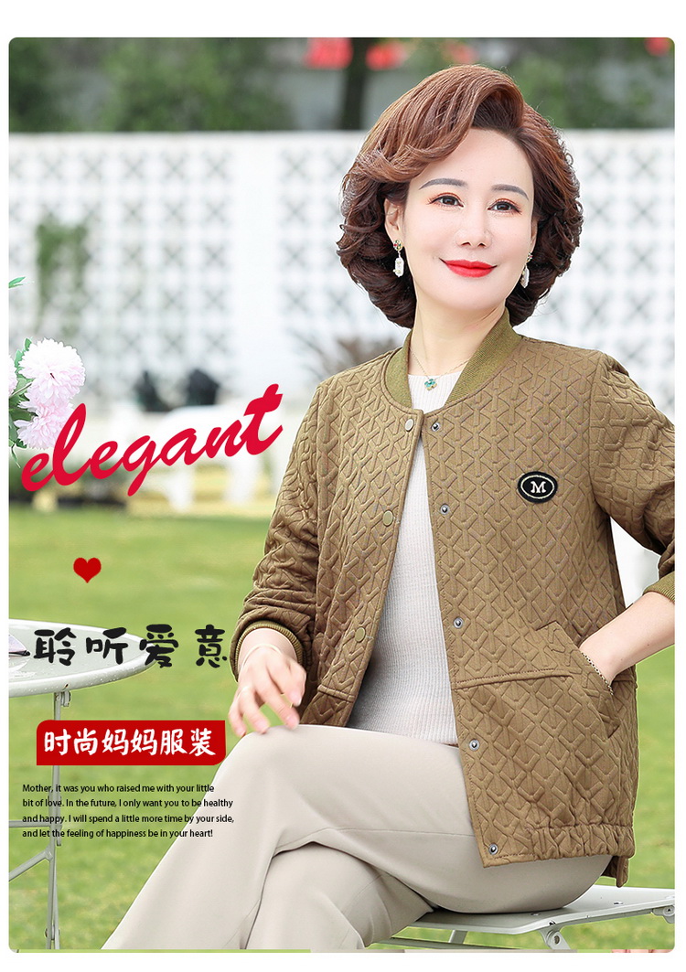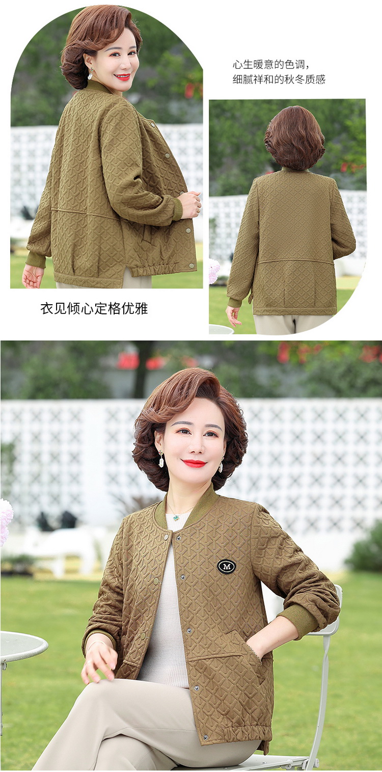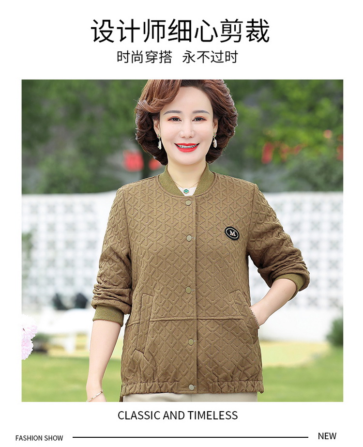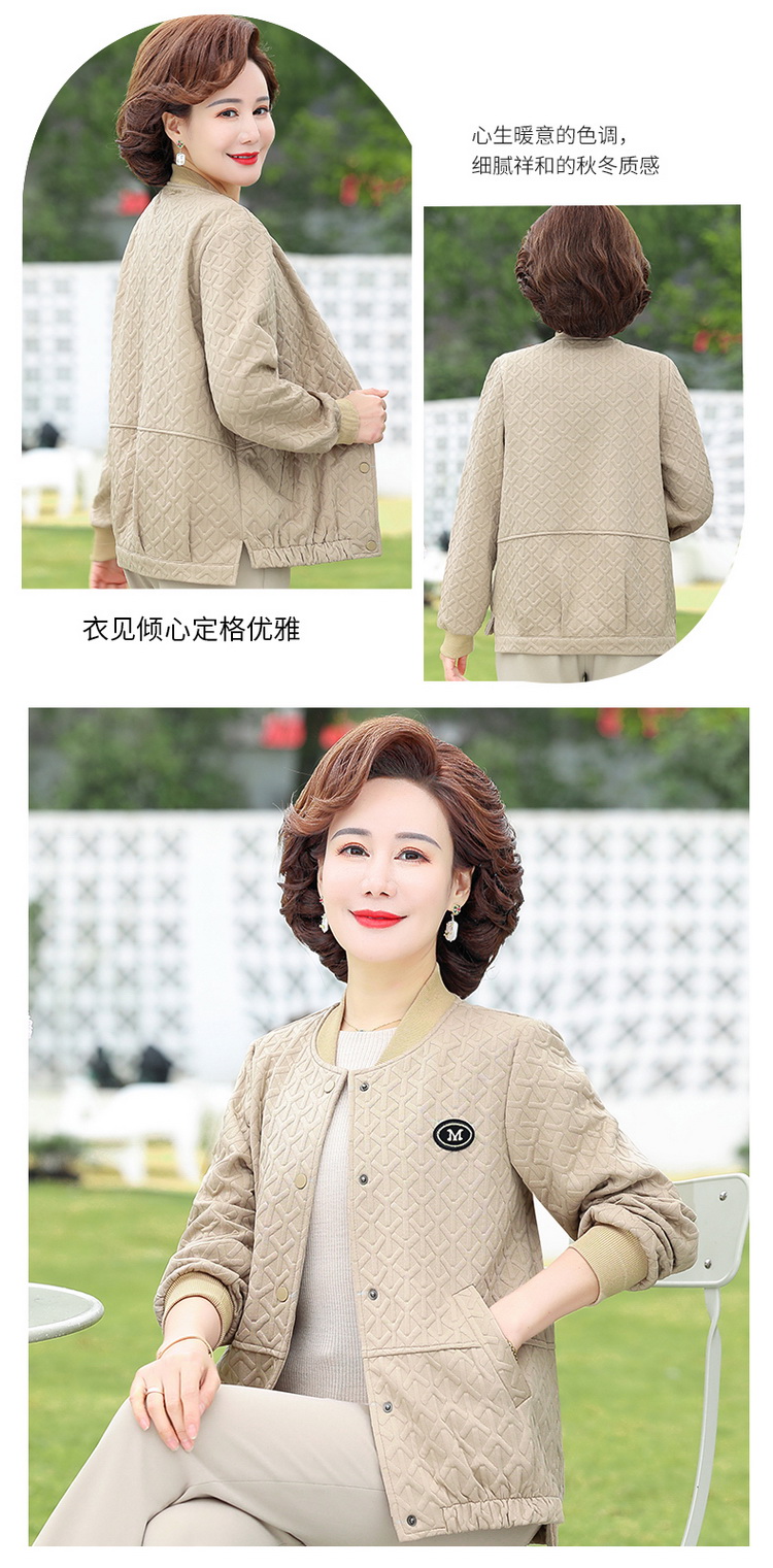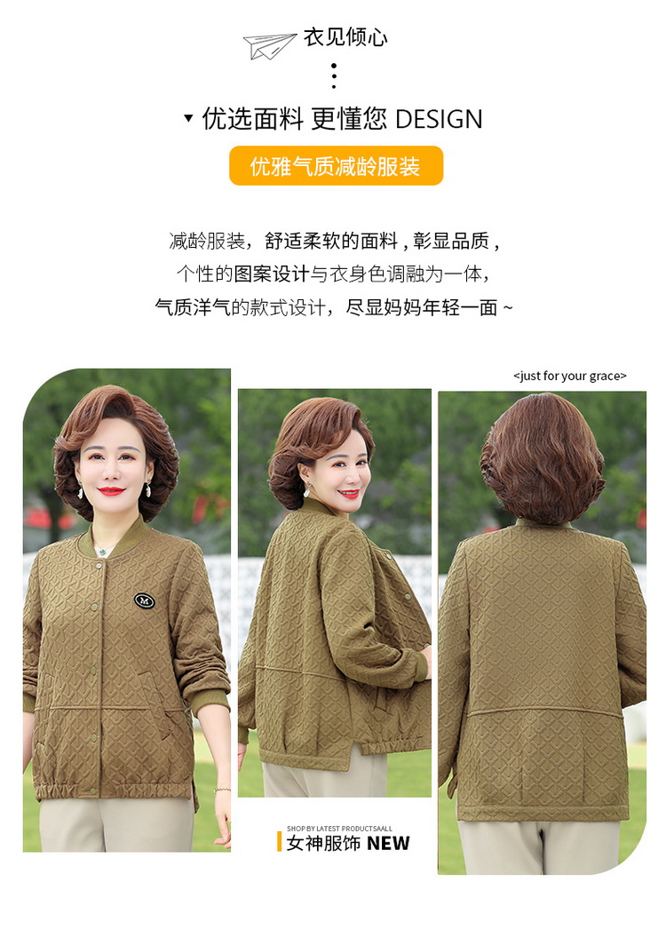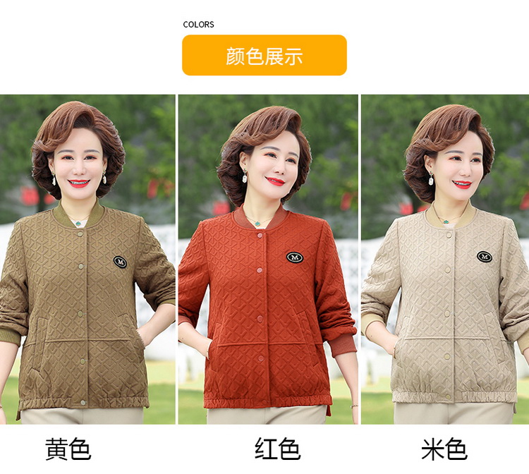 QC2303中年妈妈春秋装短款立领夹克上衣中老年女春装休闲大码棒球服外套