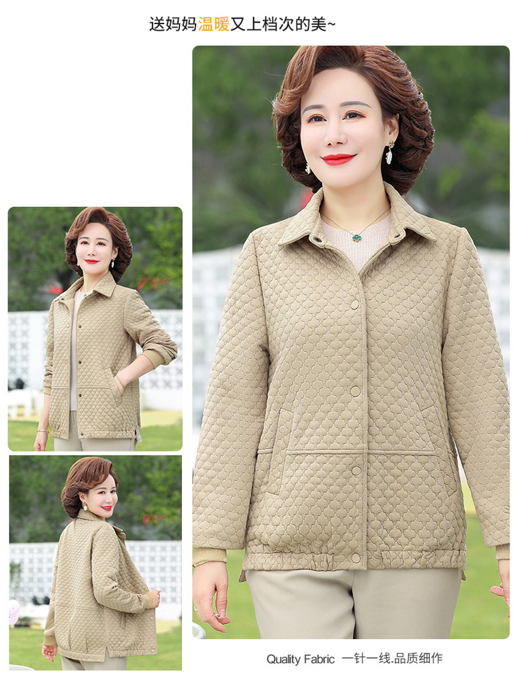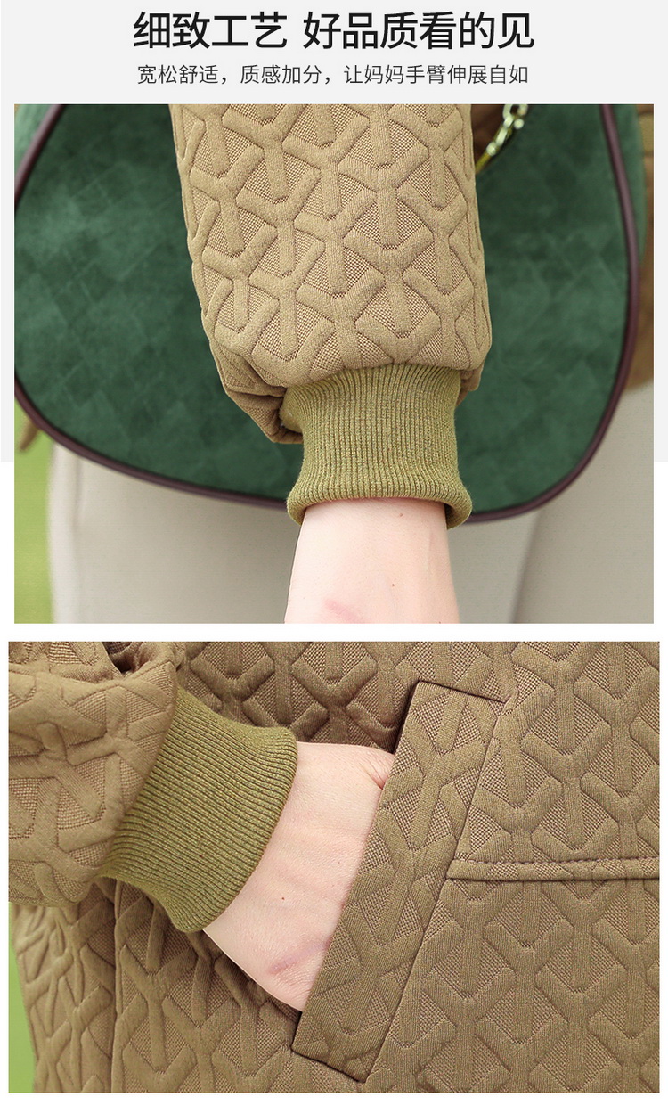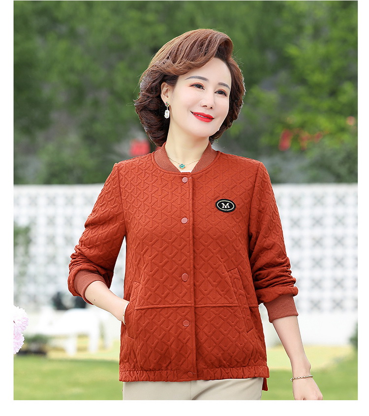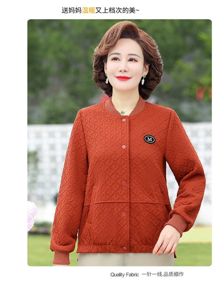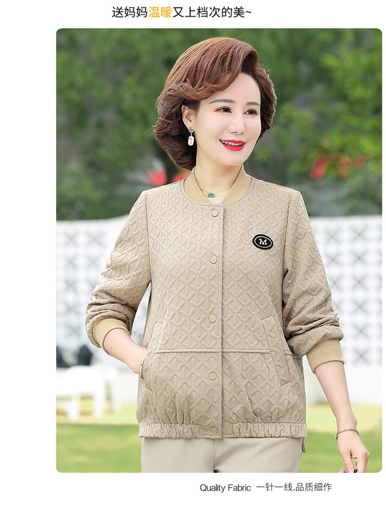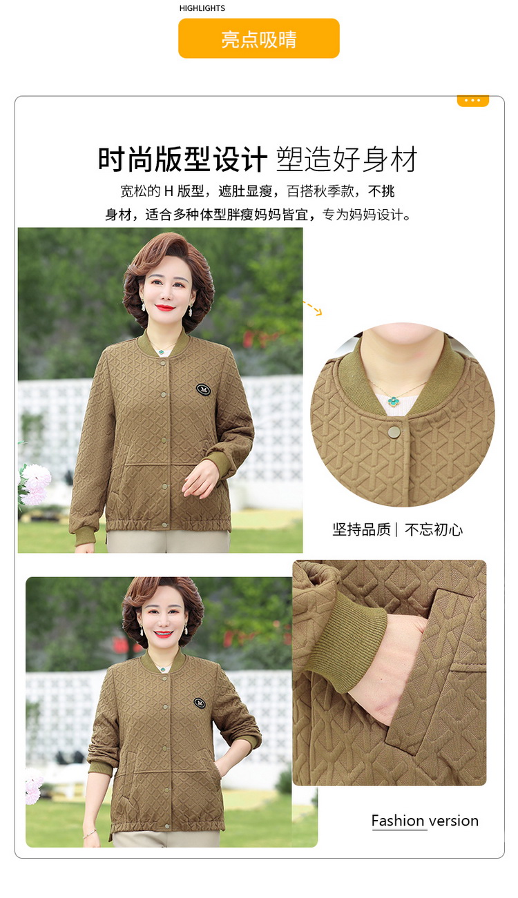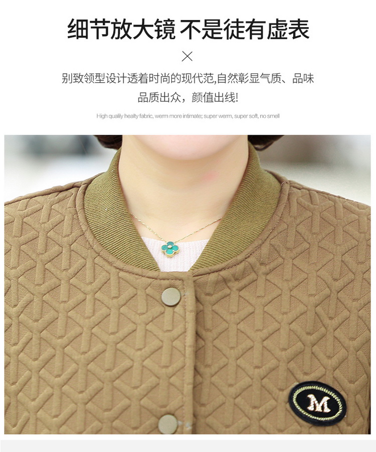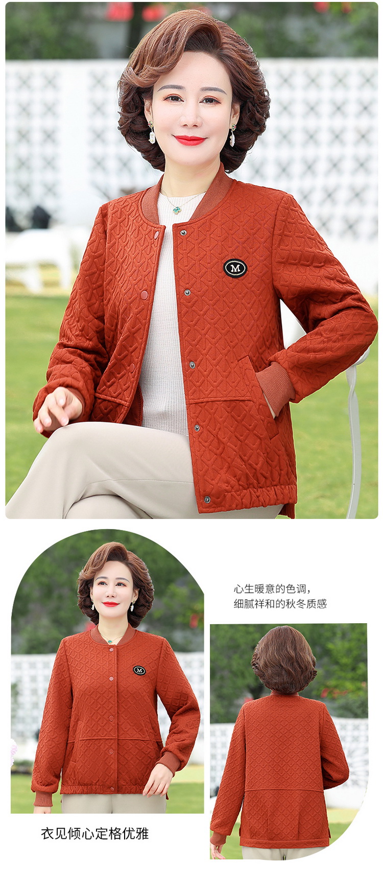 QC2303中年妈妈春秋装短款立领夹克上衣中老年女春装休闲大码棒球服外套