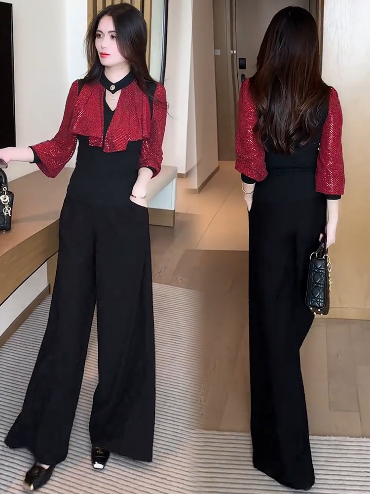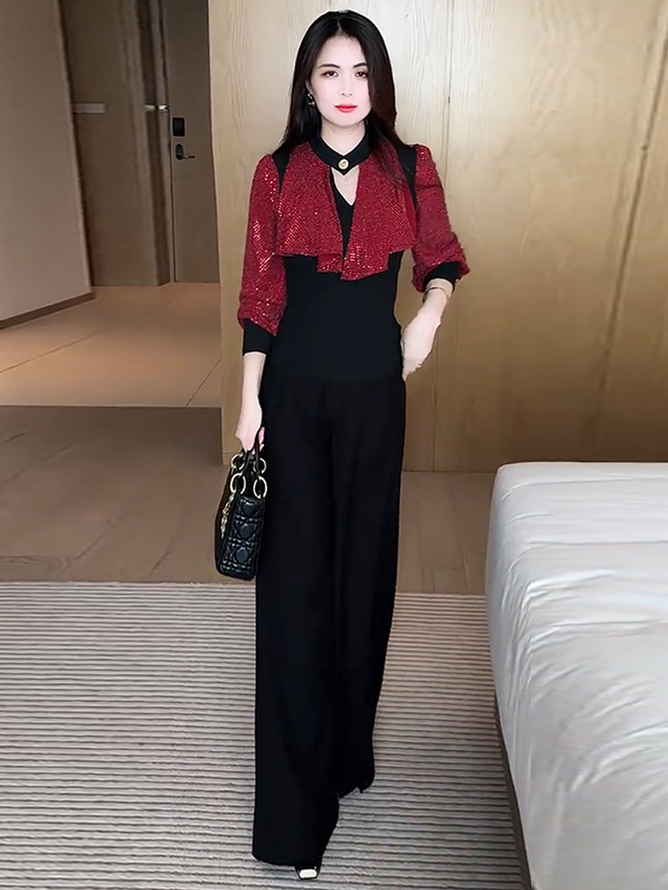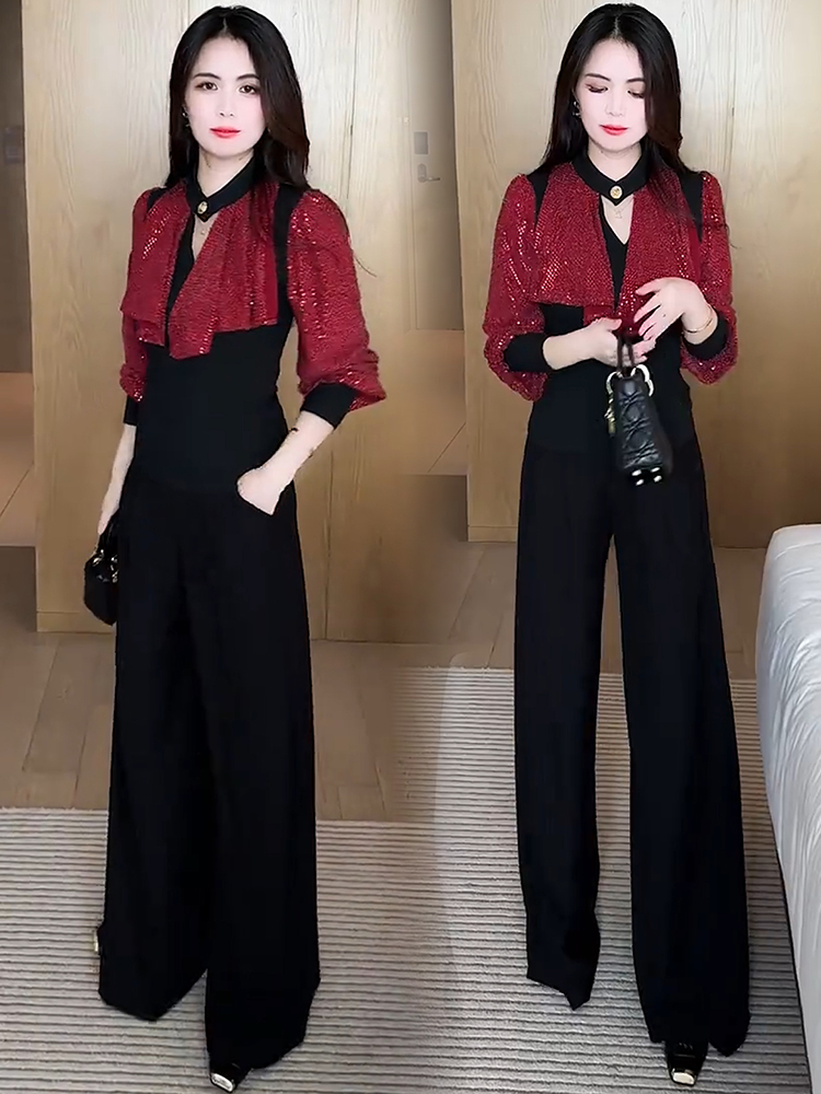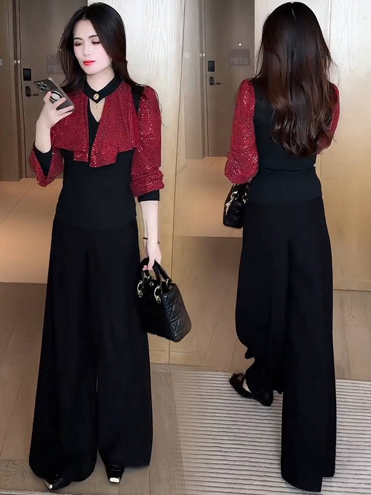 时尚套装女2025秋季新款时髦洋气显瘦长袖打底衫阔腿裤气质两件套