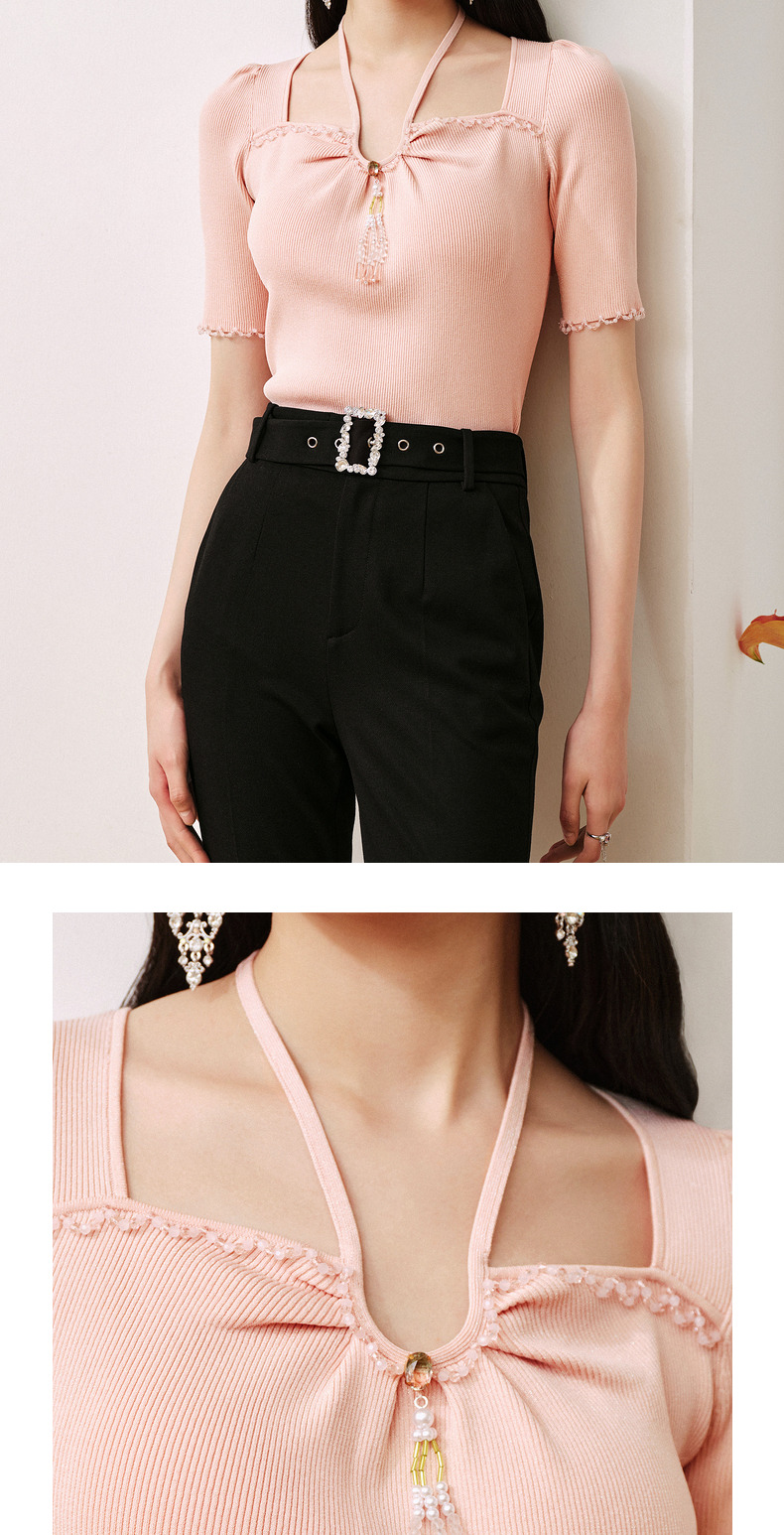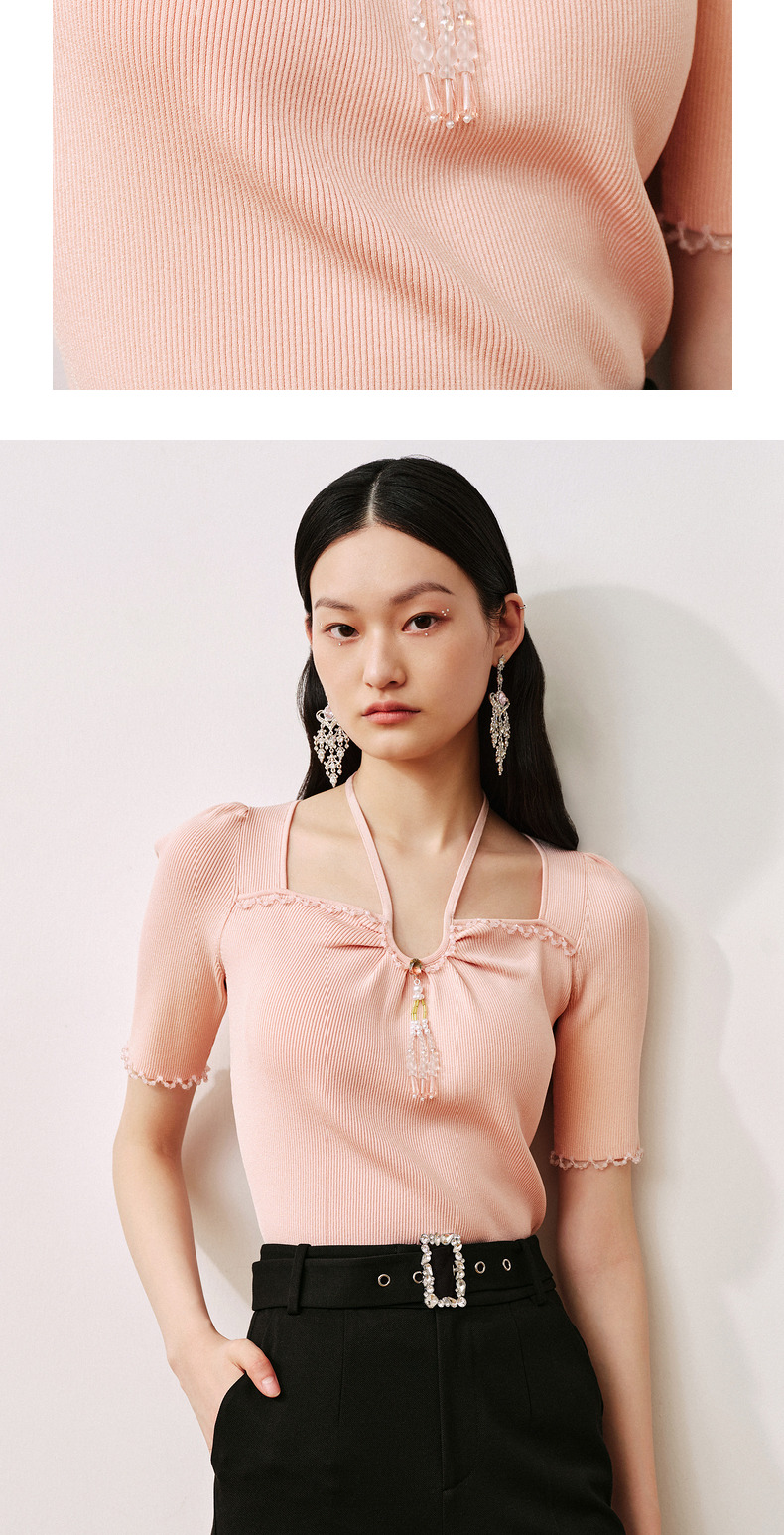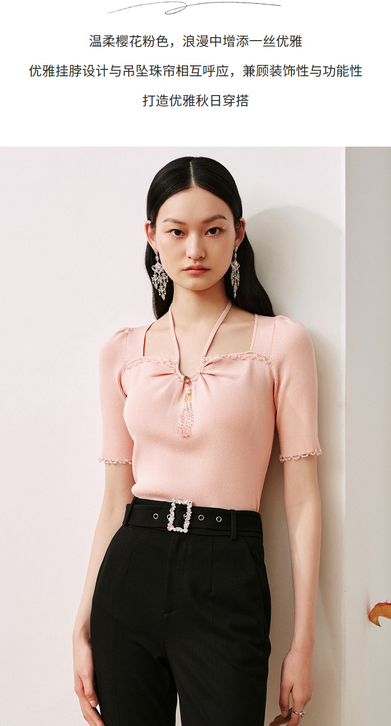 MAXRIENY甜美日系套头针织吊带截短挂脖小衫(货号:MC88SW501)