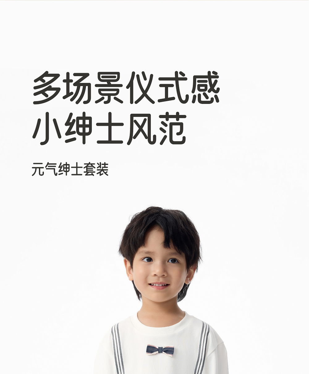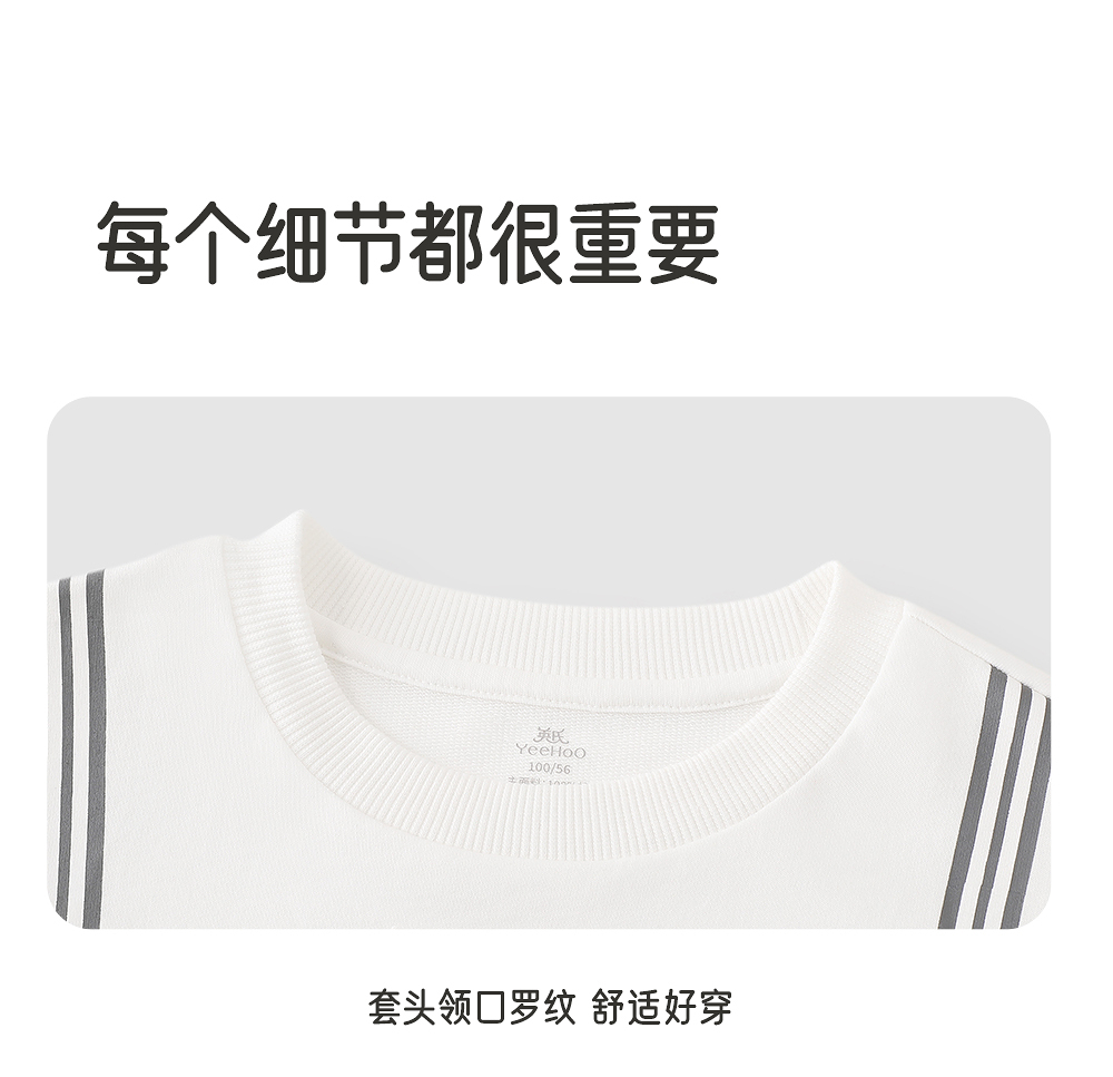 英氏儿童套装衣服秋季新款休闲男童圆领卫衣条纹休闲裤宝宝两件套