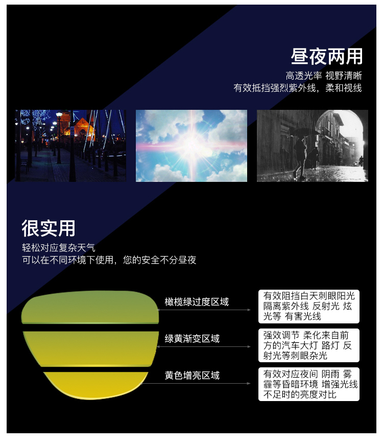 【日夜两用偏光眼镜】 夜间行车更安全 墨镜