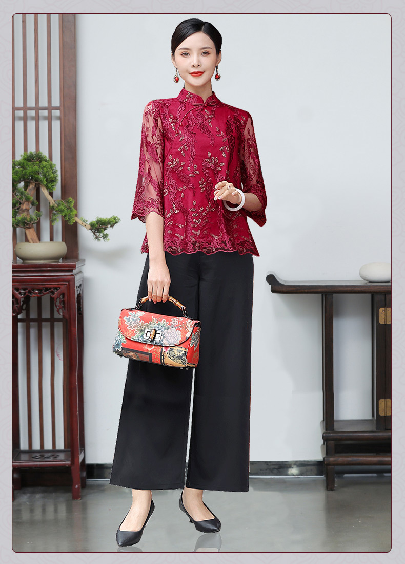改良刺绣旗袍唐装中老年中国风妈妈婚宴礼服套装HH2519