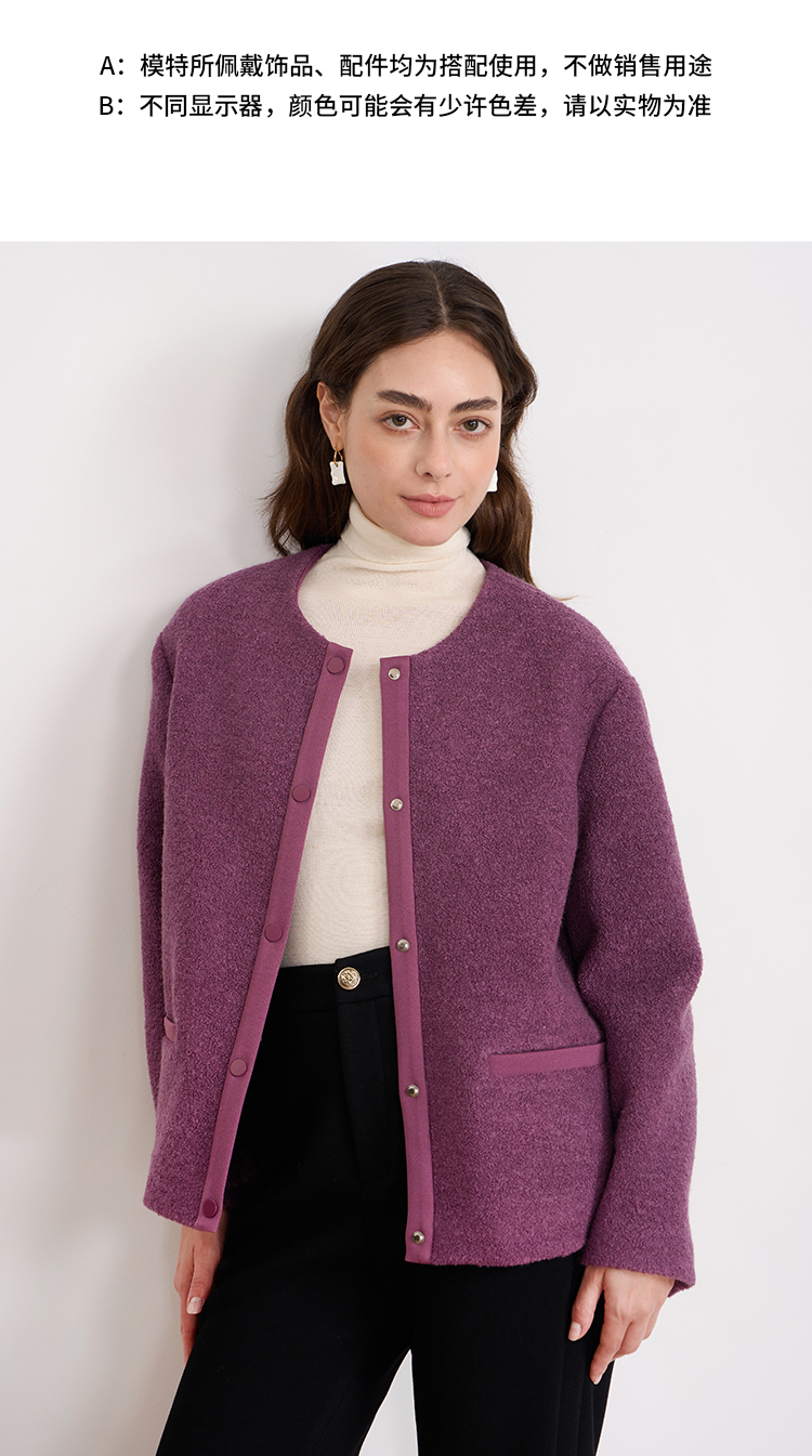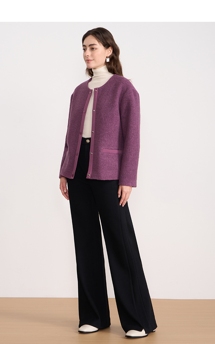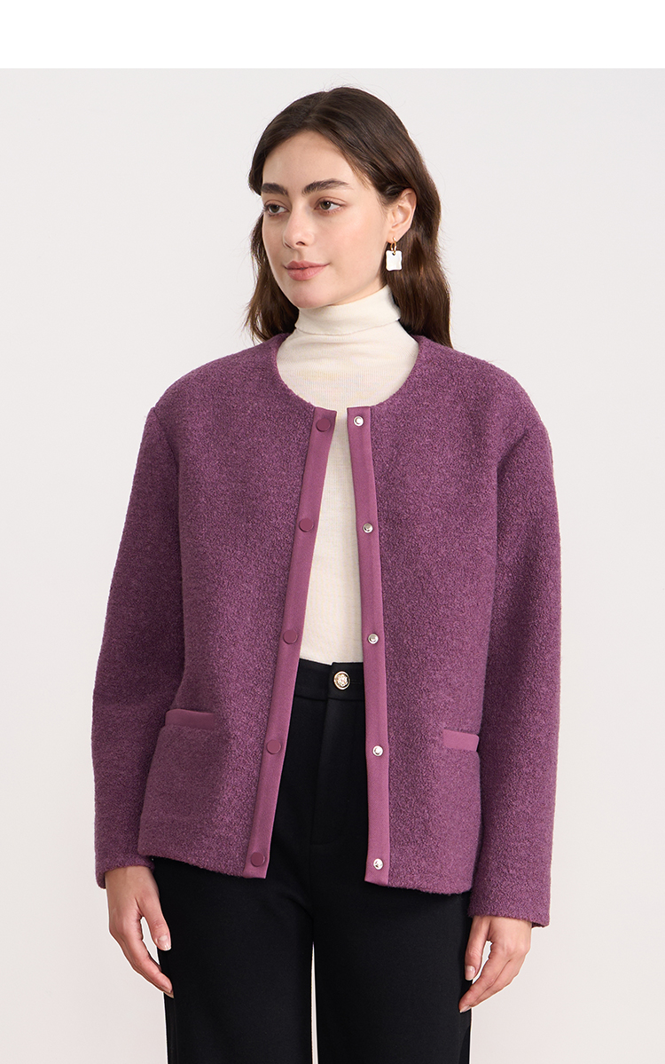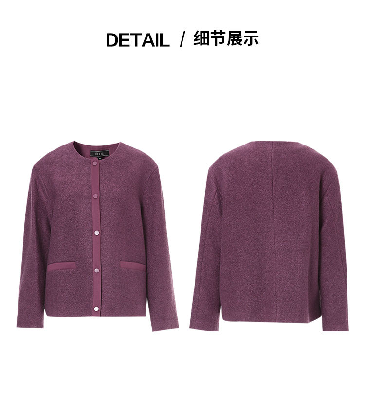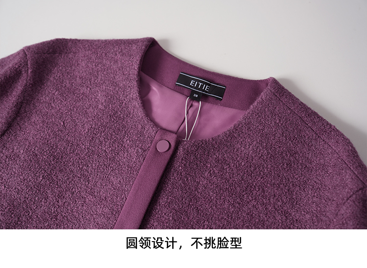 EITIE爱特爱时尚复古紫色单排扣短款宽松毛呢外套2025秋冬新款D2503915