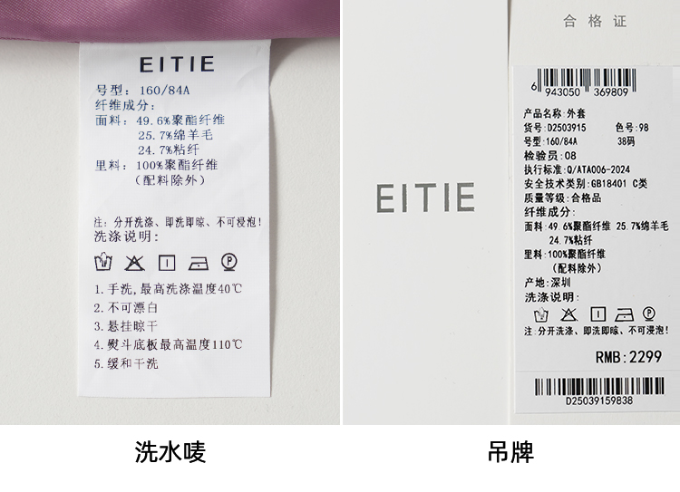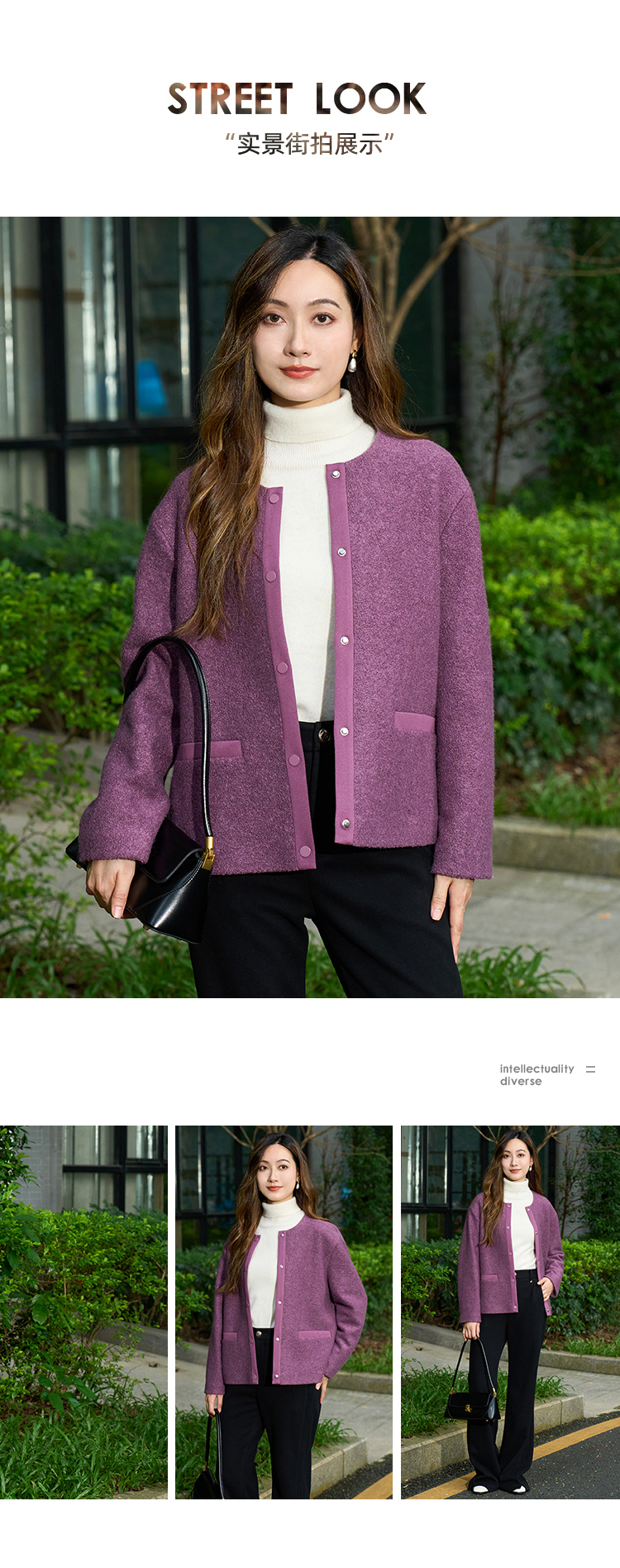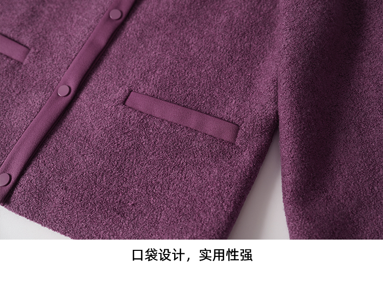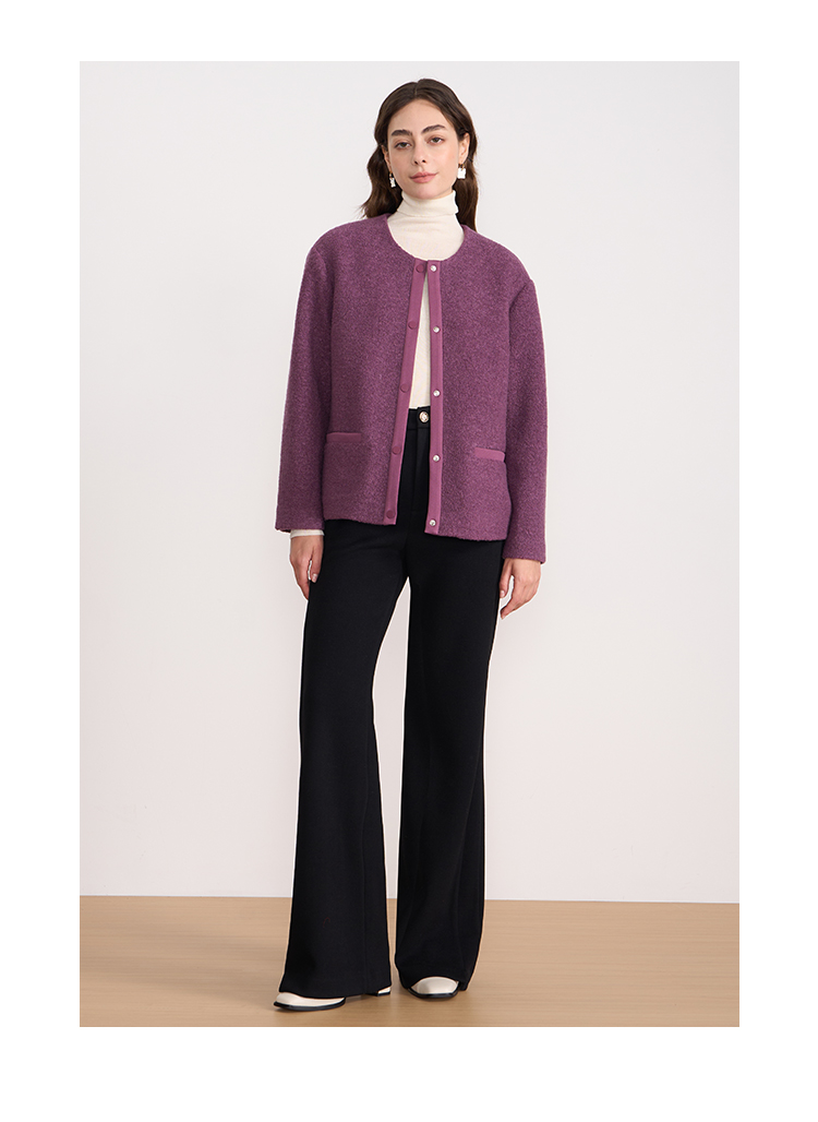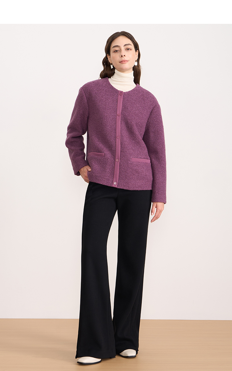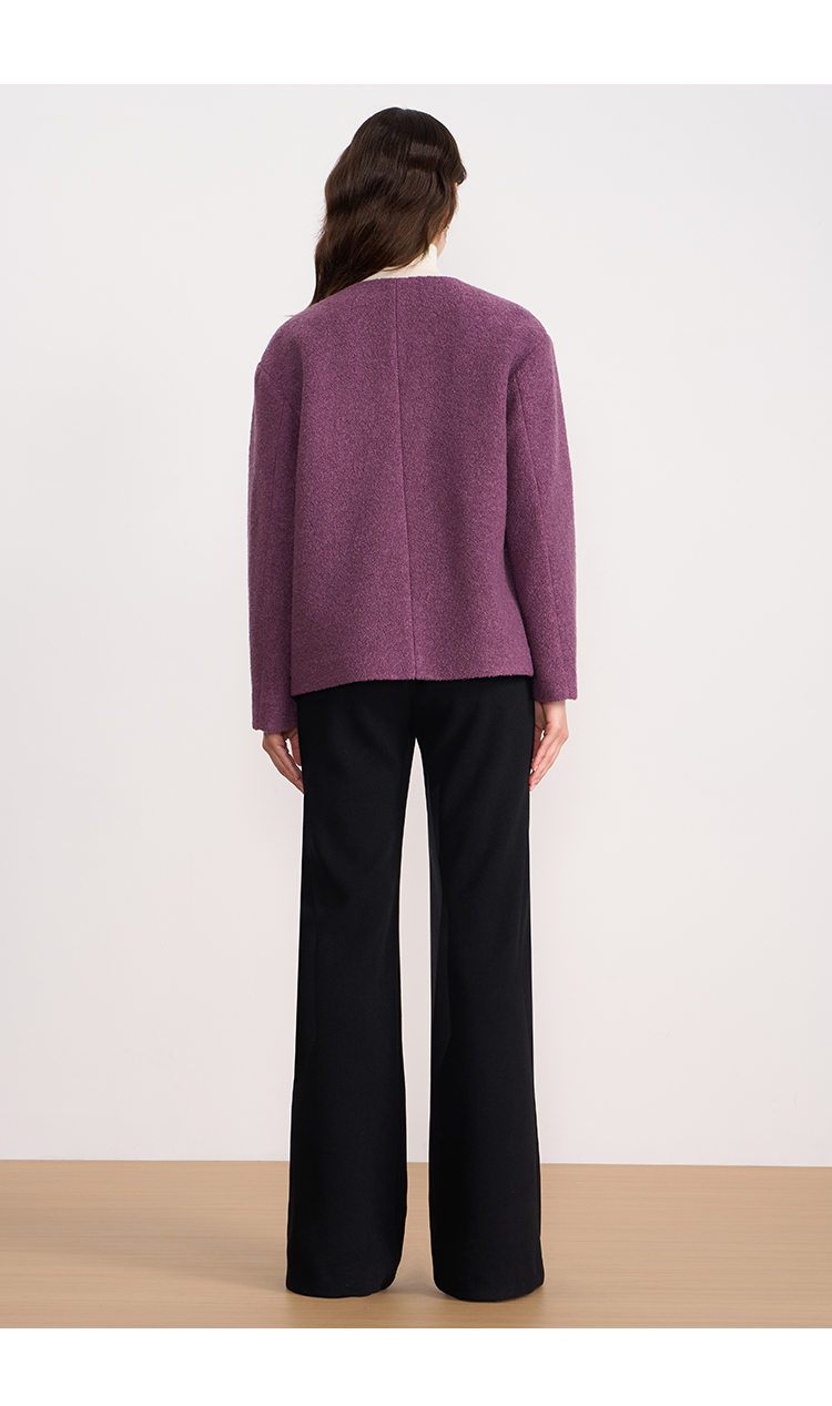 EITIE爱特爱时尚复古紫色单排扣短款宽松毛呢外套2025秋冬新款D2503915