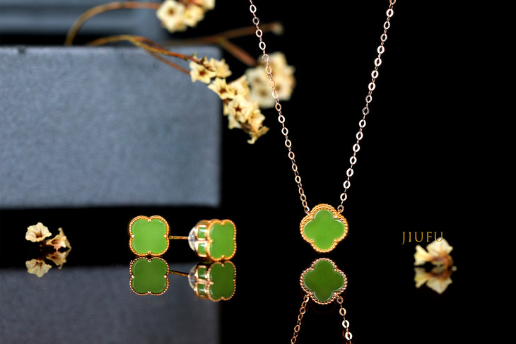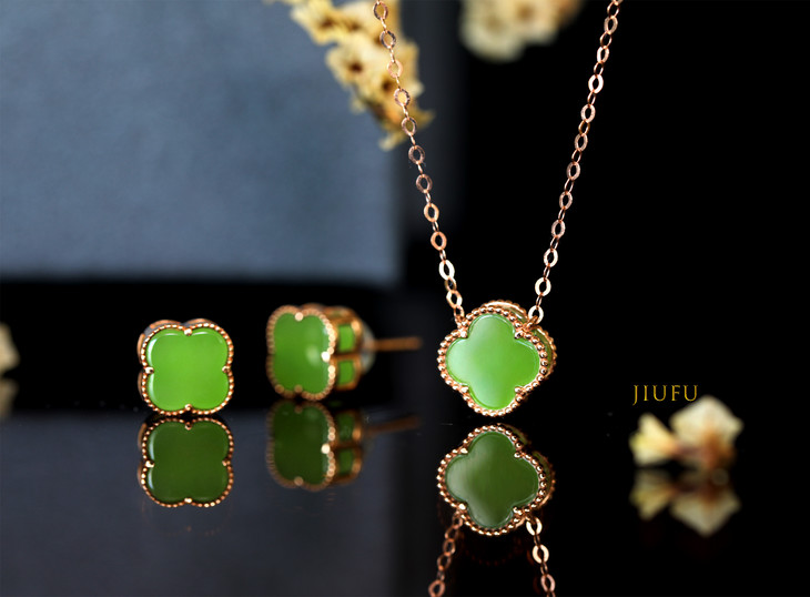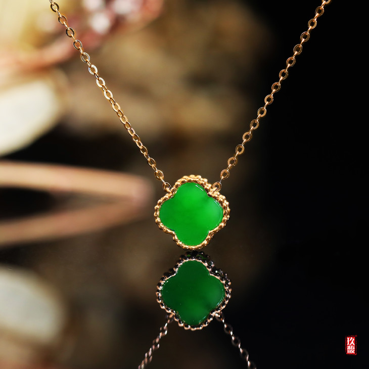 玉石规格:四叶草8*8mm/苹果绿 链长:40+2cm