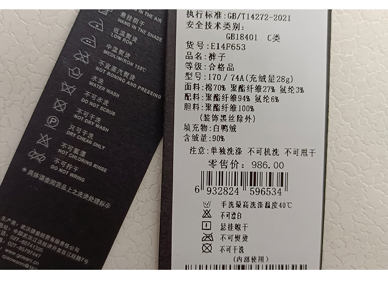乔万尼冬季新款羽绒牛仔裤弹力百搭舒适保暖百搭EI4F653