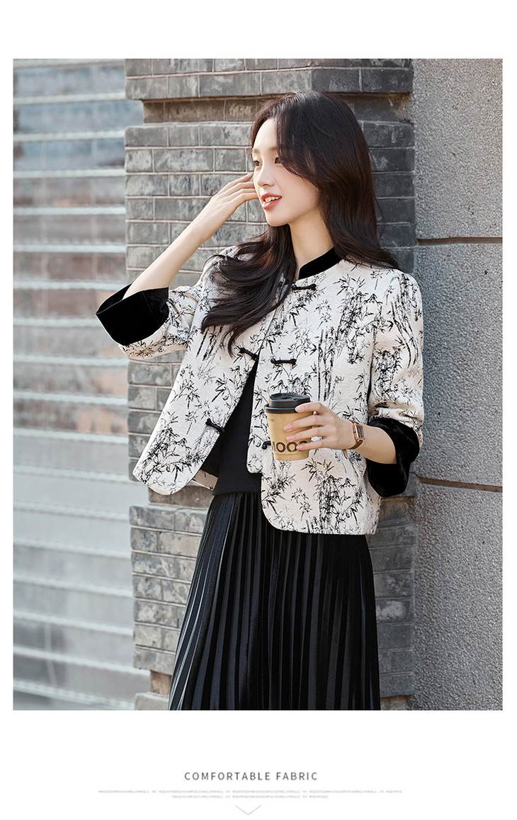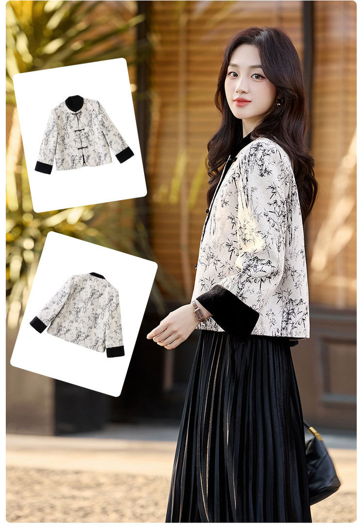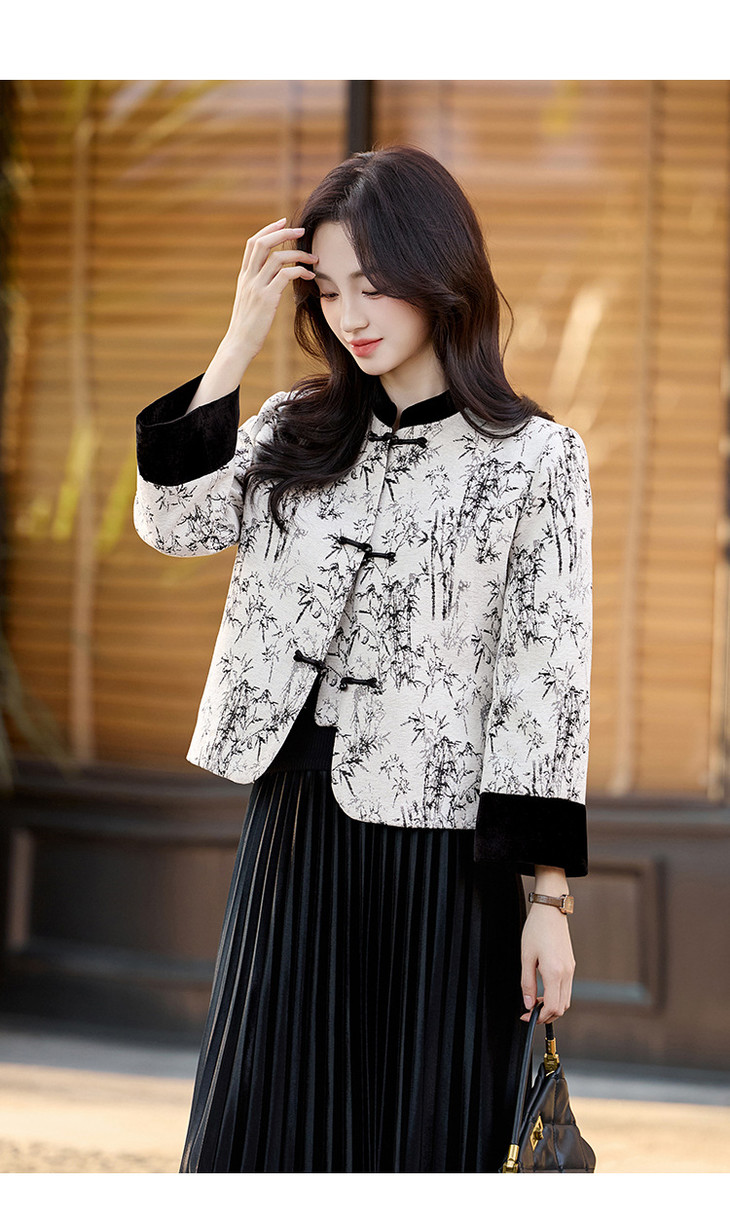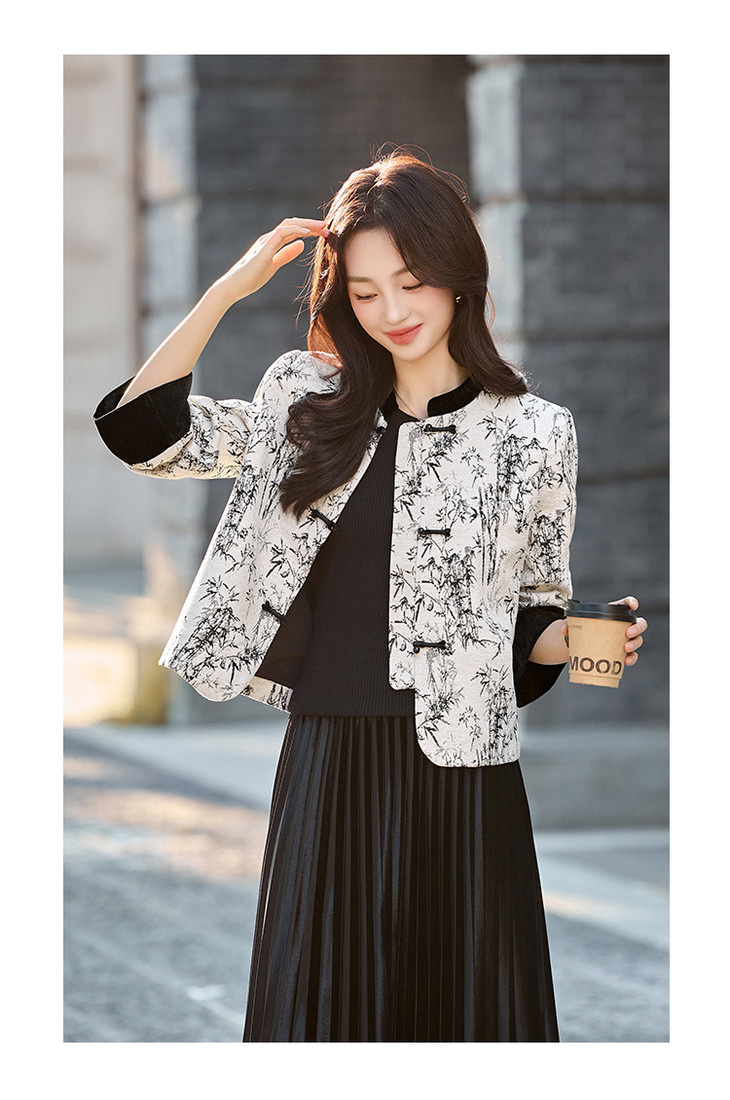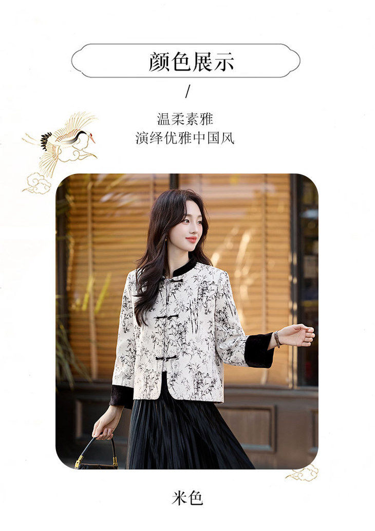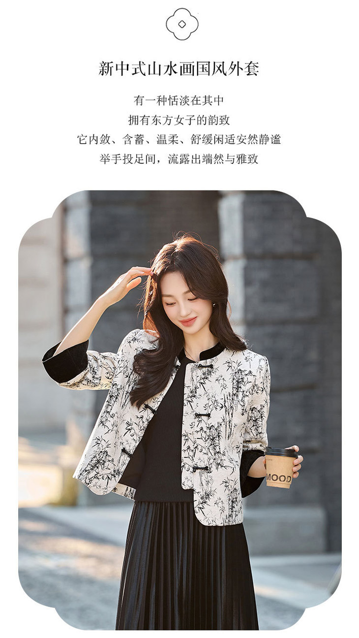 新中式立领盘扣短外套,新款水墨印花百搭气质上衣ZYF8886