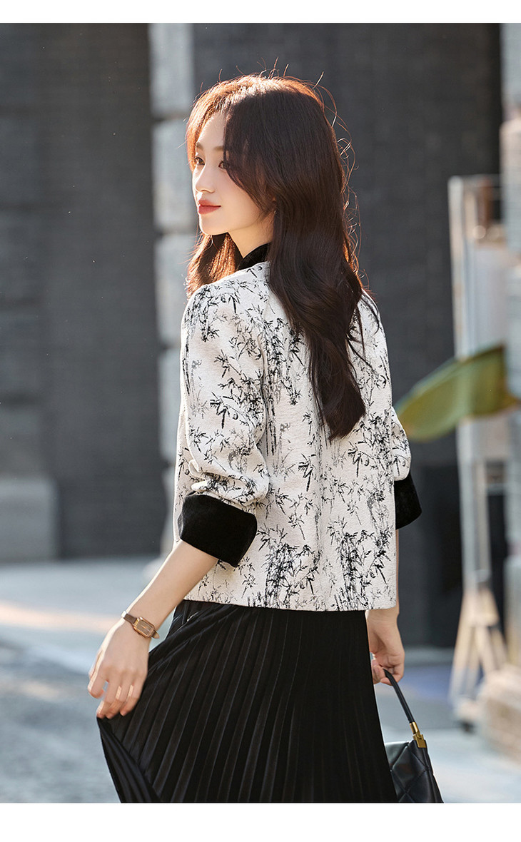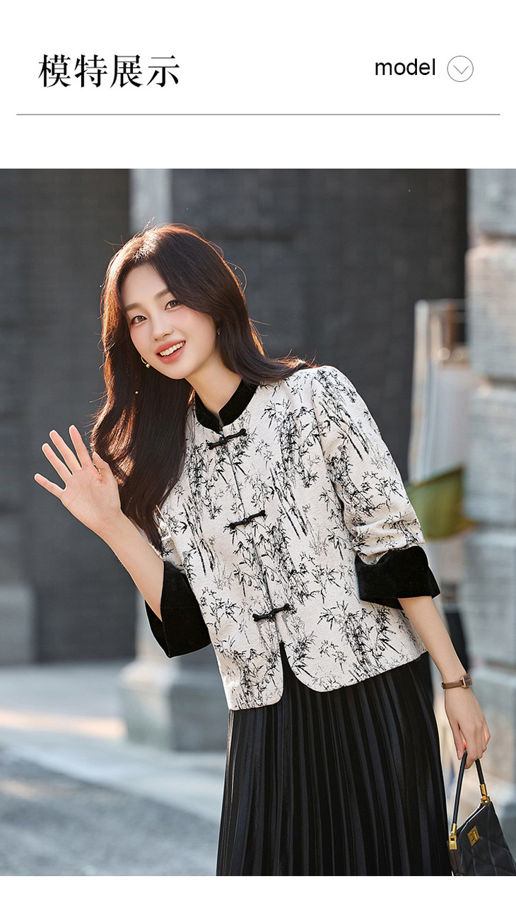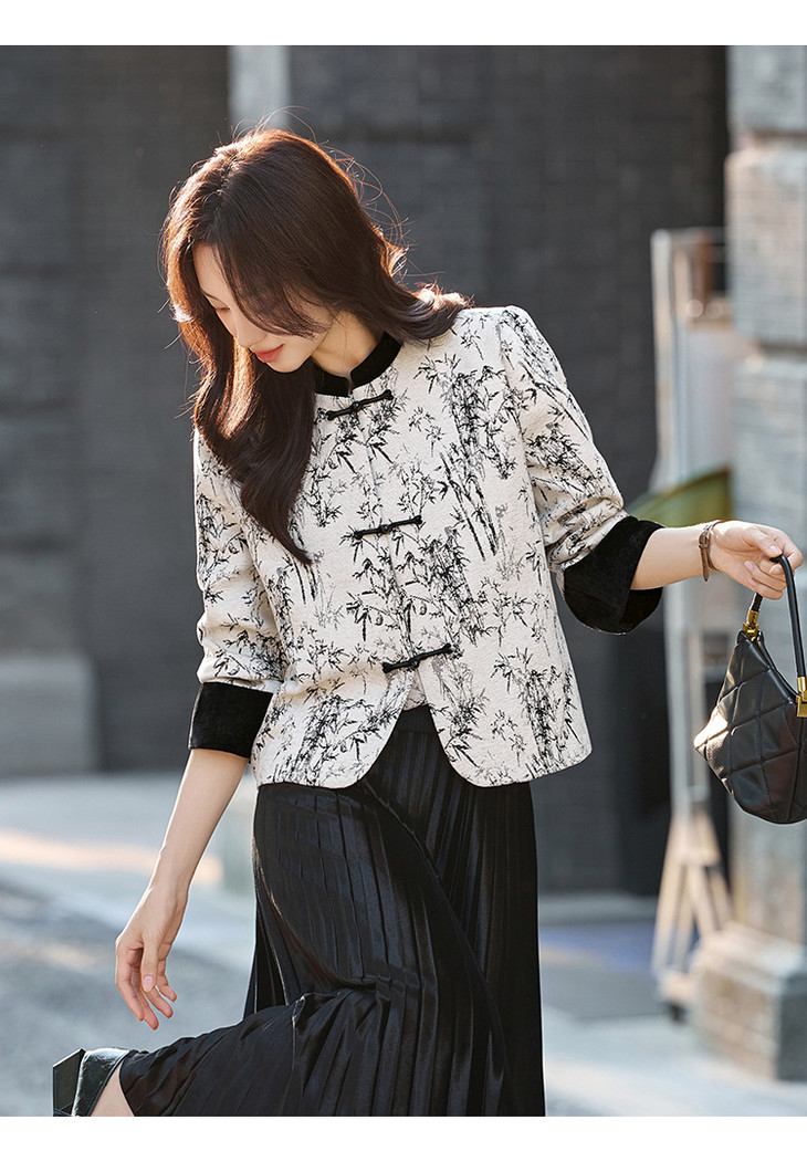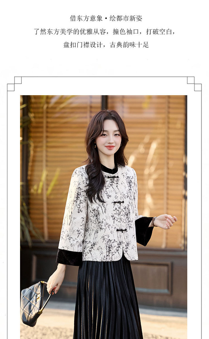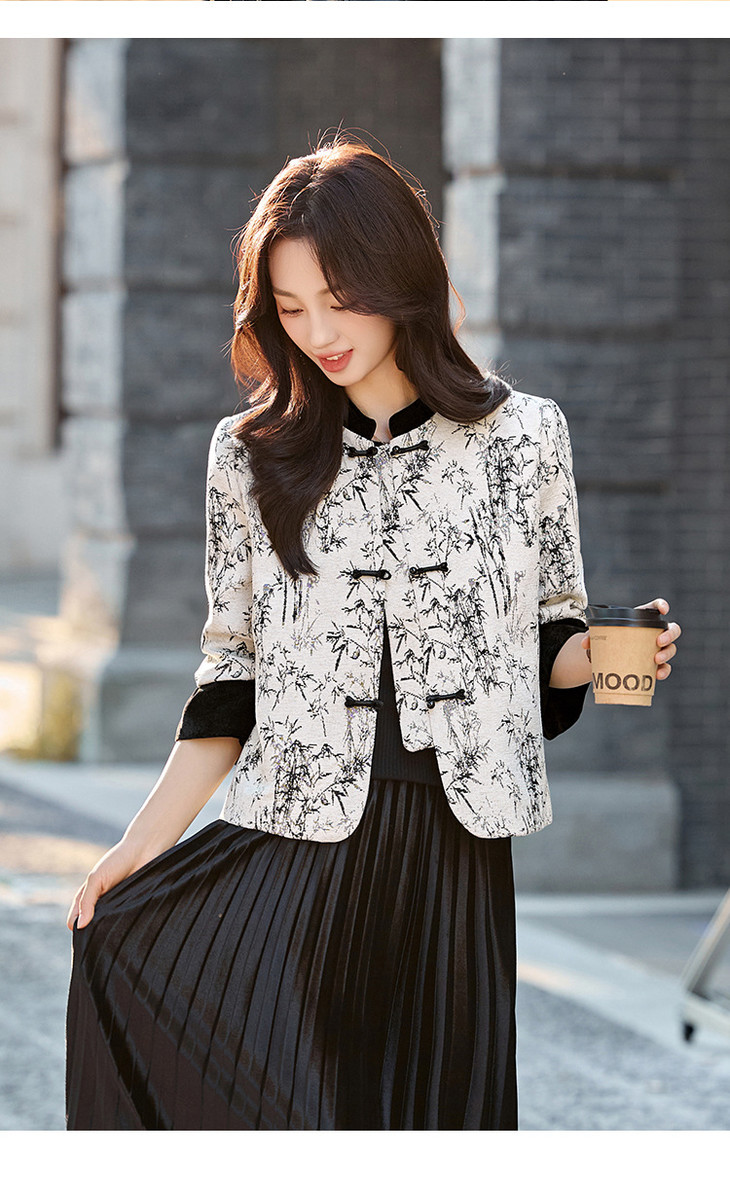 新中式立领盘扣短外套,新款水墨印花百搭气质上衣ZYF8886