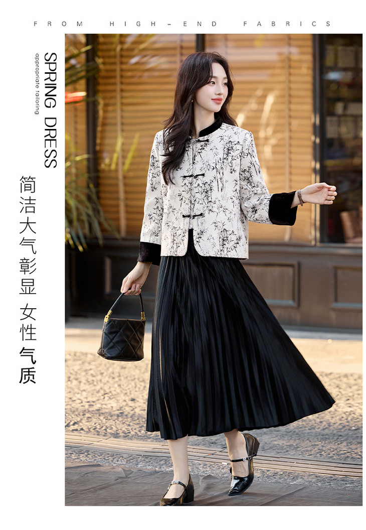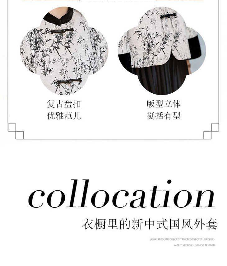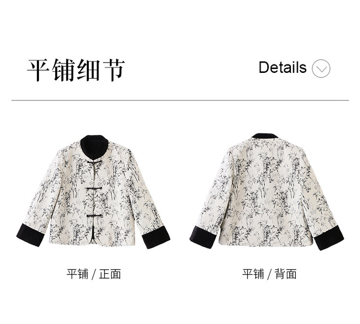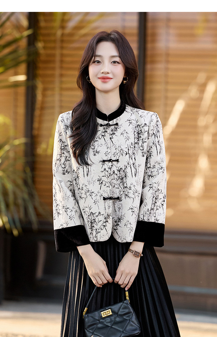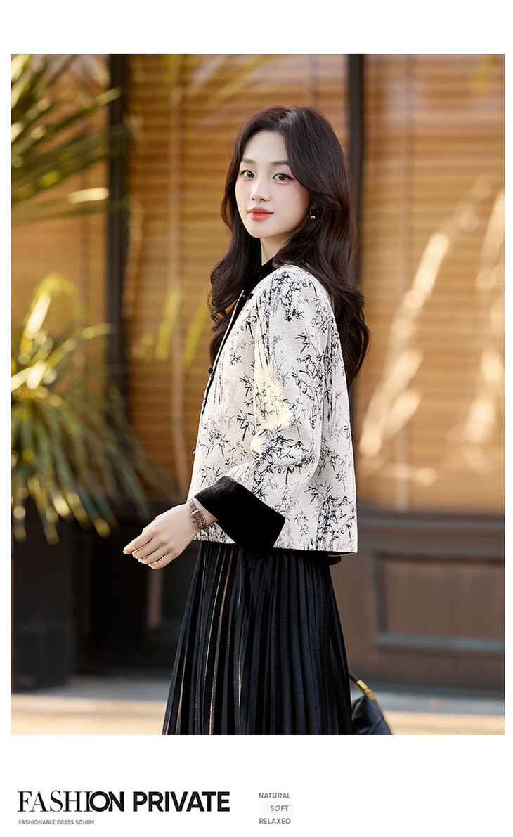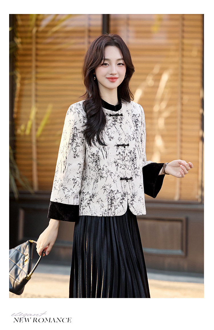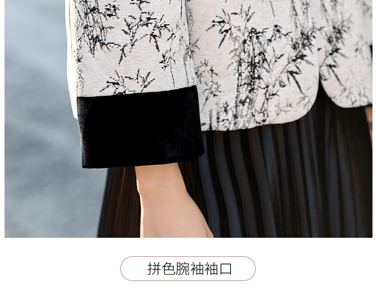 新中式立领盘扣短外套,新款水墨印花百搭气质上衣ZYF8886