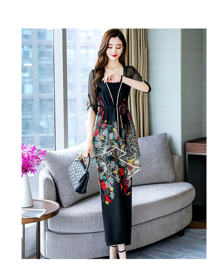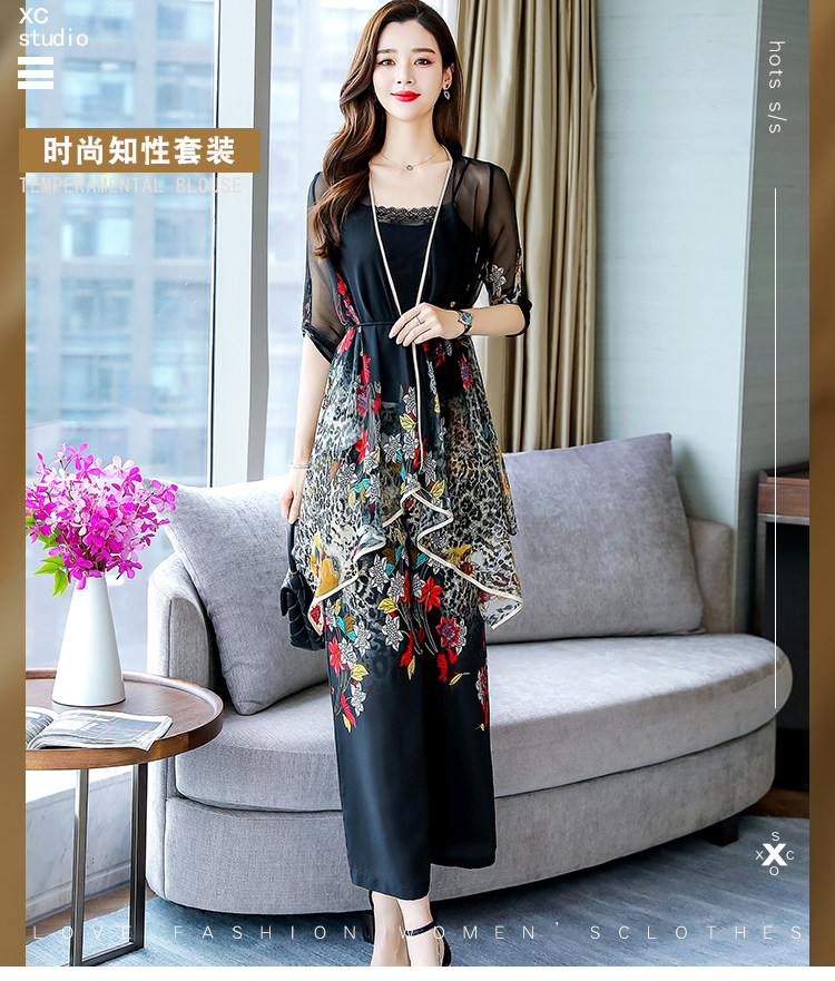 WZNH-MSY1925(三件套 配腰带 抹胸)优雅小个子雪纺花色御姐洋气范阔腿裤三件套