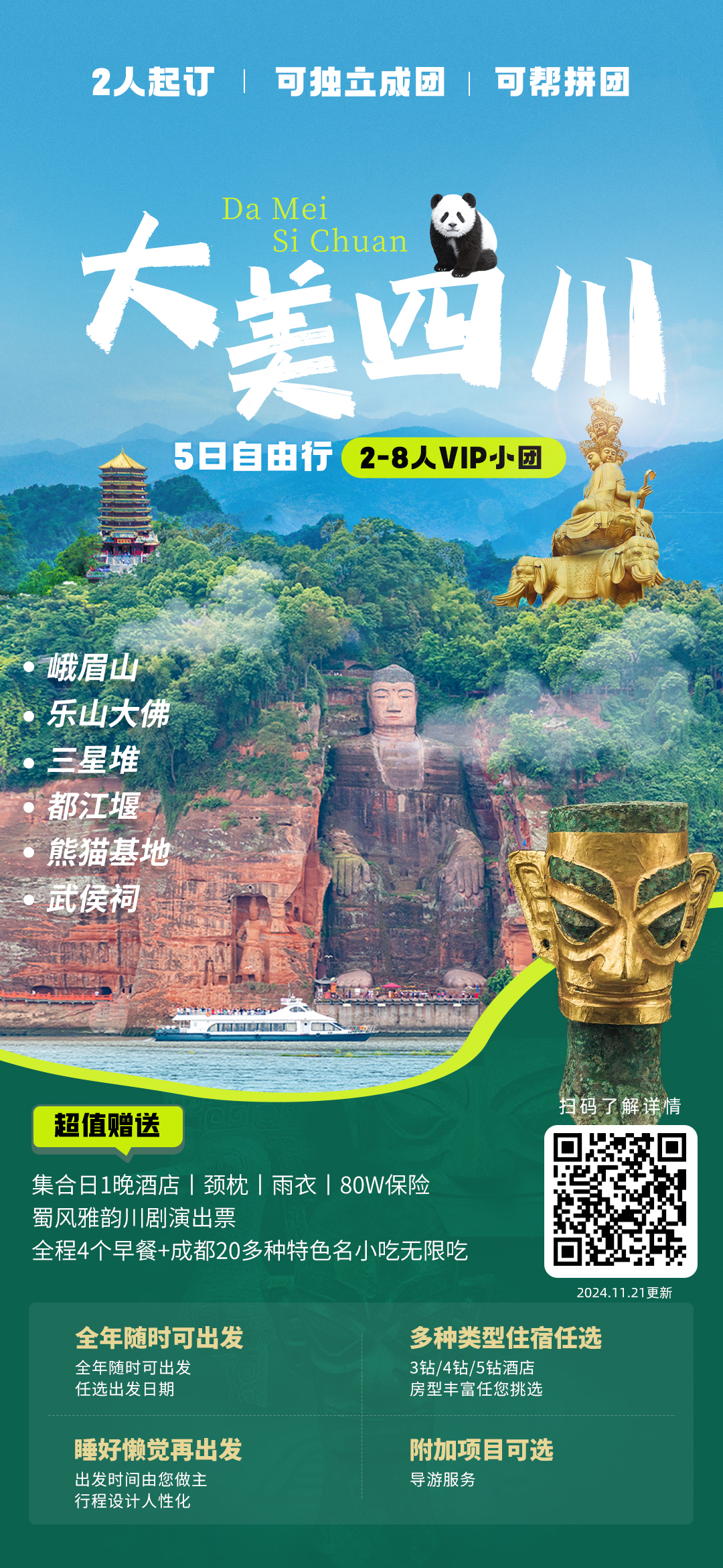 【大美四川5日】峨眉山+乐山大佛+三星堆+都江堰+熊猫基地+武侯祠 · 网红成都自由行